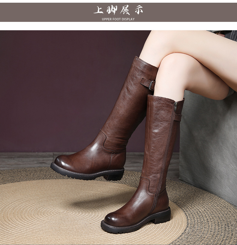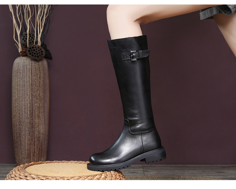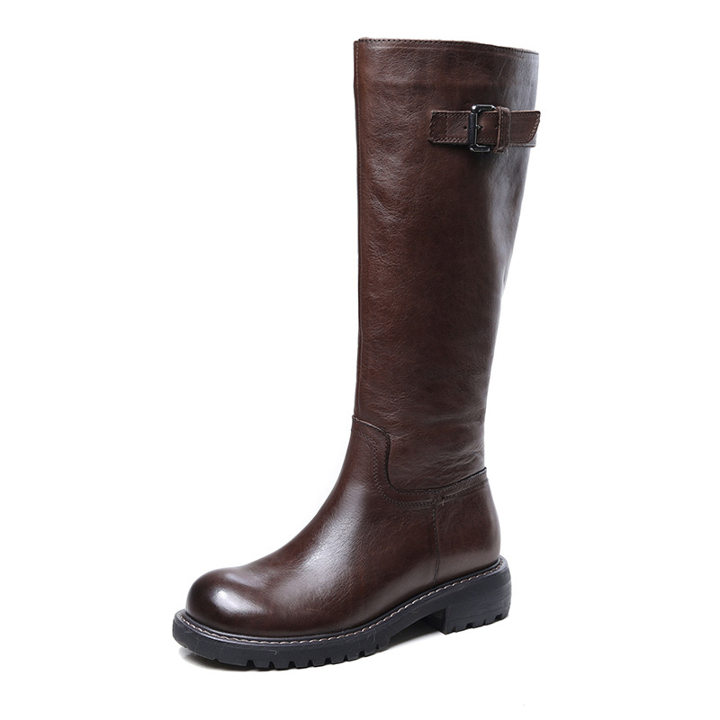 24 가을 겨울 신상품 천연 소가죽 캐주얼 벨트 버클 바이커 하이탑 부츠 마틴 부츠 니하이 부츠 라이더 부츠