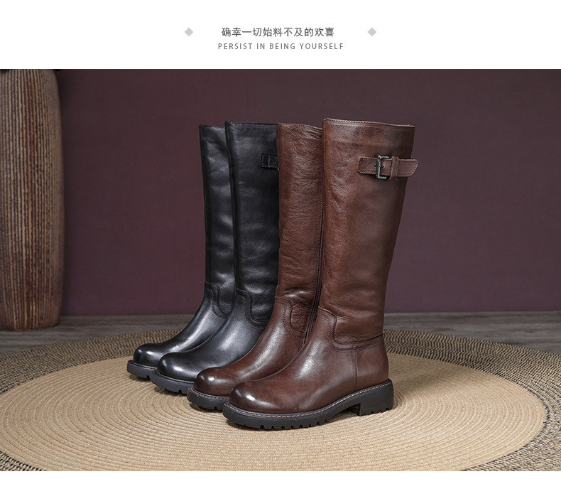 24 가을 겨울 신상품 천연 소가죽 캐주얼 벨트 버클 바이커 하이탑 부츠 마틴 부츠 니하이 부츠 라이더 부츠스토어 가기
