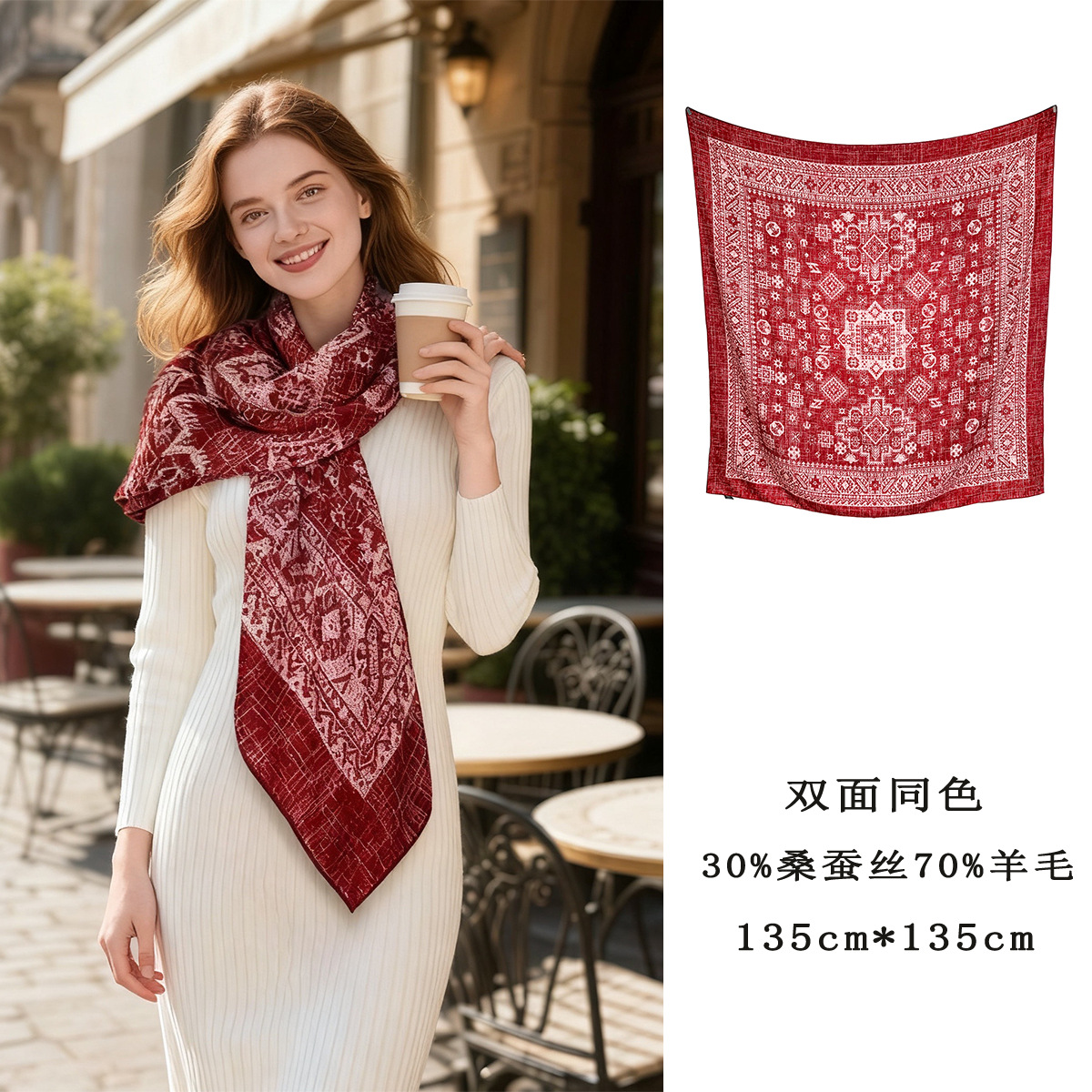 실크 울 숄 양면 동색 컬렉션 패션 여성 숄 실크 스카프 소스 공장 직접 판매스토어 가기
