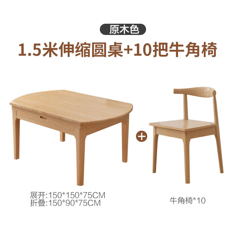 단단한 나무 식탁과 의자, 접이식 접이식 소형 가정용 현대식 심플 식탁, 가정용 사각형 및 원형 겸용 원형 테이블
