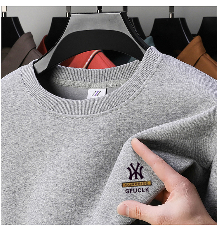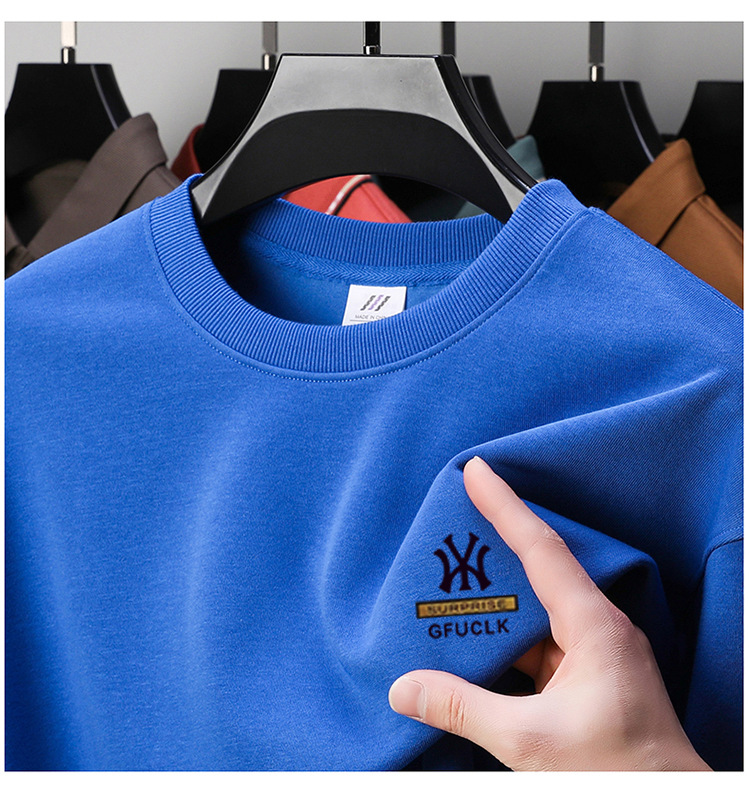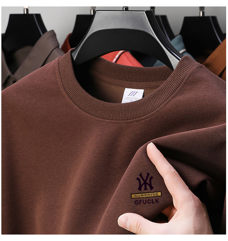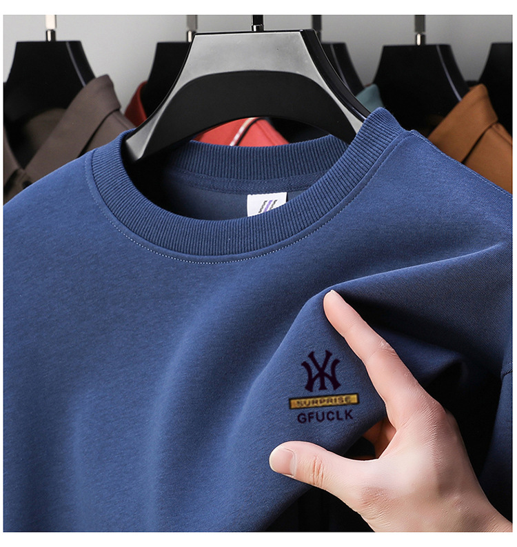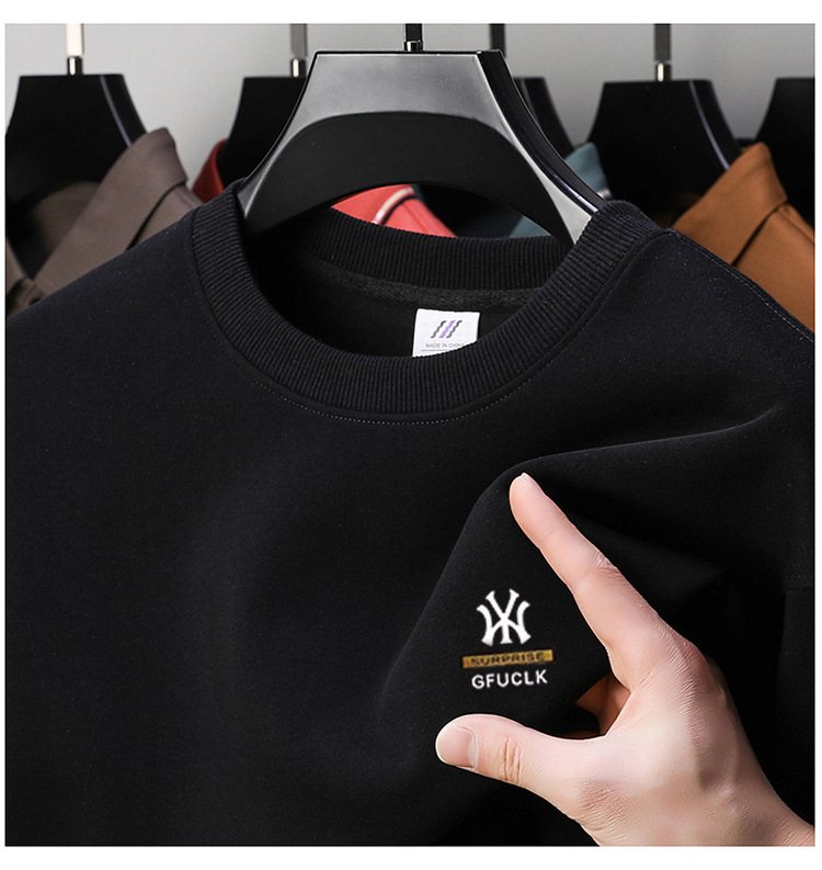 380g 헤비웨이트 순면 남성 스웨트셔츠 202 가을 신상 라운드넥 청년 한국 스타일 긴팔 티셔츠 남성 이너웨어스토어 가기