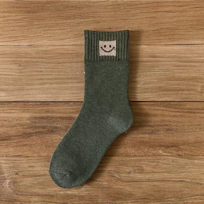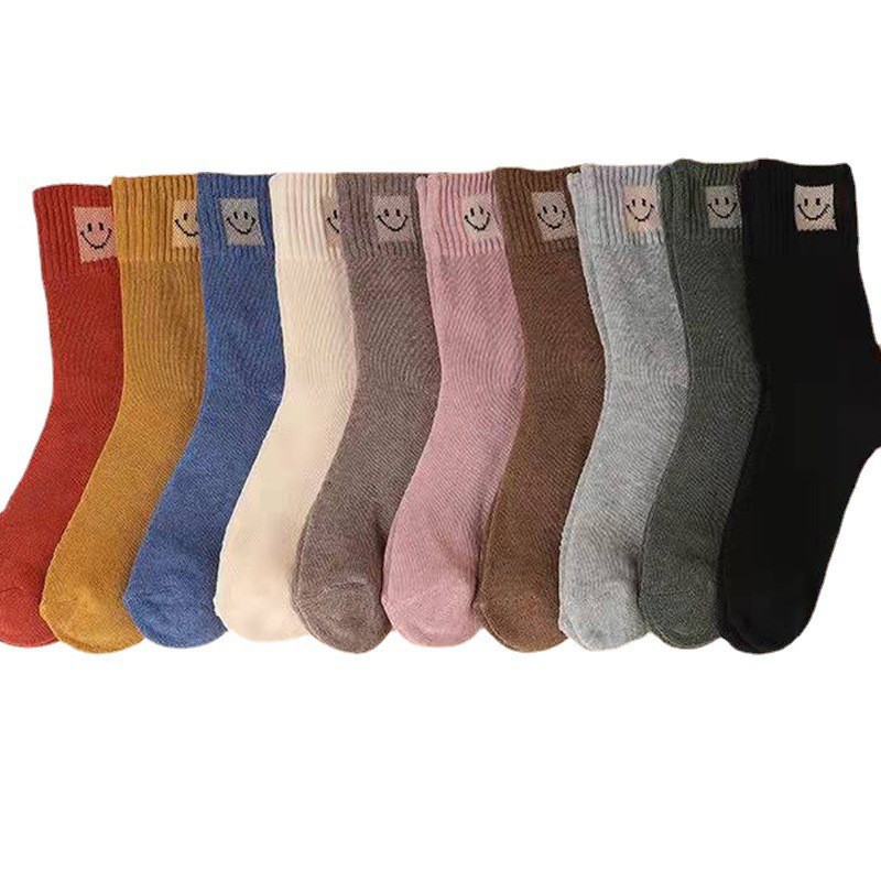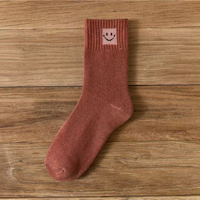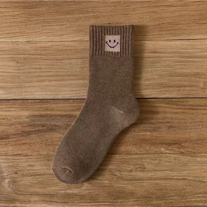양말 여성 가을과 겨울 따뜻한 기모 두꺼운 튜브 양말 귀여운 일본 테리 웃는 얼굴 스타킹 도매 한국어 버전