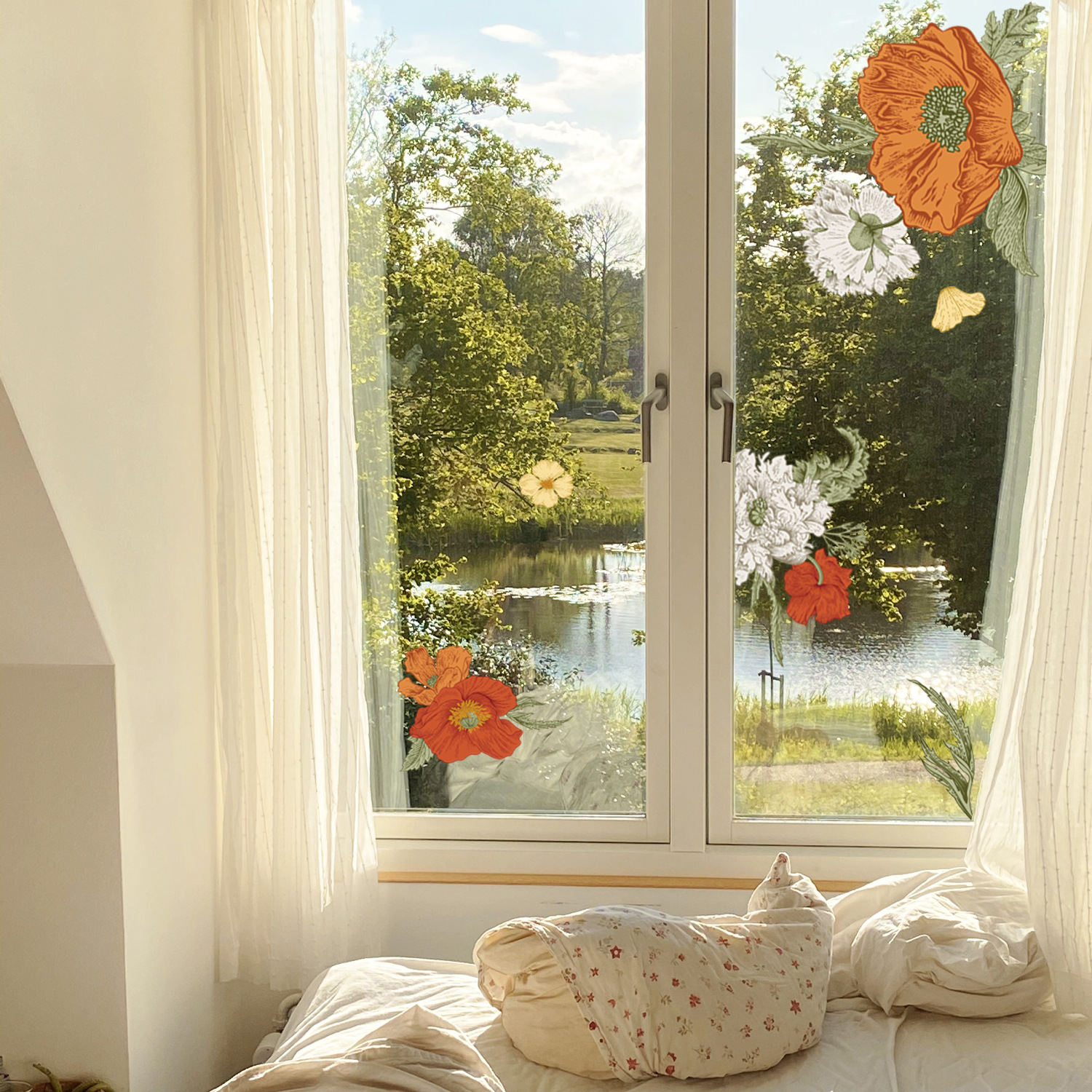 장례식 현실적인 양귀비 발코니 침실 창턱 절묘한 장식 정전기 유리 꽃 스티커 SE553스토어 가기