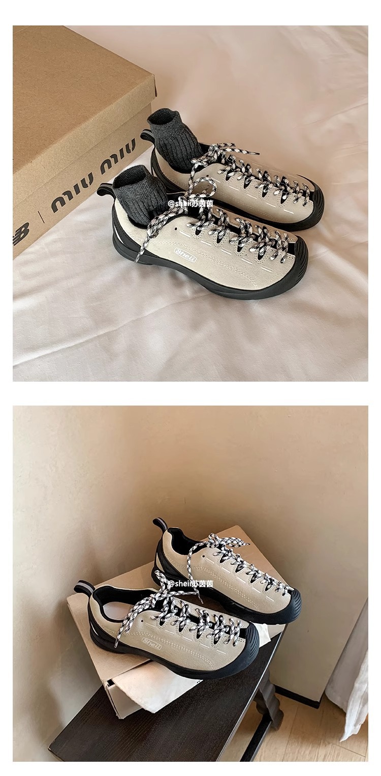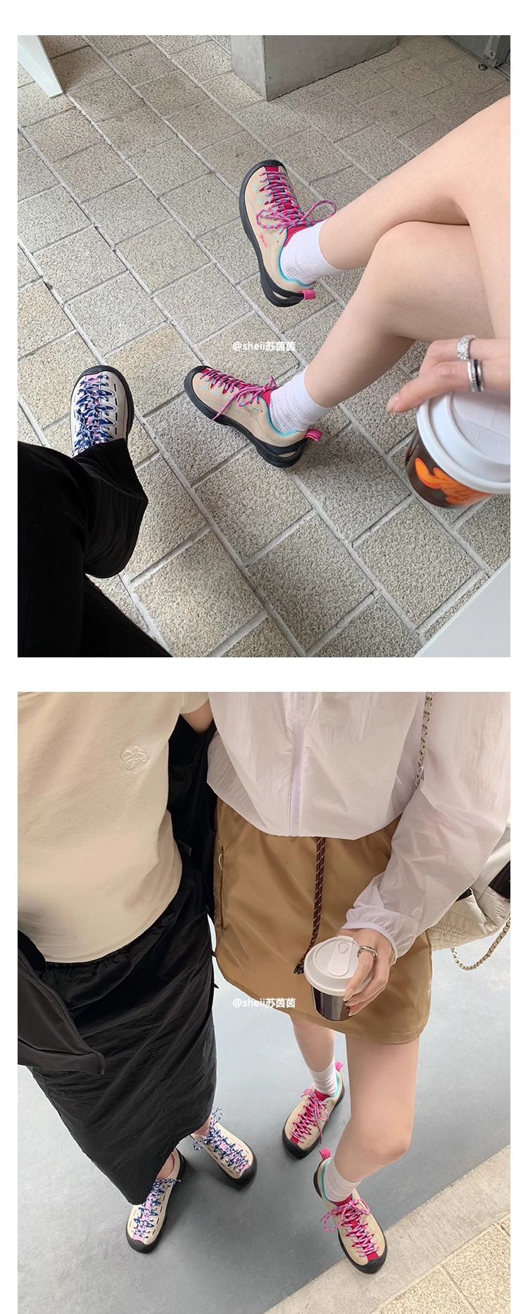 소가죽 내부 키높이 여성용 아웃도어 하이킹 신발 두꺼운 밑창 2024 봄 가을 신상 스포츠 배색 등산화스토어 가기