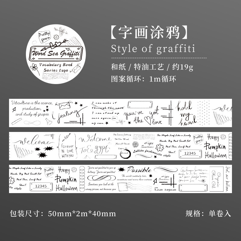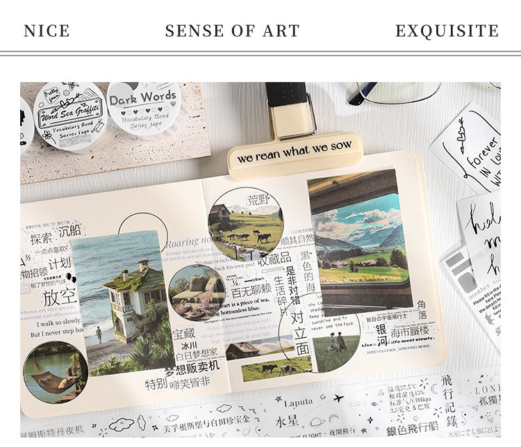 어휘 넥타이 및 종이 테이프 롤 DIY 손 계정 일기 조경 스티커 국경 중국어 및 영어 텍스트 손 계정 테이프스토어 가기