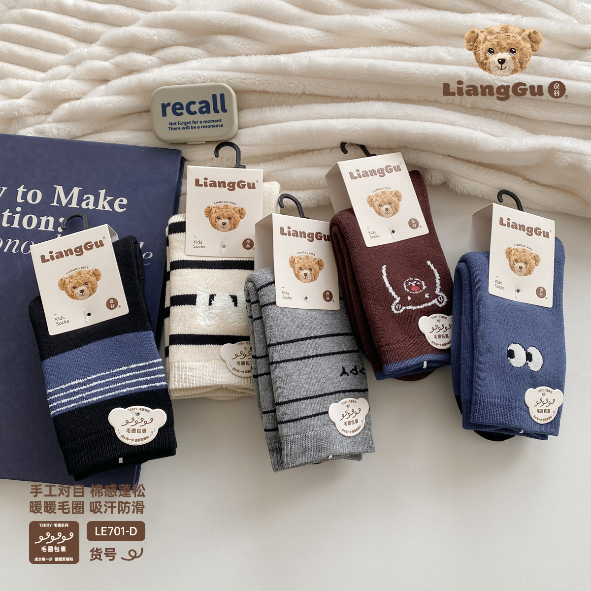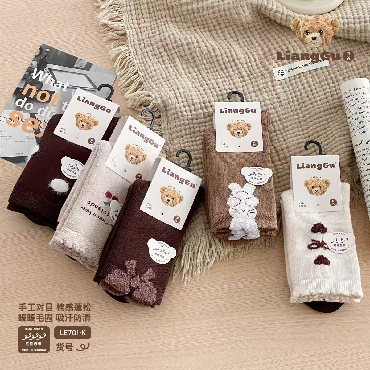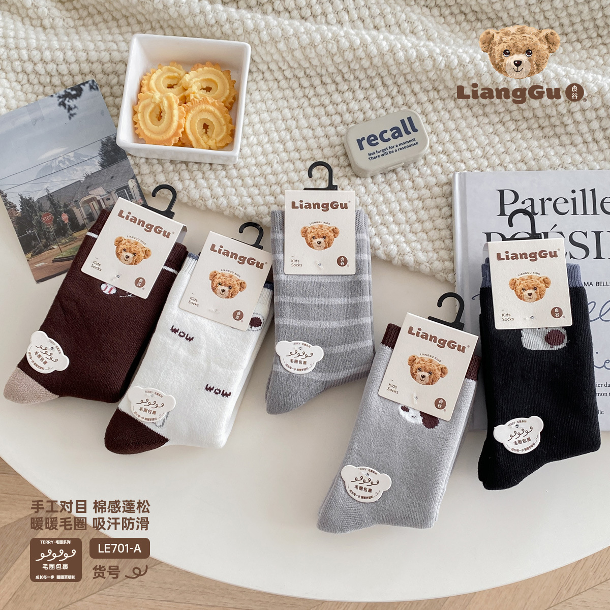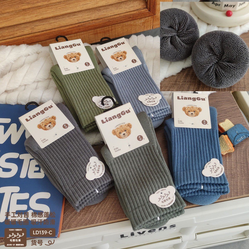 대량 구매》5켤레 가격》털이 많은 양말, 어린이 양말, 기모 양말, 두꺼운 학생용 양말, 심플한 디자인스토어 가기