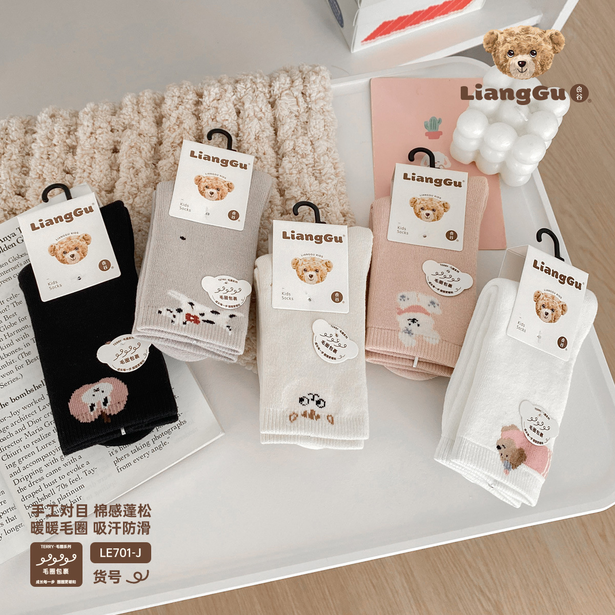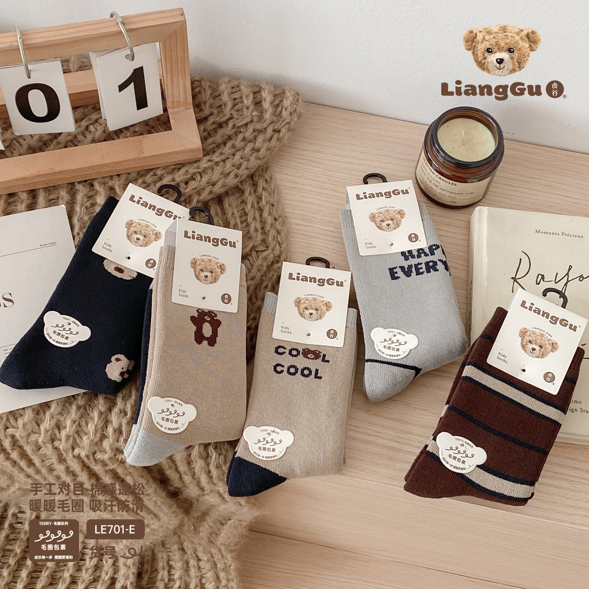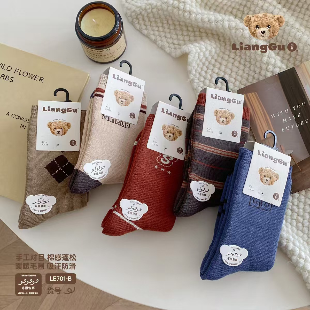 대량 구매》5켤레 가격》털이 많은 양말, 어린이 양말, 기모 양말, 두꺼운 학생용 양말, 심플한 디자인스토어 가기
