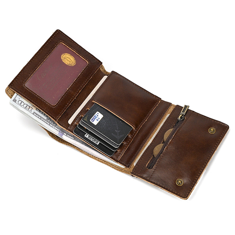 대외 무역 핫 RFID 오일 왁스 가죽 지갑 다크 브라운 정품 가죽 짧은 지갑 동전 가방 멀티 카드 3 배 지갑