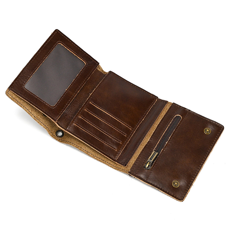대외 무역 핫 RFID 오일 왁스 가죽 지갑 다크 브라운 정품 가죽 짧은 지갑 동전 가방 멀티 카드 3 배 지갑스토어 가기