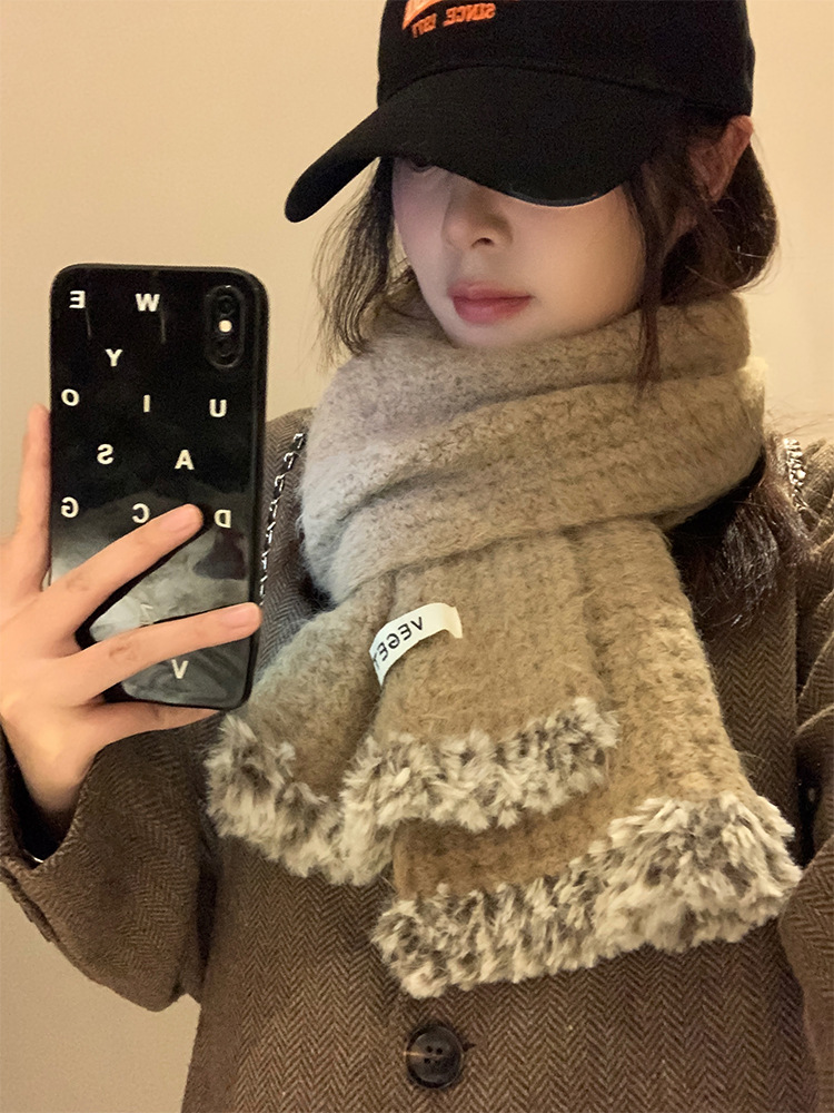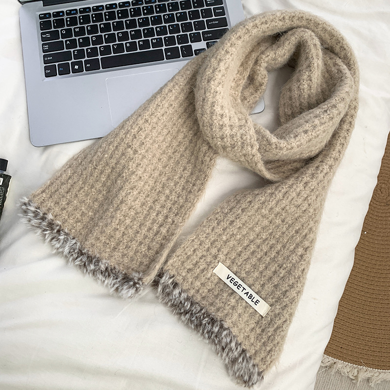 소프트 왁스 스카프 여자 겨울 2024 새로운 니트 따뜻한 올 매치 학생 커플의 울 스카프 유행 양모 스카프스토어 가기