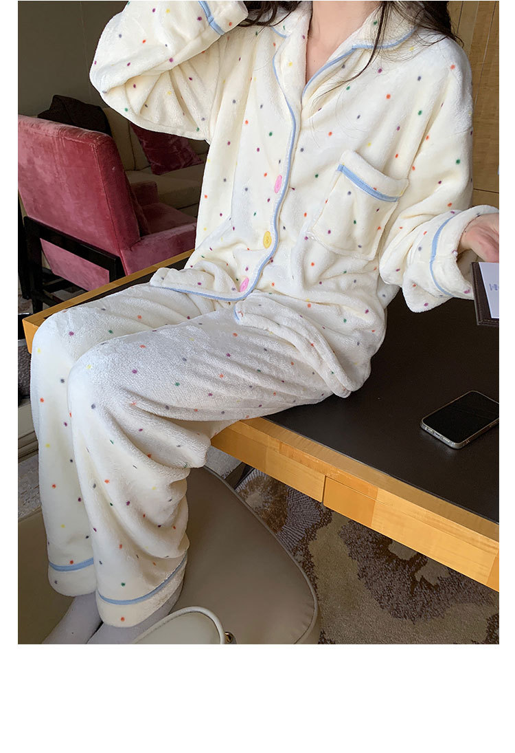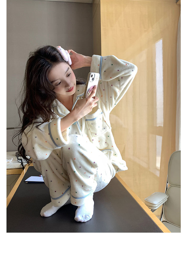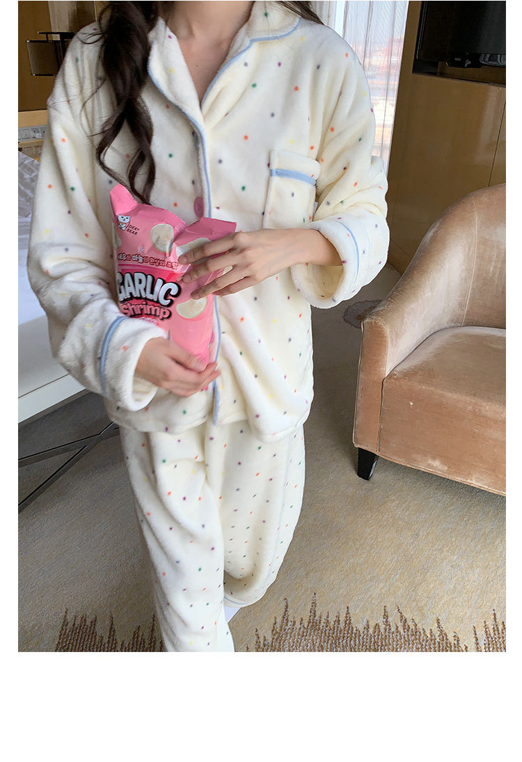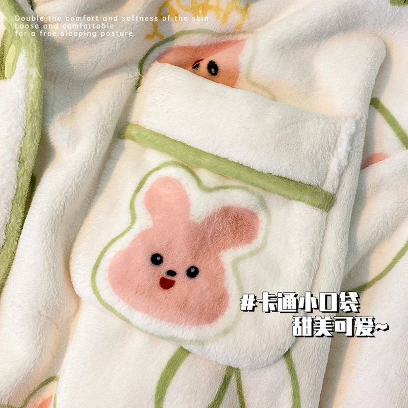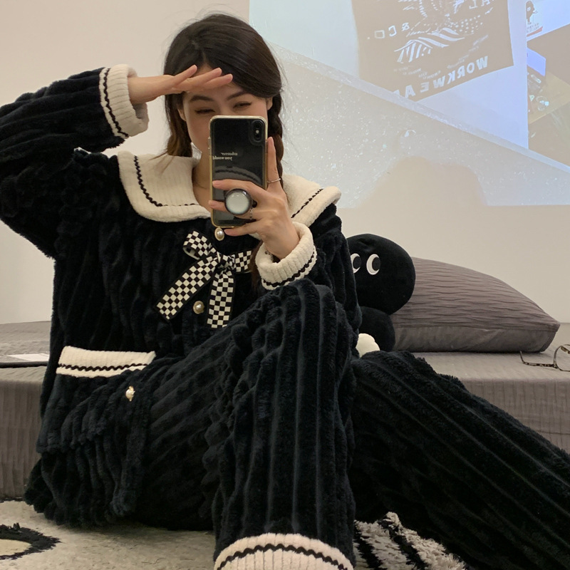 새로운 산호 양털 잠옷 여성의 가을과 겨울 귀여운 플란넬 따뜻한 두꺼운 달콤한 가정 옷 가을과 겨울 세트스토어 가기