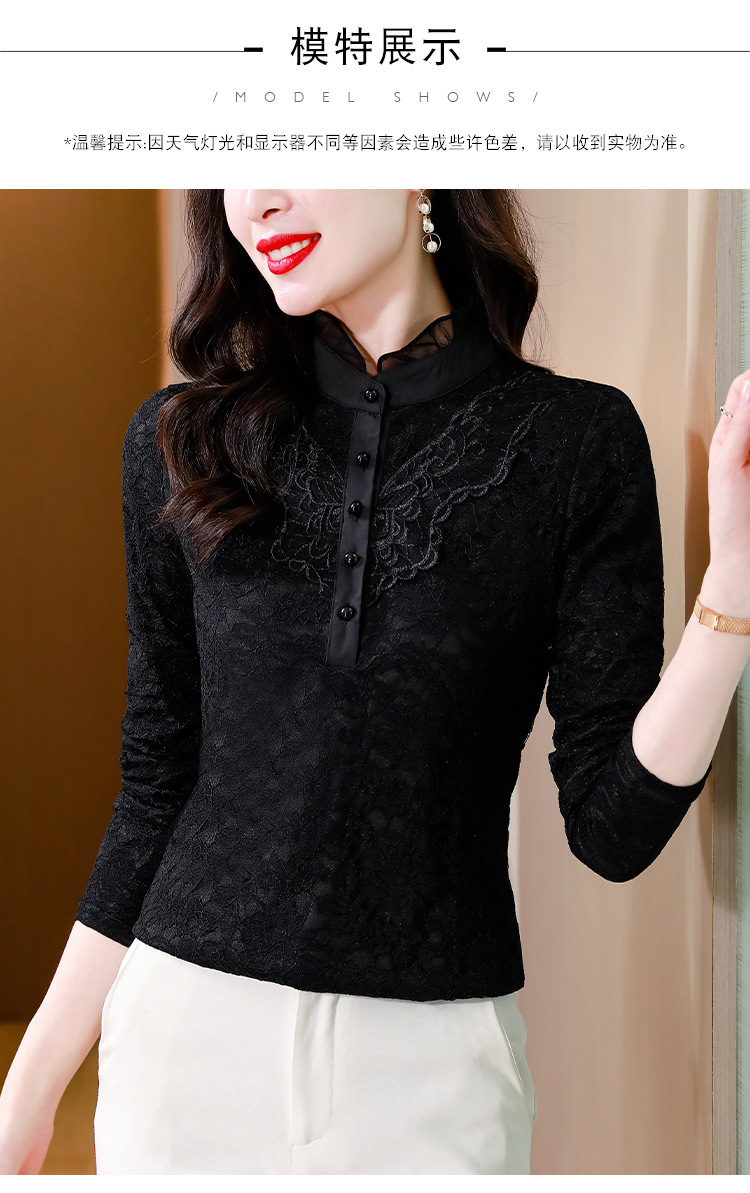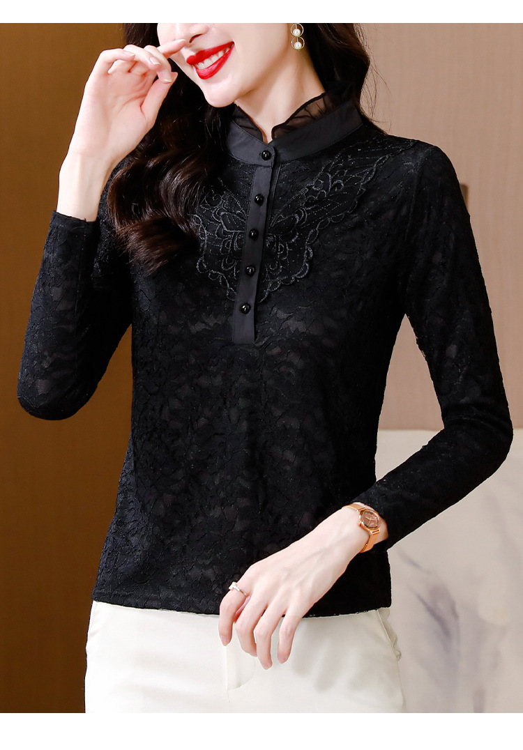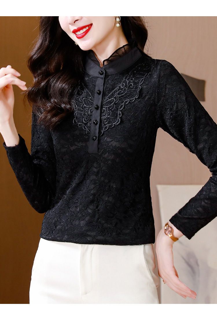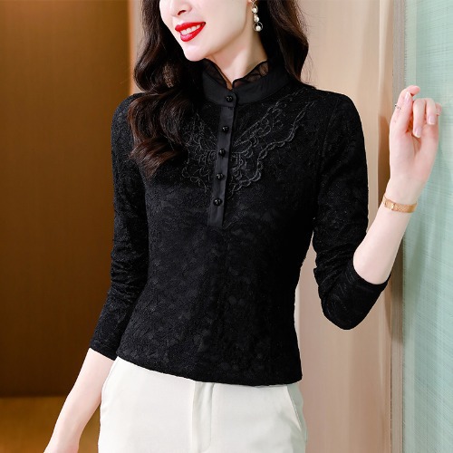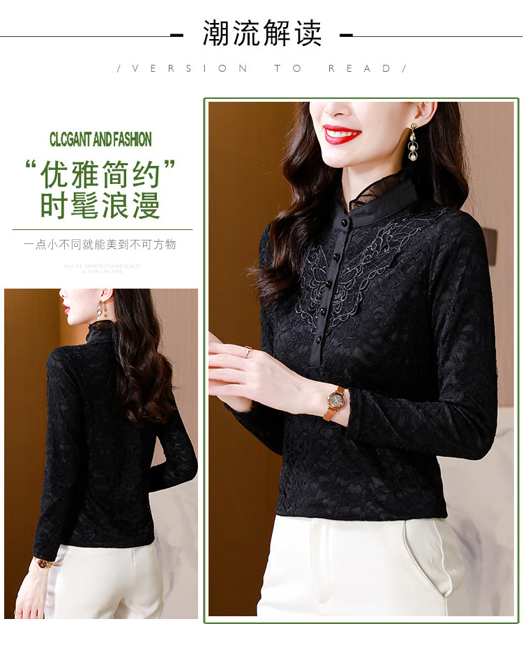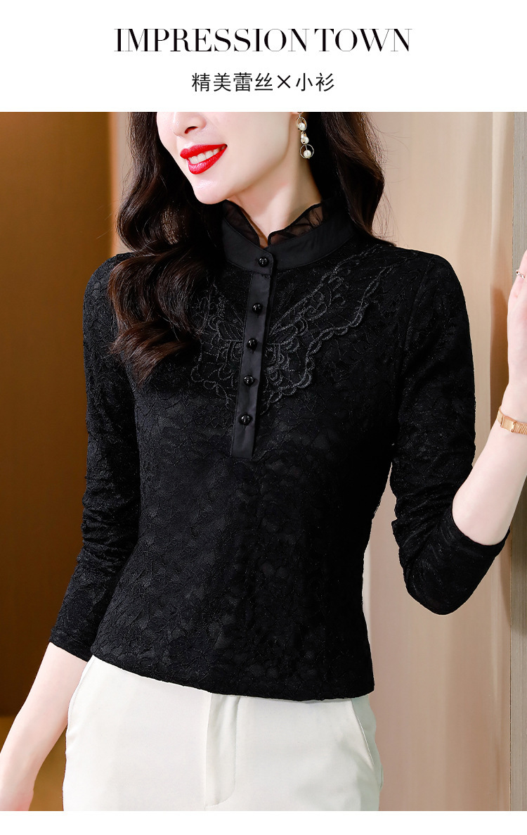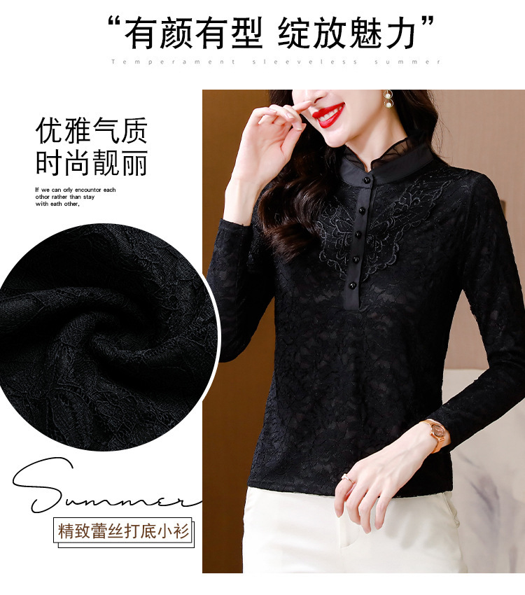 가을 서양식 패션 레이스베이스 셔츠 여성의 가을 2023 새로운 반 높이 칼라 긴 소매 내부 최고 트렌디 셔츠스토어 가기