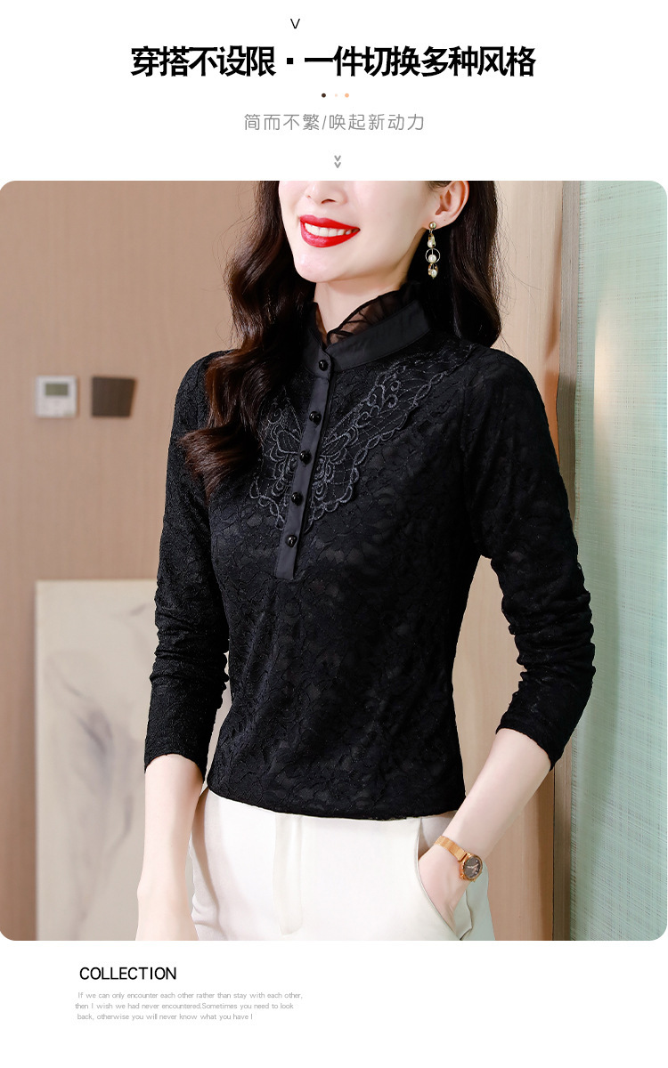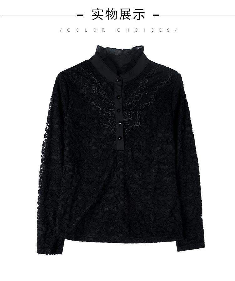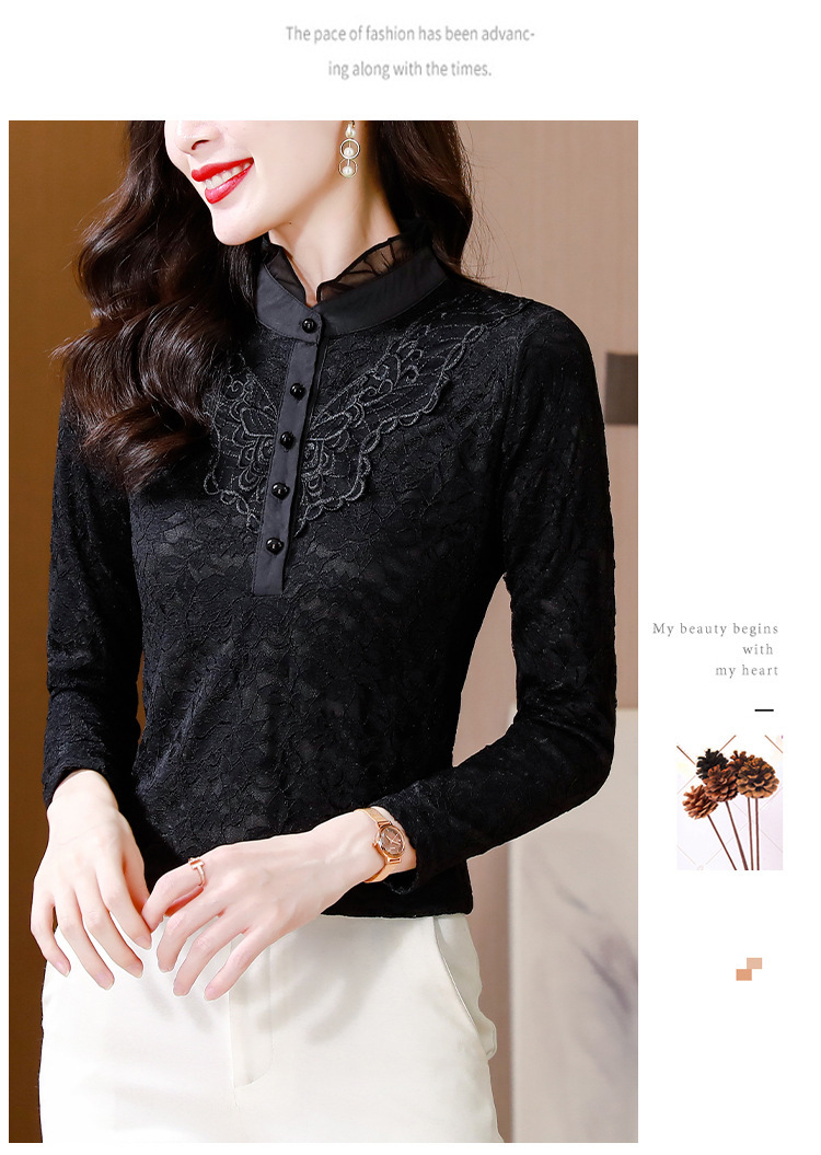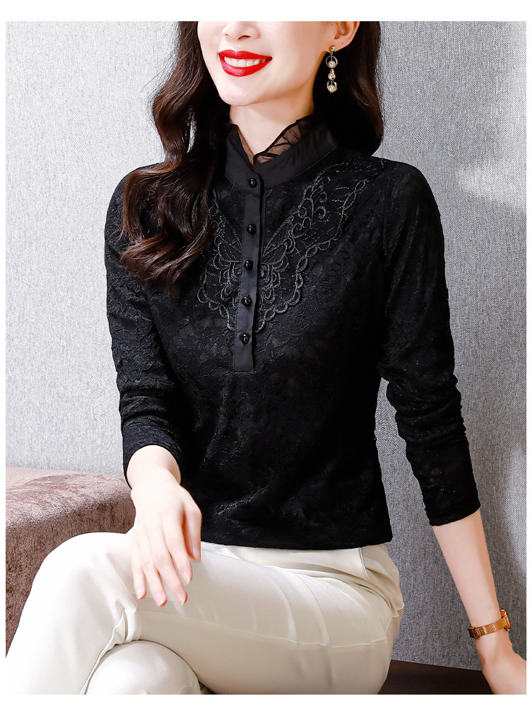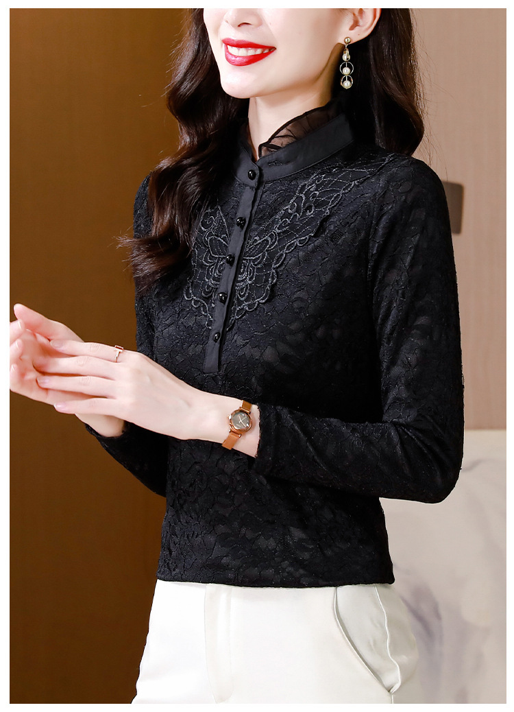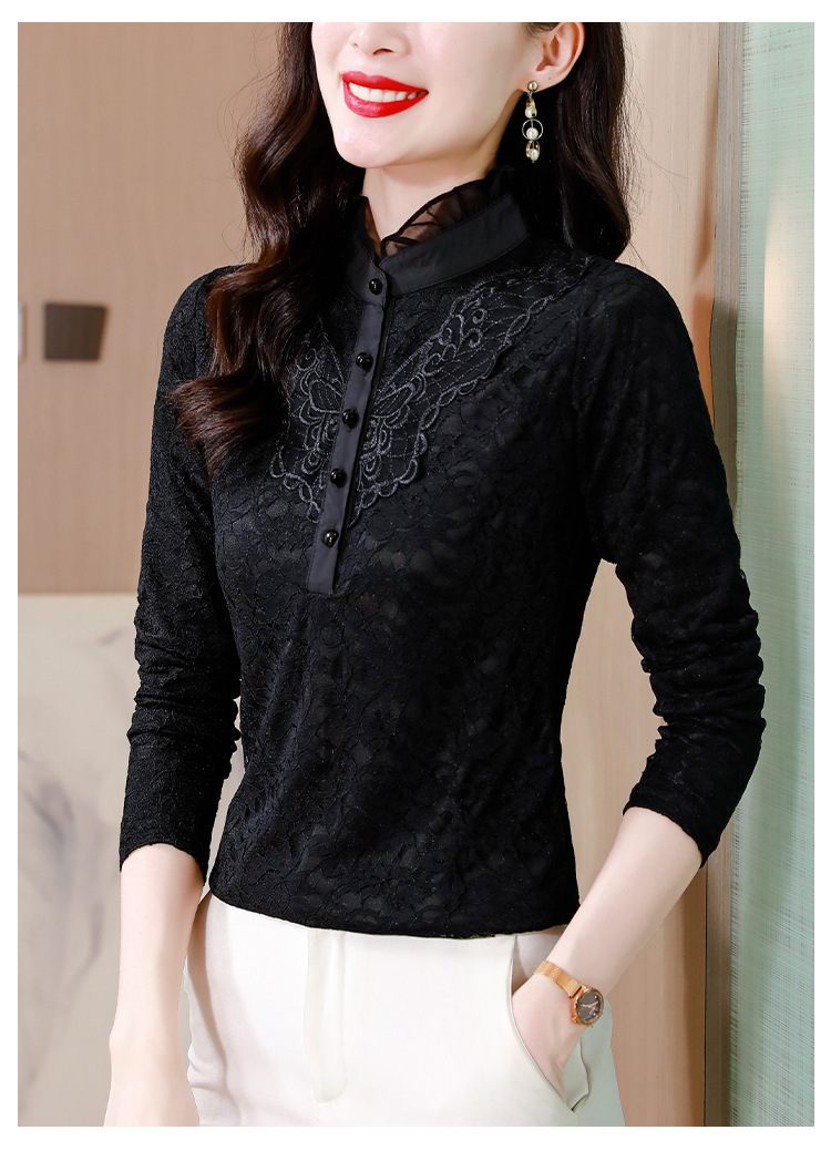 가을 서양식 패션 레이스베이스 셔츠 여성의 가을 2023 새로운 반 높이 칼라 긴 소매 내부 최고 트렌디 셔츠스토어 가기