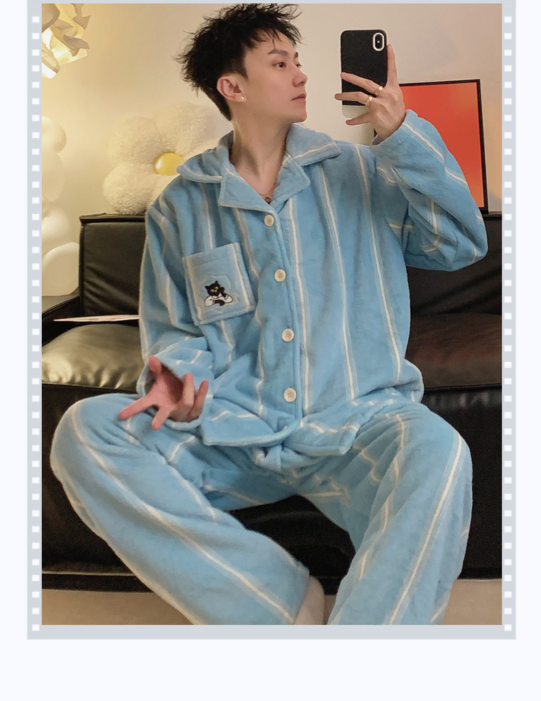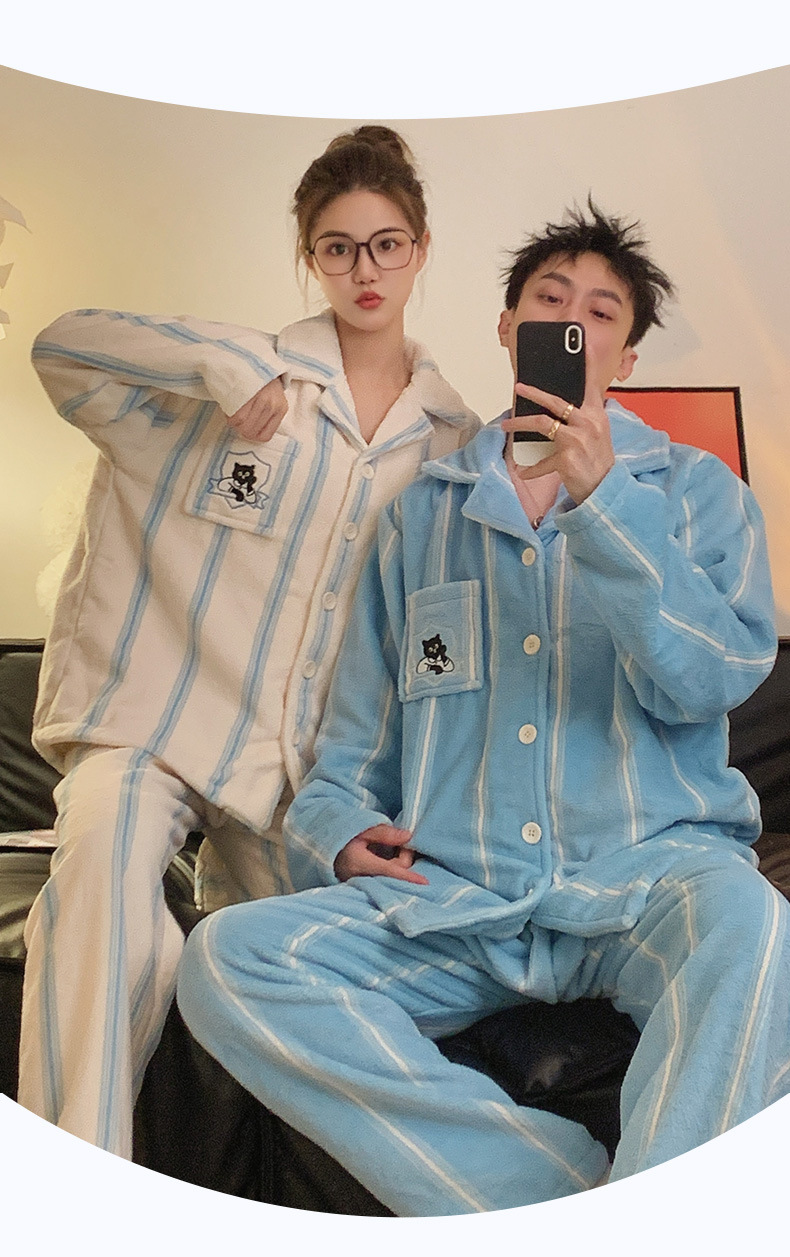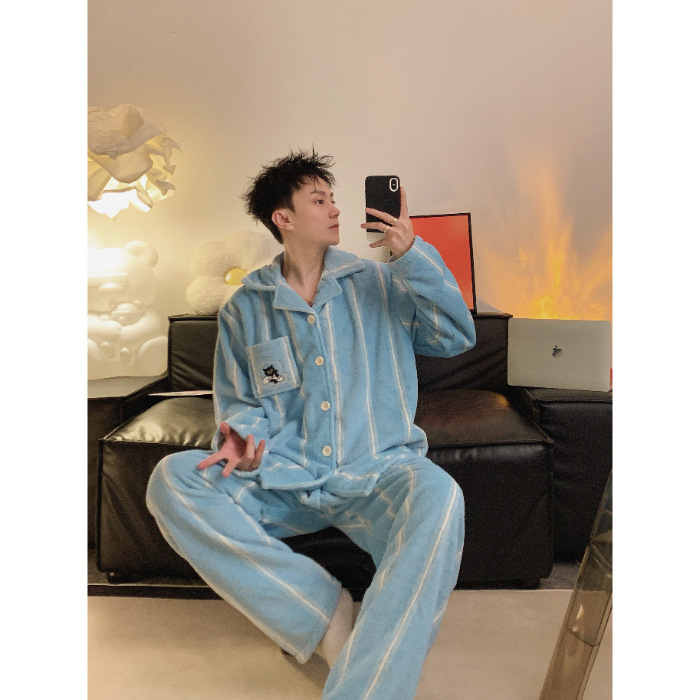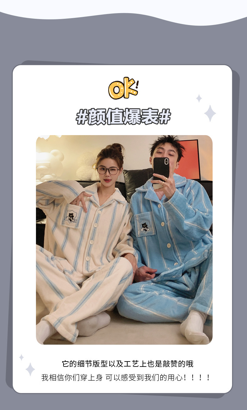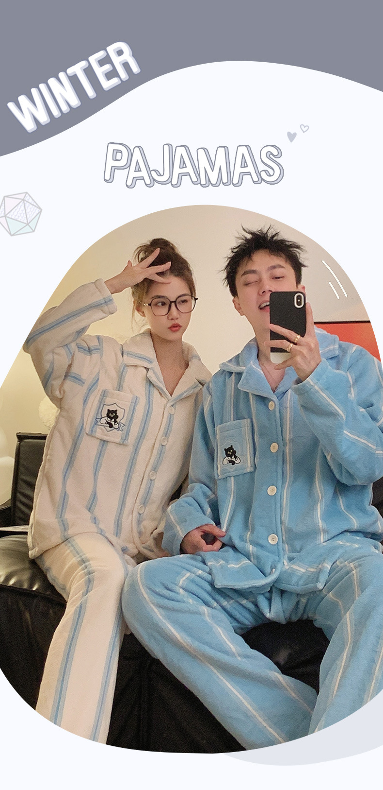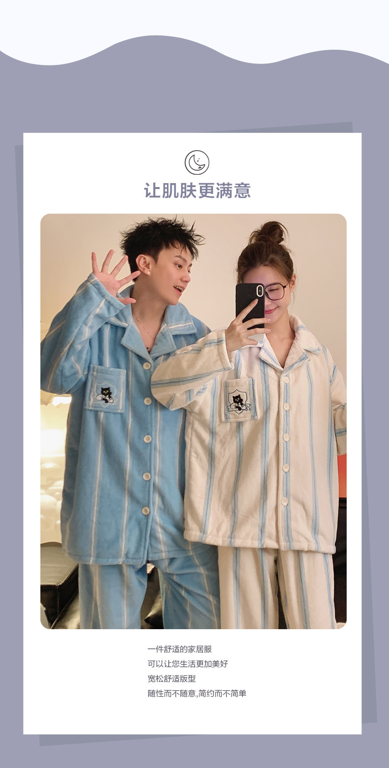 커플 잠옷 겨울 새로운 플란넬 카디건 긴 소매 한국 스타일 Ins 스타일 따뜻한 겨울 홈 의류 남성과 여성스토어 가기