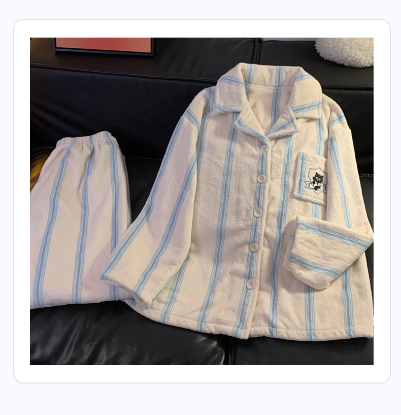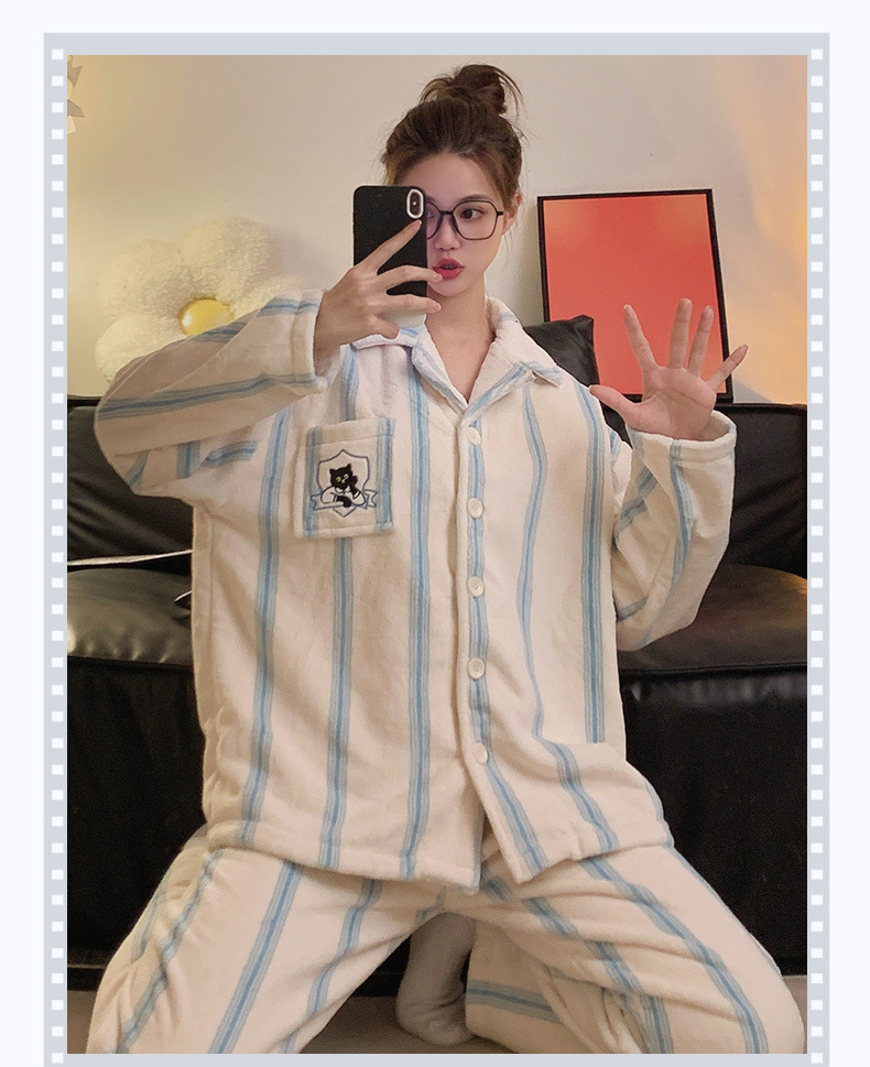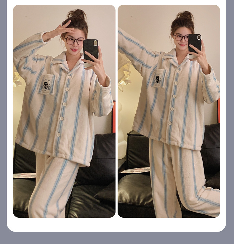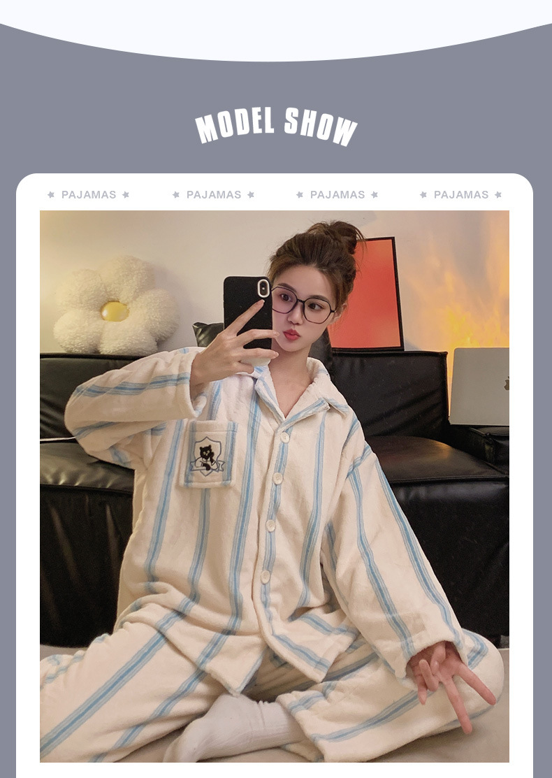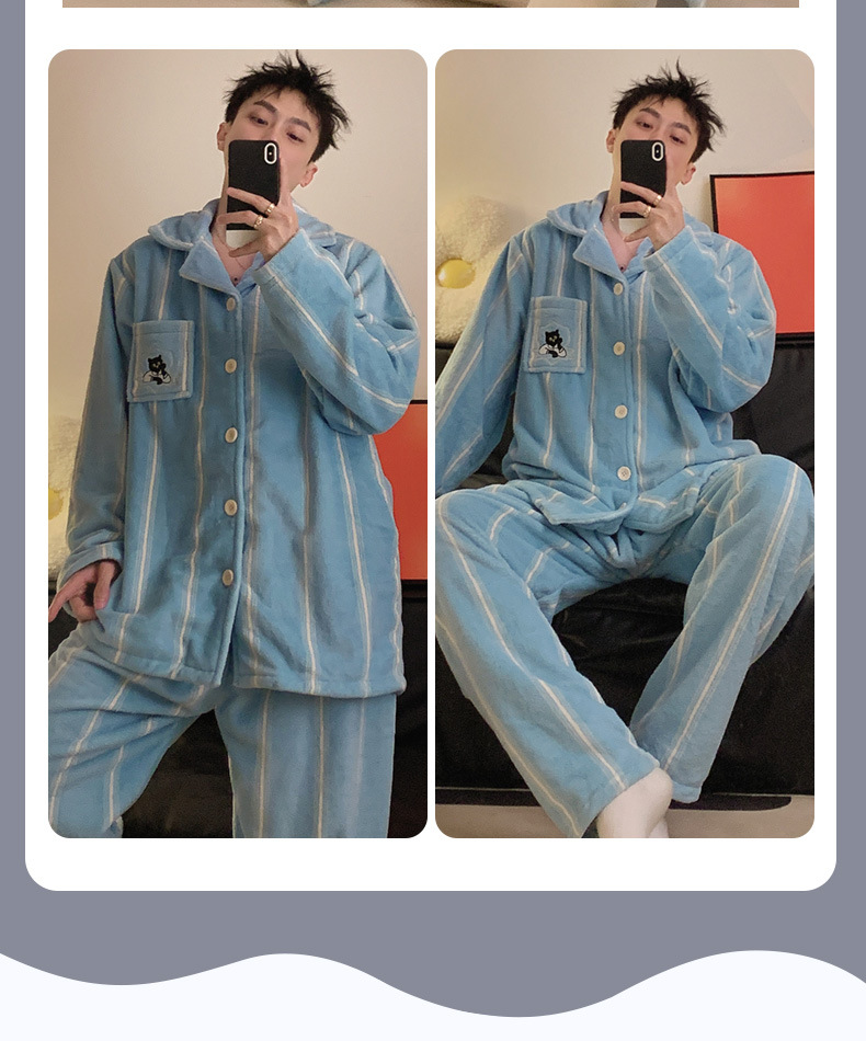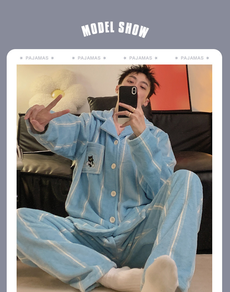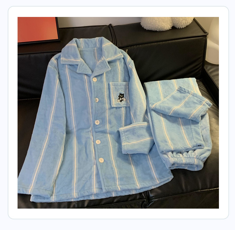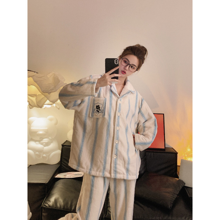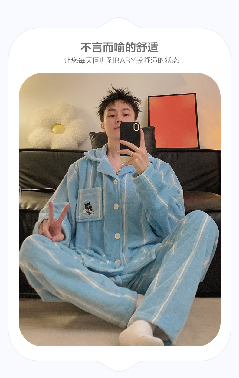 커플 잠옷 겨울 새로운 플란넬 카디건 긴 소매 한국 스타일 Ins 스타일 따뜻한 겨울 홈 의류 남성과 여성스토어 가기