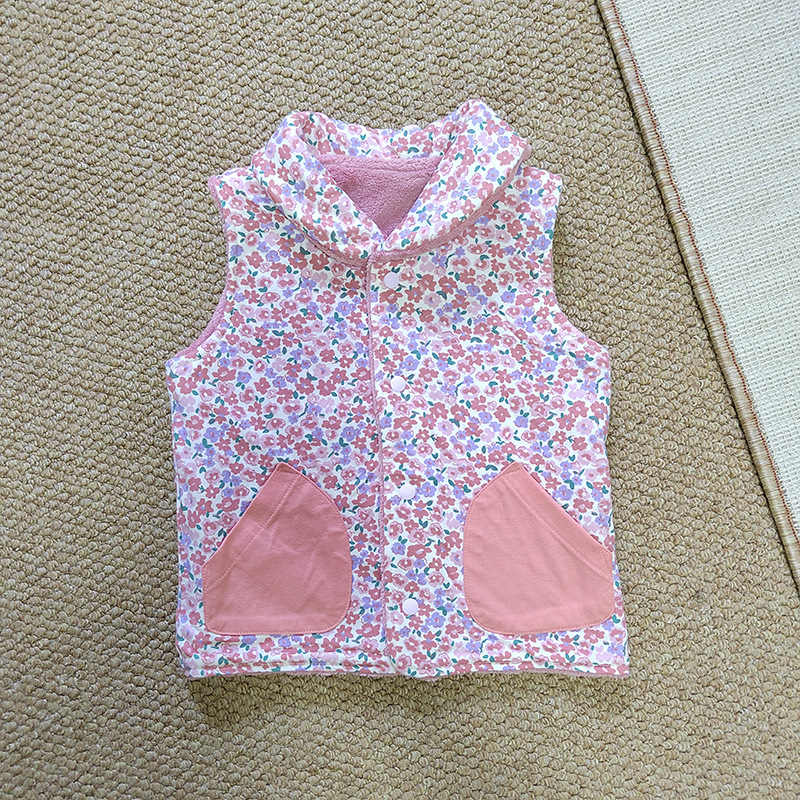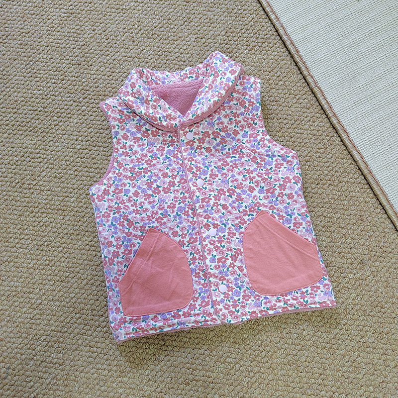 가을과 겨울 대외 무역 100 사이즈 아기 조끼 여성 아기 벨벳 조끼 소녀의 양면 꽃 민소매 재킷