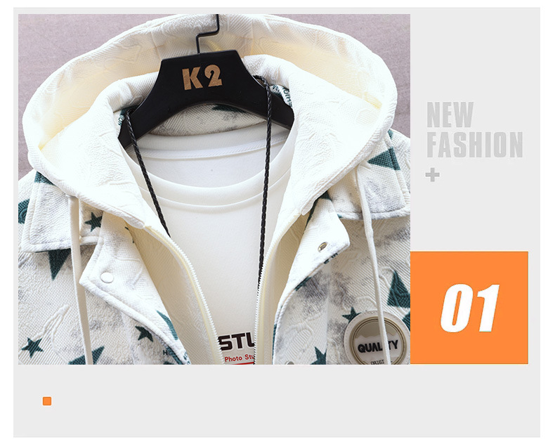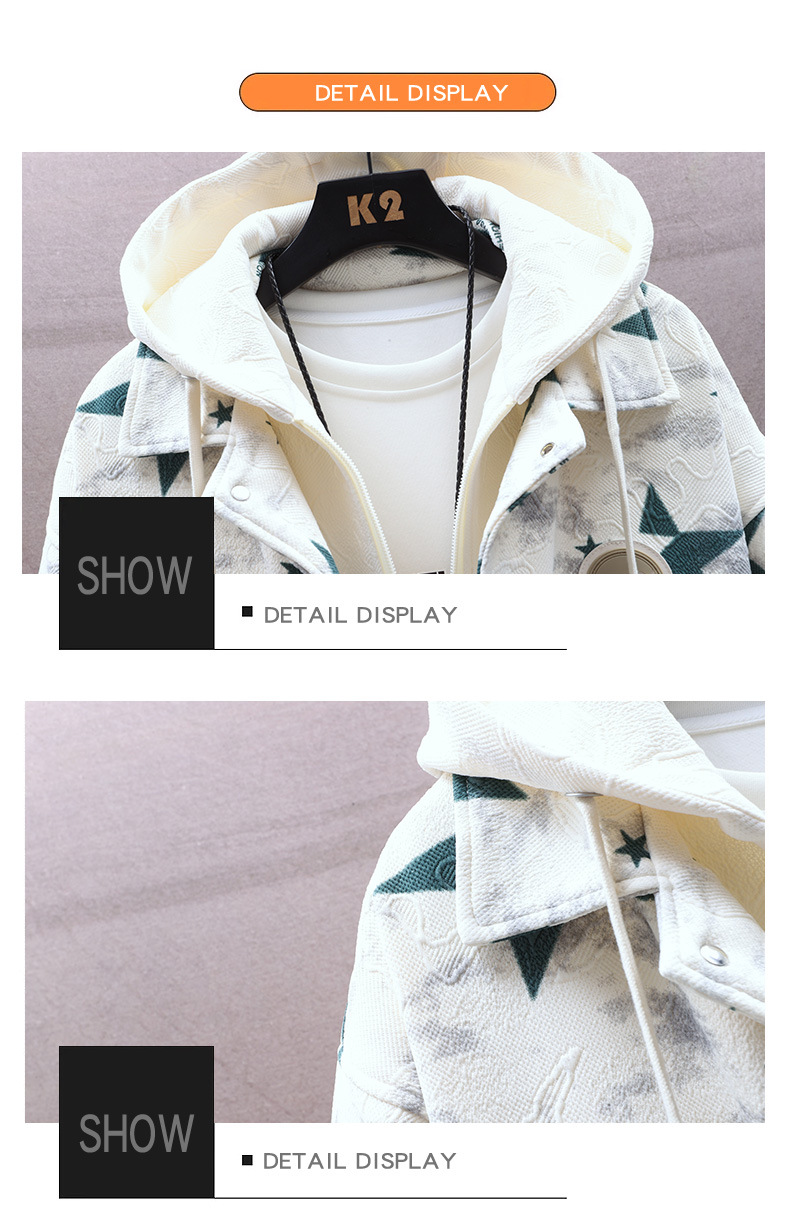 가짜 투피스 후드 자켓 남자의 가을과 겨울 만화 인쇄 재킷 남자의 유행 브랜드 청소년 봄과 가을 작업복 재킷