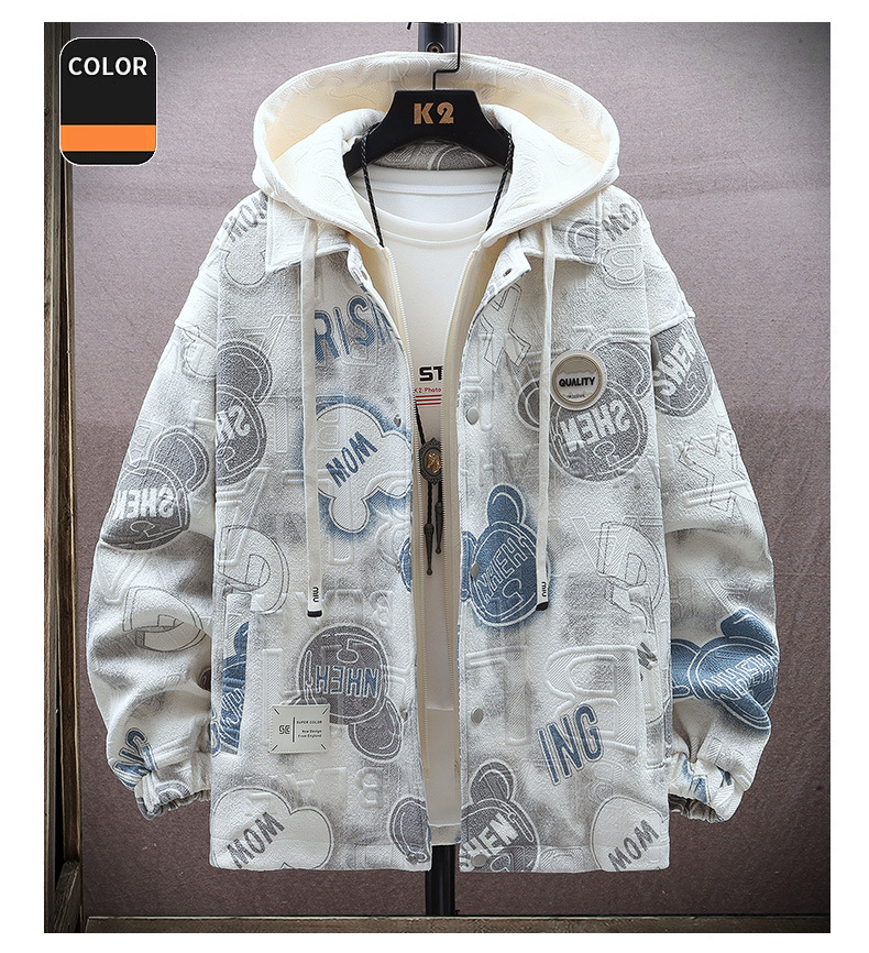 가짜 투피스 후드 자켓 남자의 가을과 겨울 만화 인쇄 재킷 남자의 유행 브랜드 청소년 봄과 가을 작업복 재킷스토어 가기
