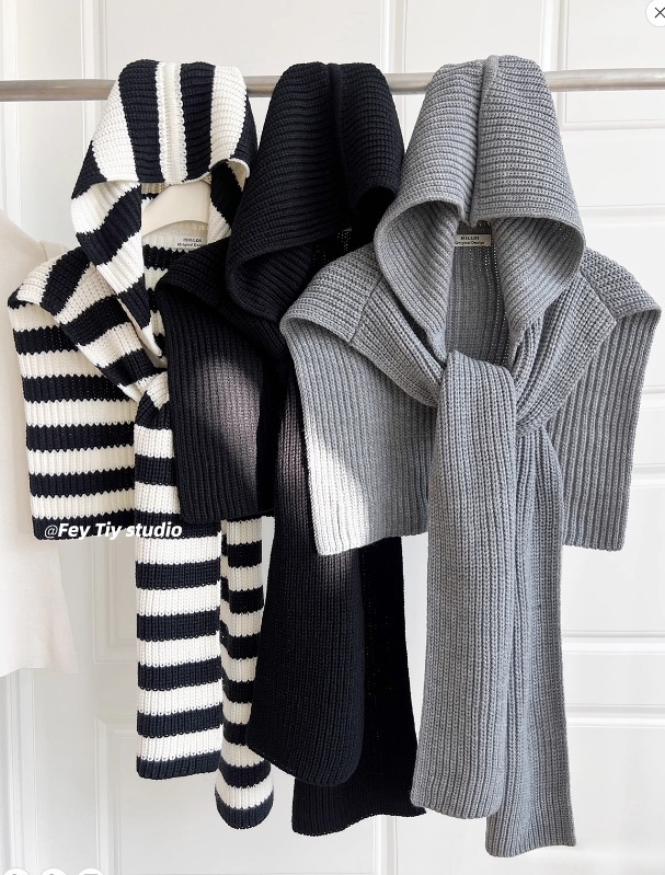 한국 동대문 디자인 센스 패션 니트 후드 목도리 여성 가을 겨울 따뜻한 목 올매치 외투 패션