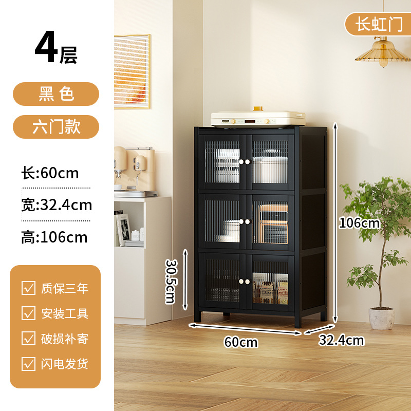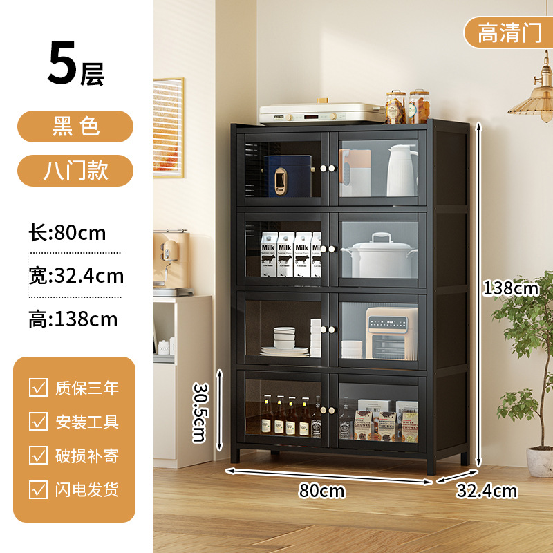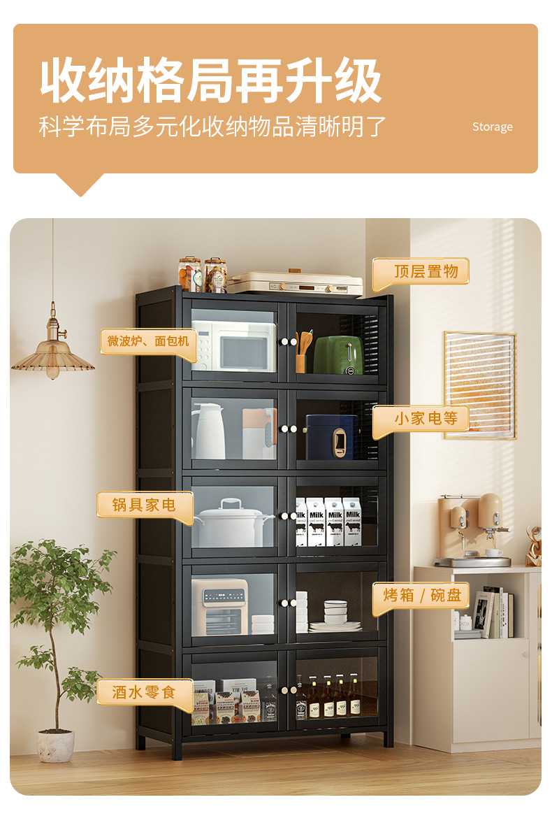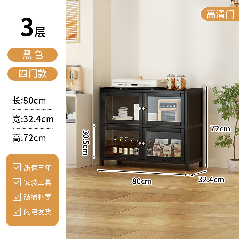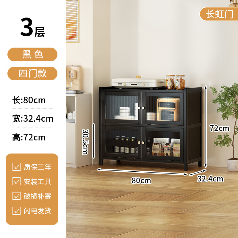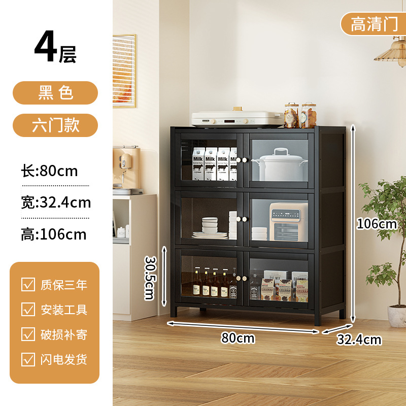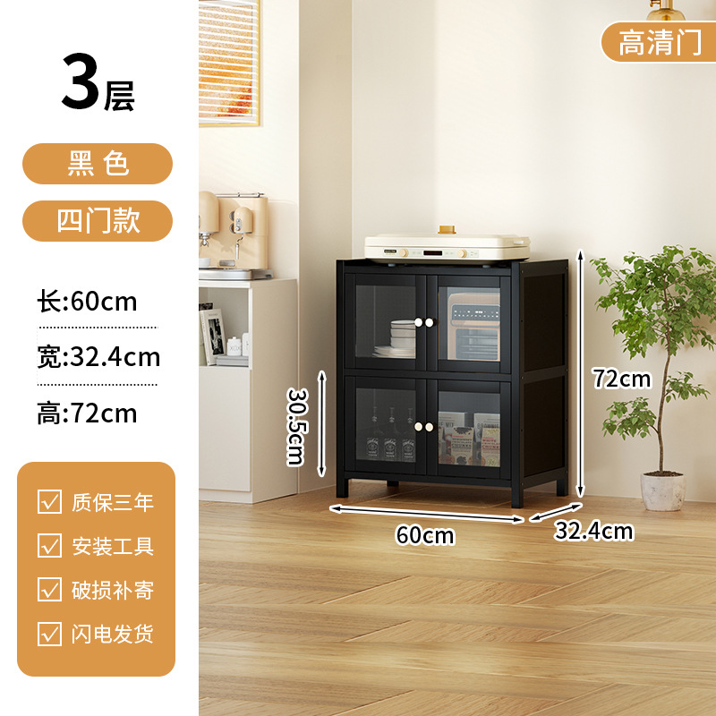 사이드 보드 2025 새로운 주방 스토리지 랙 도어 벽 통합 전자 레인지 냄비가있는 바닥에 서있는 다층 스토리지