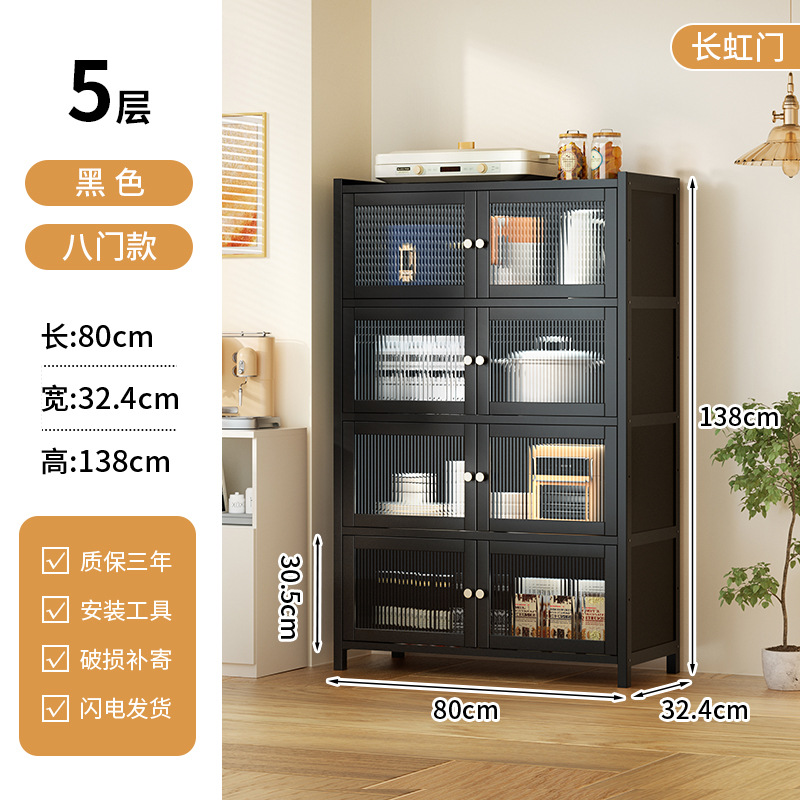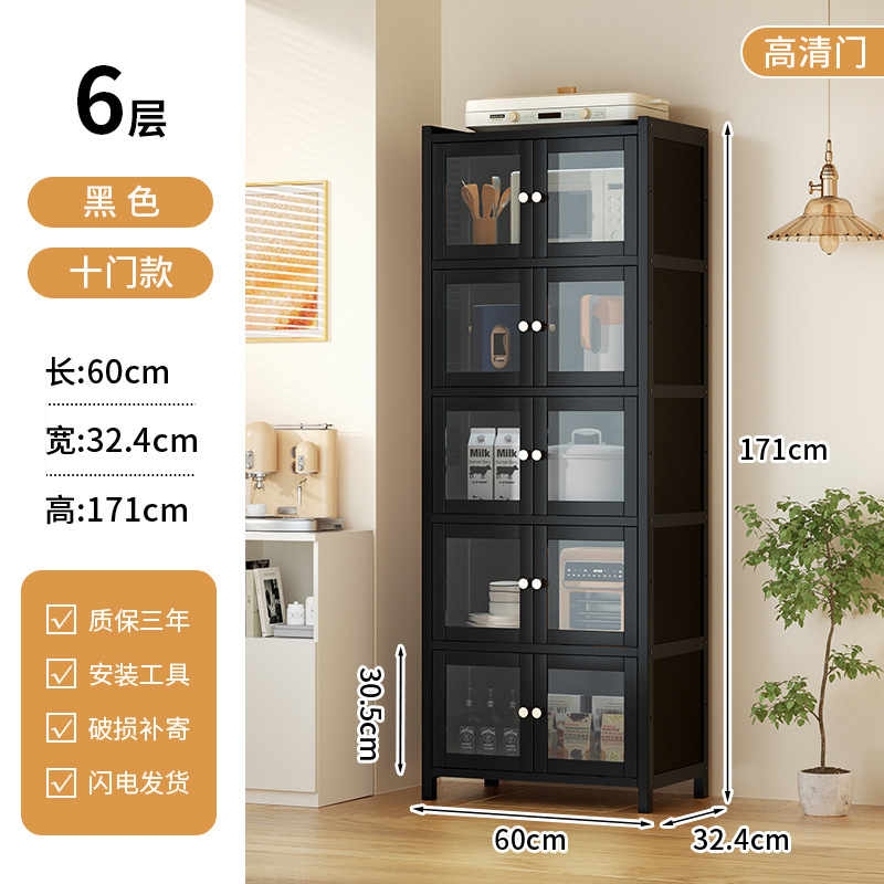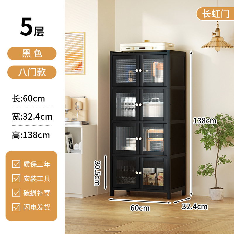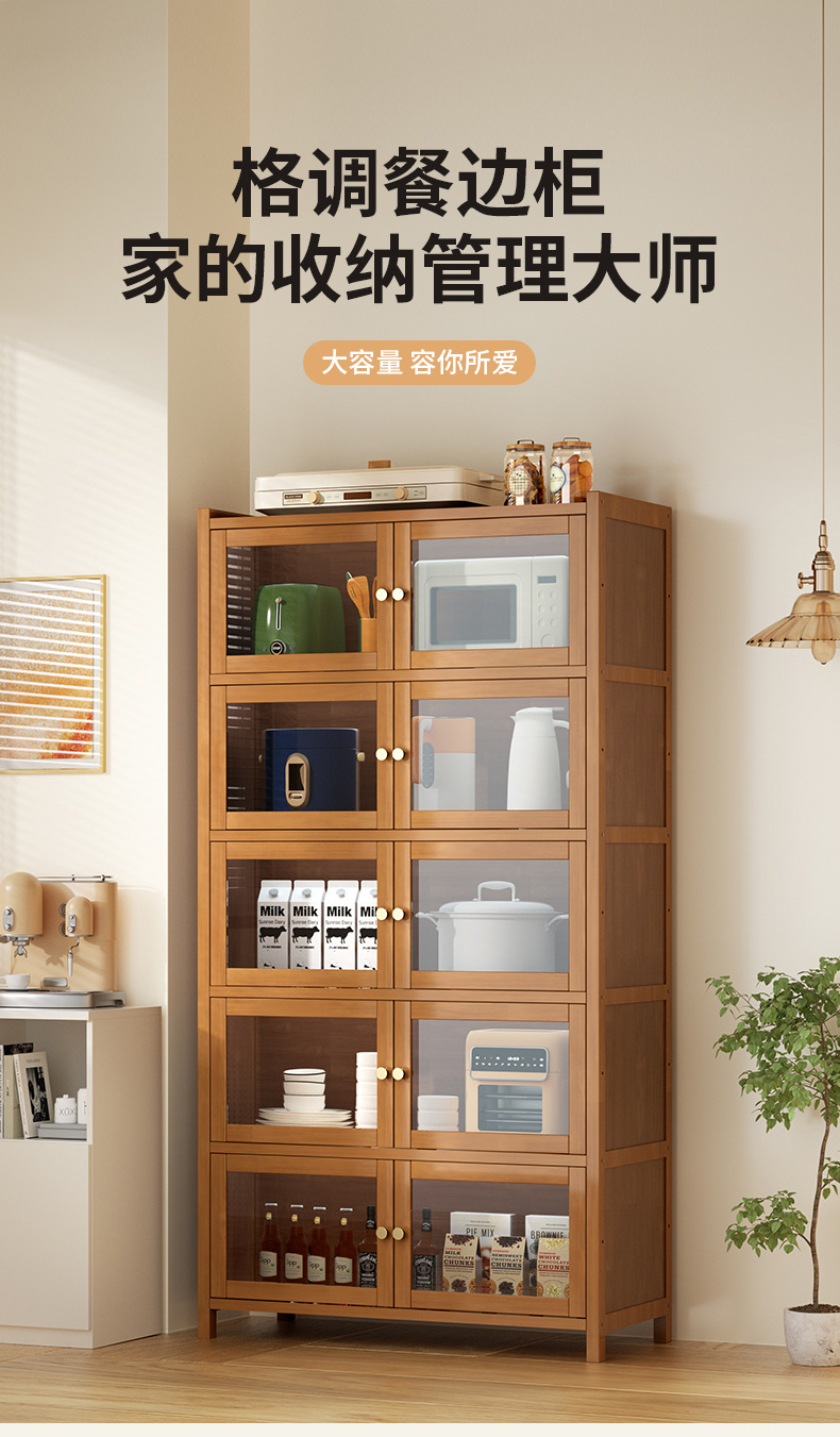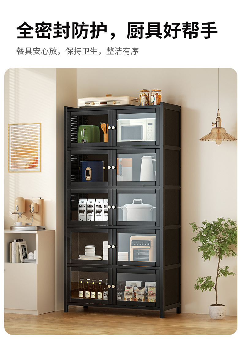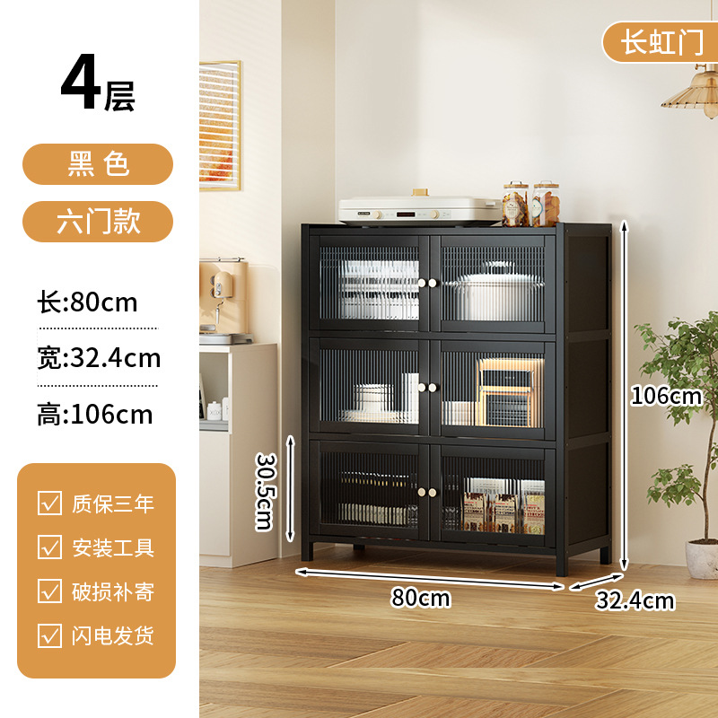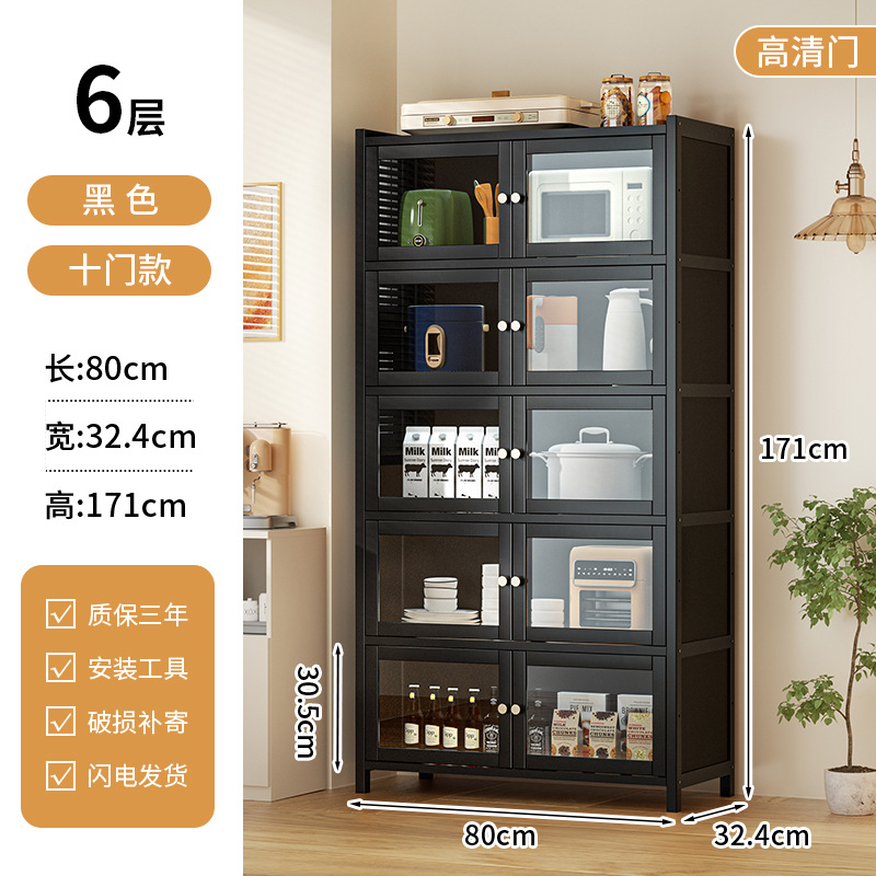 사이드 보드 2025 새로운 주방 스토리지 랙 도어 벽 통합 전자 레인지 냄비가있는 바닥에 서있는 다층 스토리지