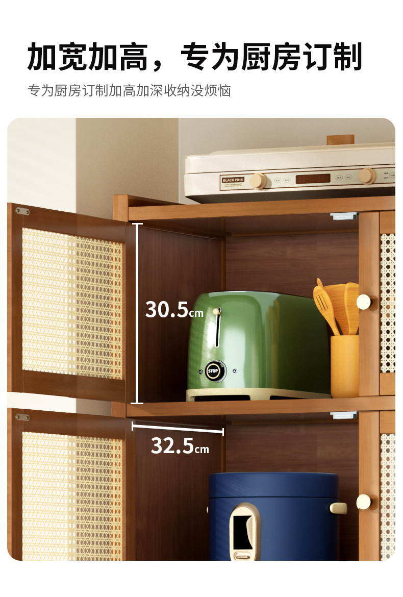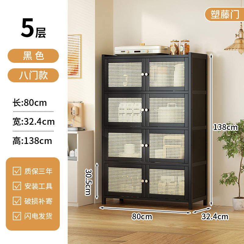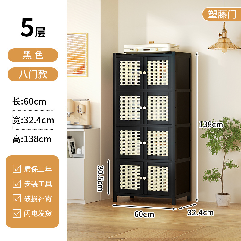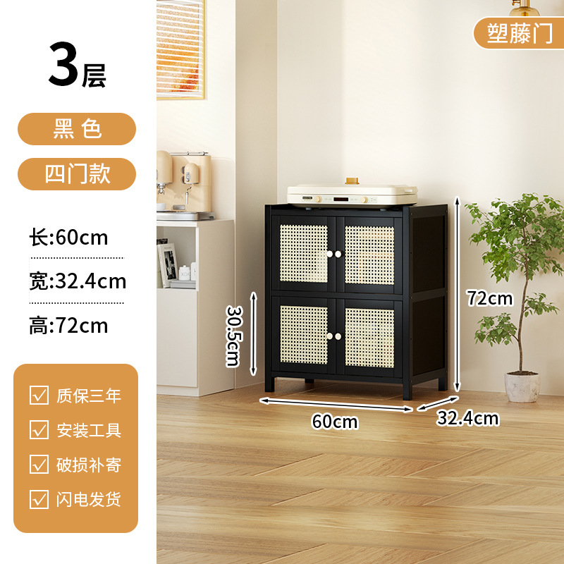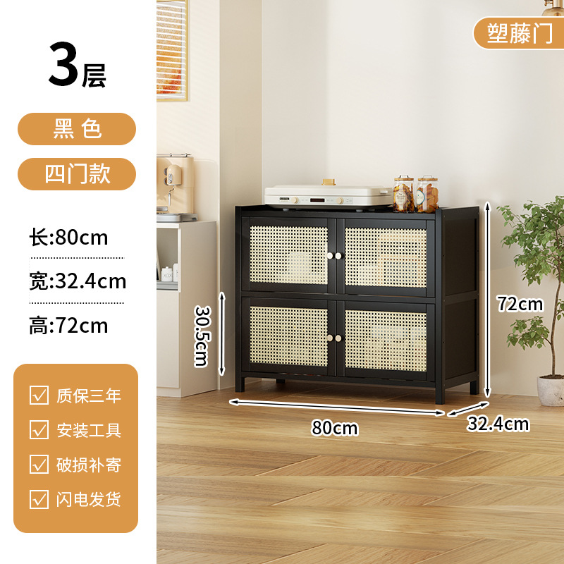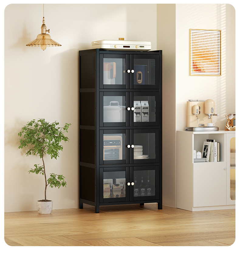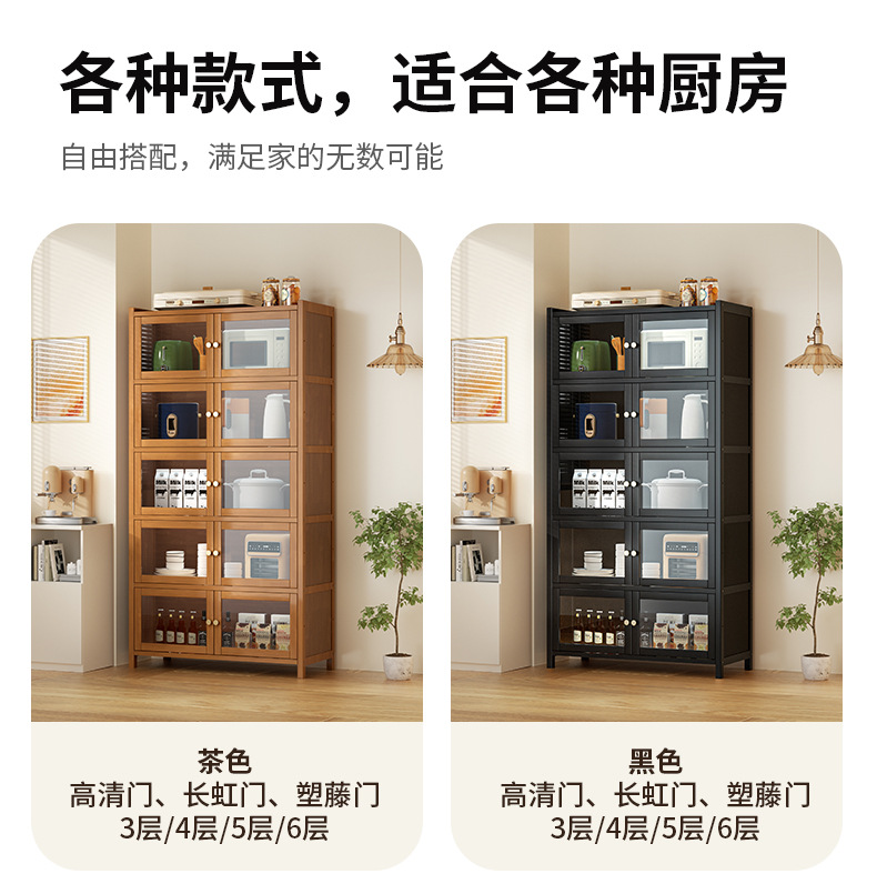 사이드 보드 2025 새로운 주방 스토리지 랙 도어 벽 통합 전자 레인지 냄비가있는 바닥에 서있는 다층 스토리지