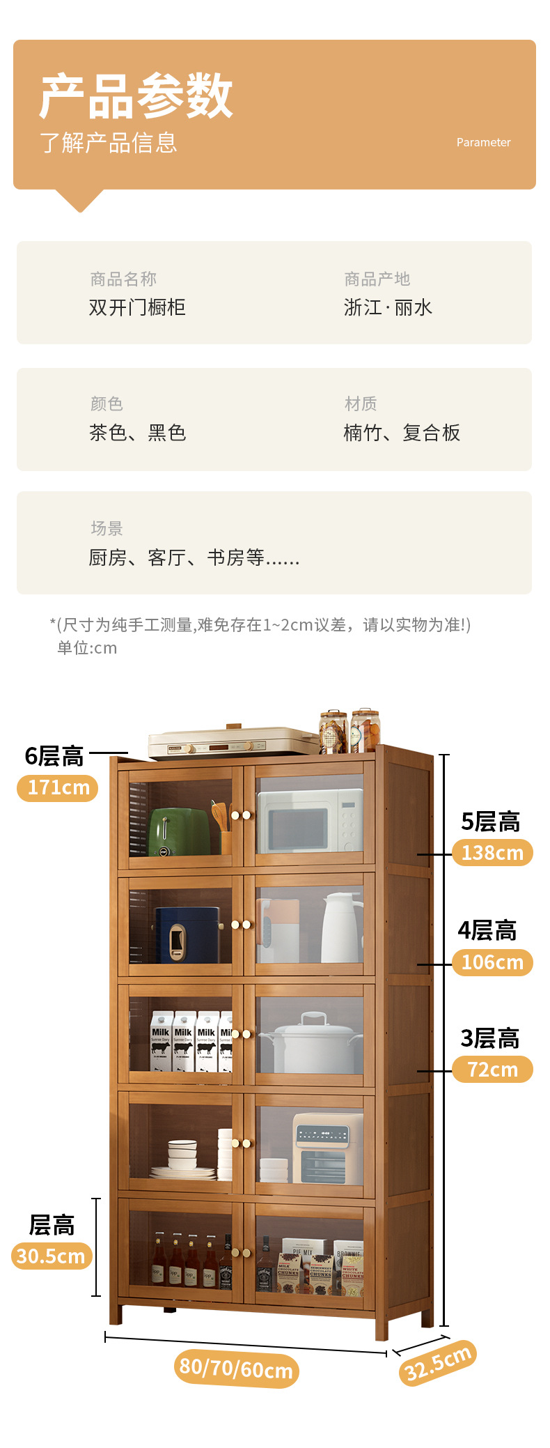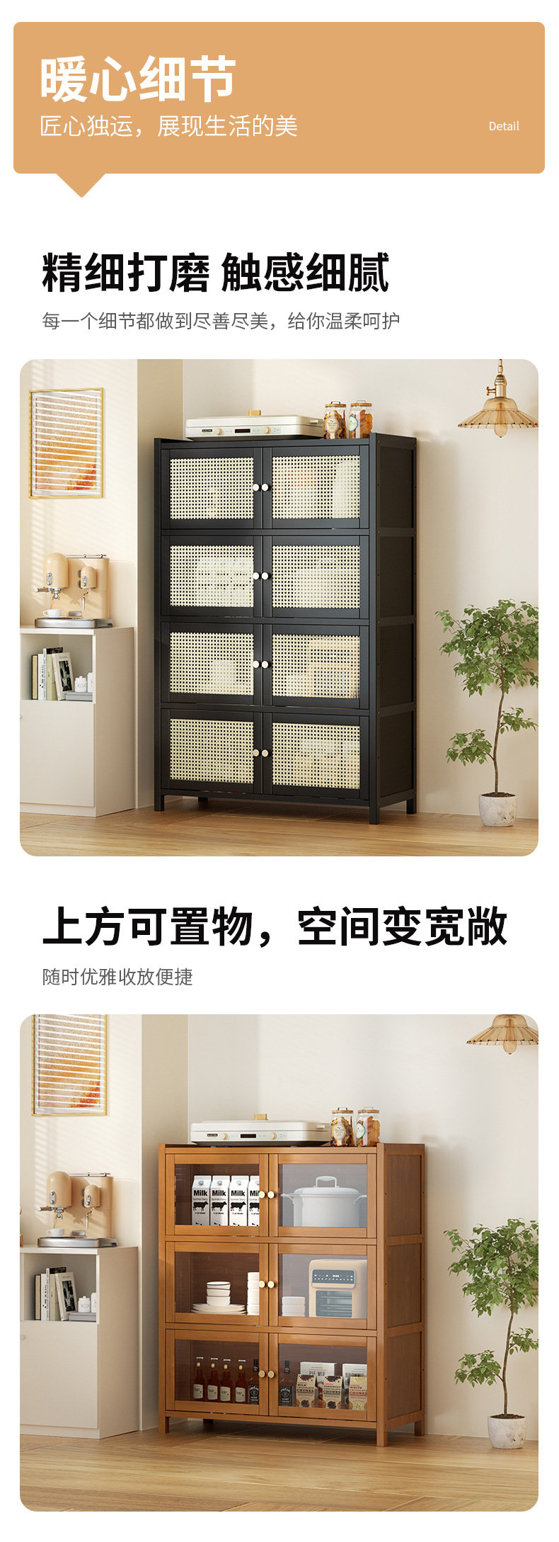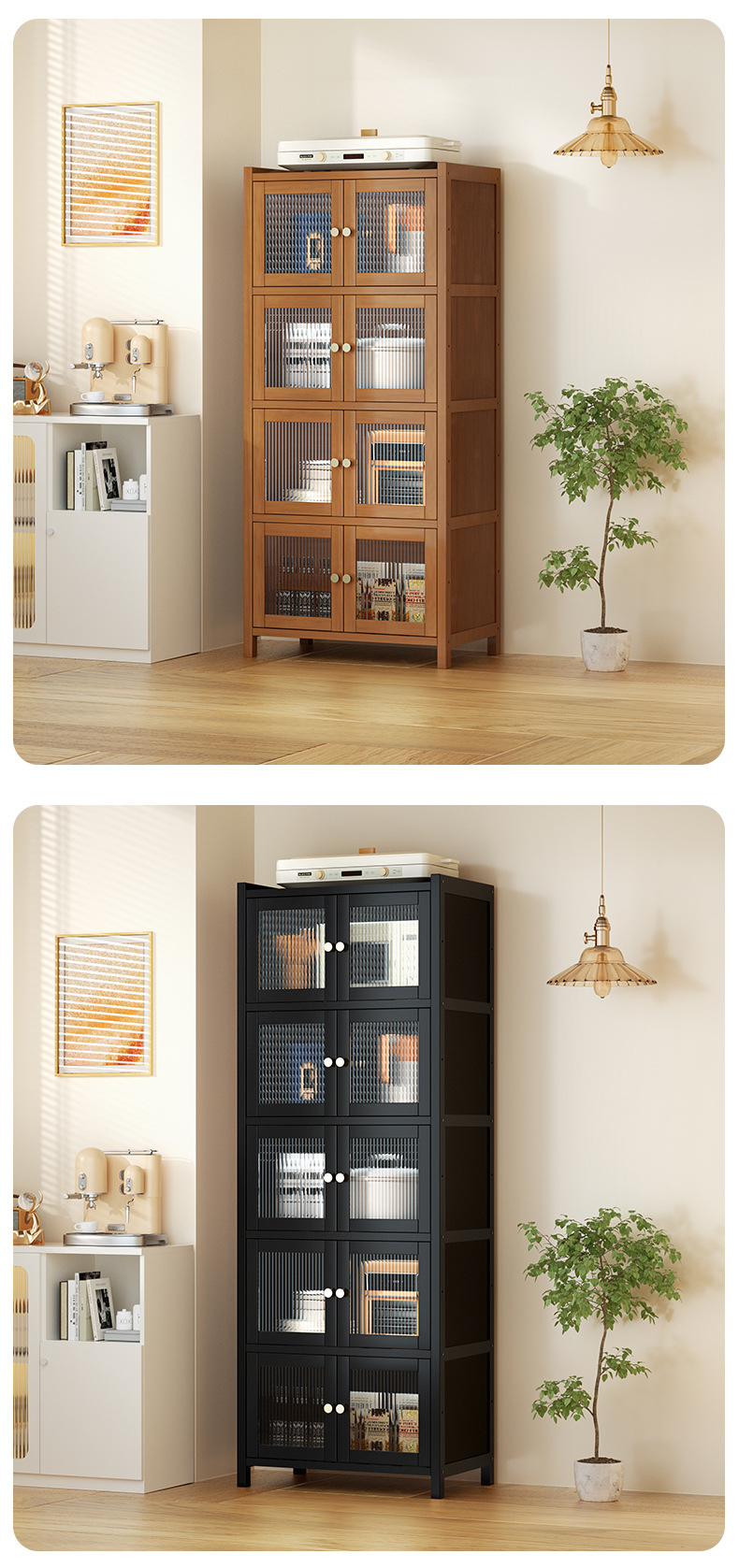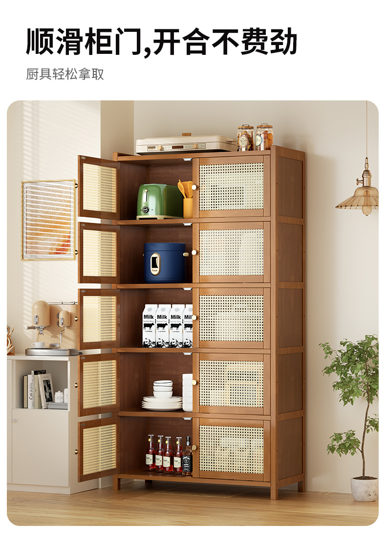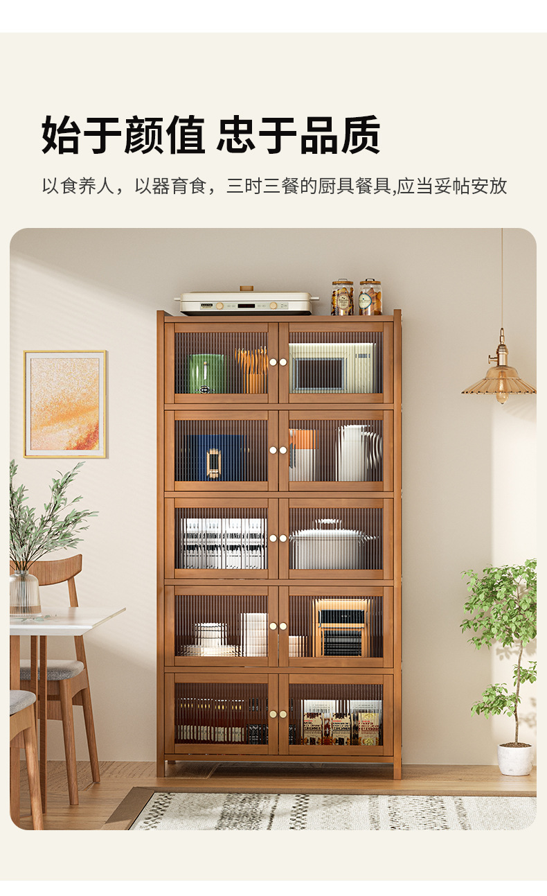 사이드 보드 2025 새로운 주방 스토리지 랙 도어 벽 통합 전자 레인지 냄비가있는 바닥에 서있는 다층 스토리지