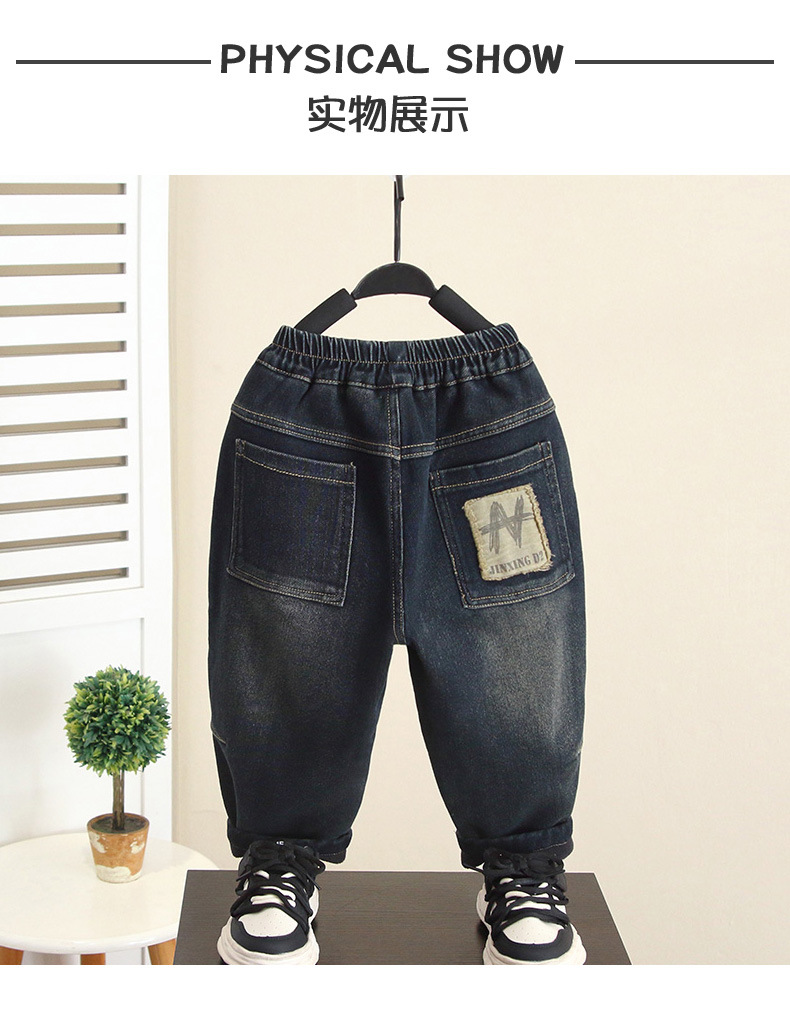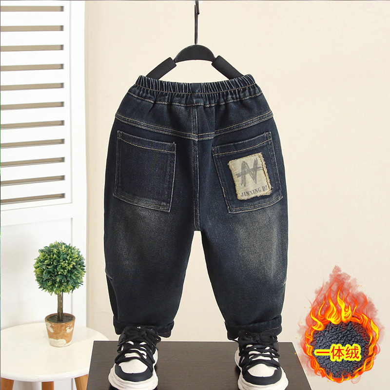 6502 소년 청바지 통합 벨벳 기모 겨울 2024 새로운 아동복 가을 및 겨울 두꺼운 바지 스트레이트 다리 바지스토어 가기