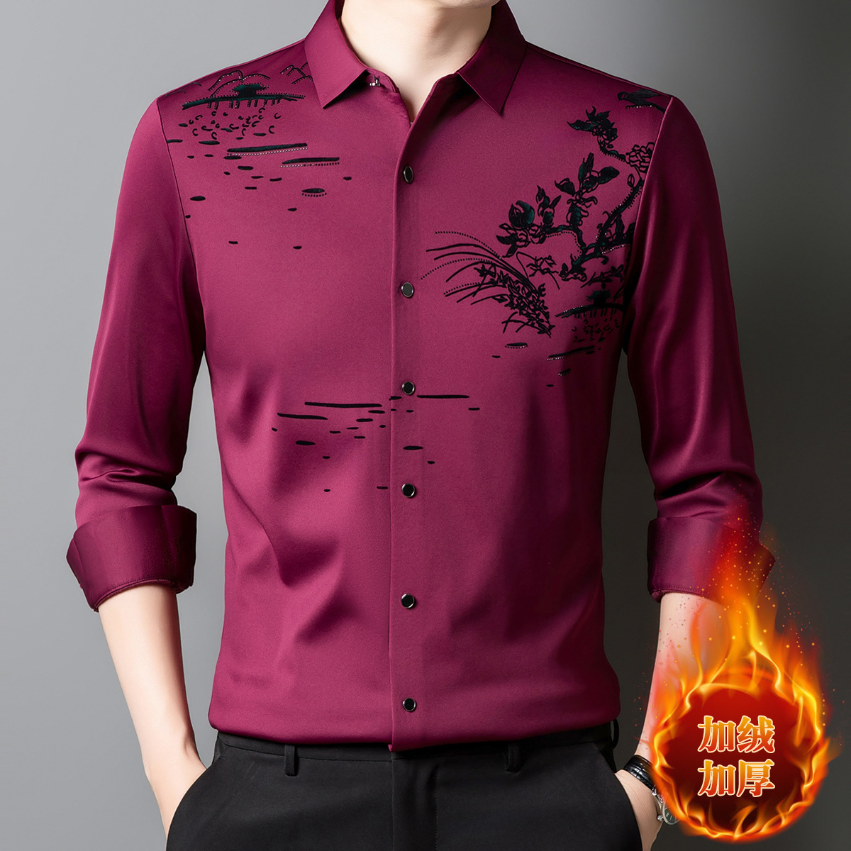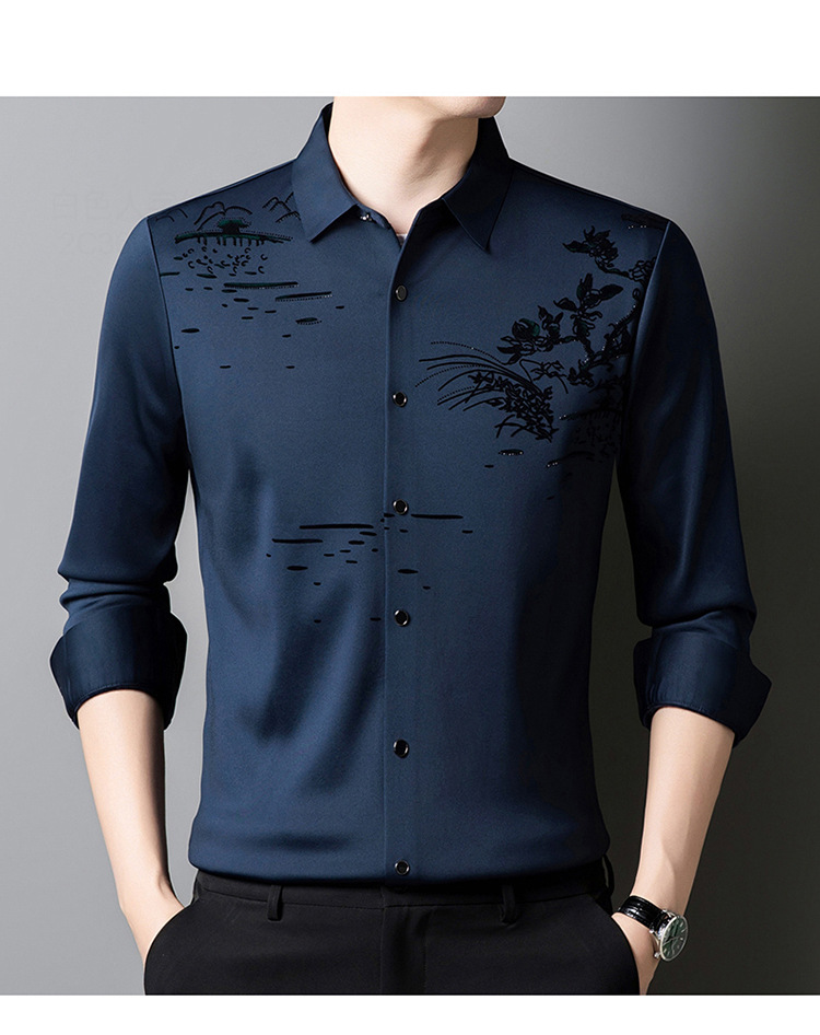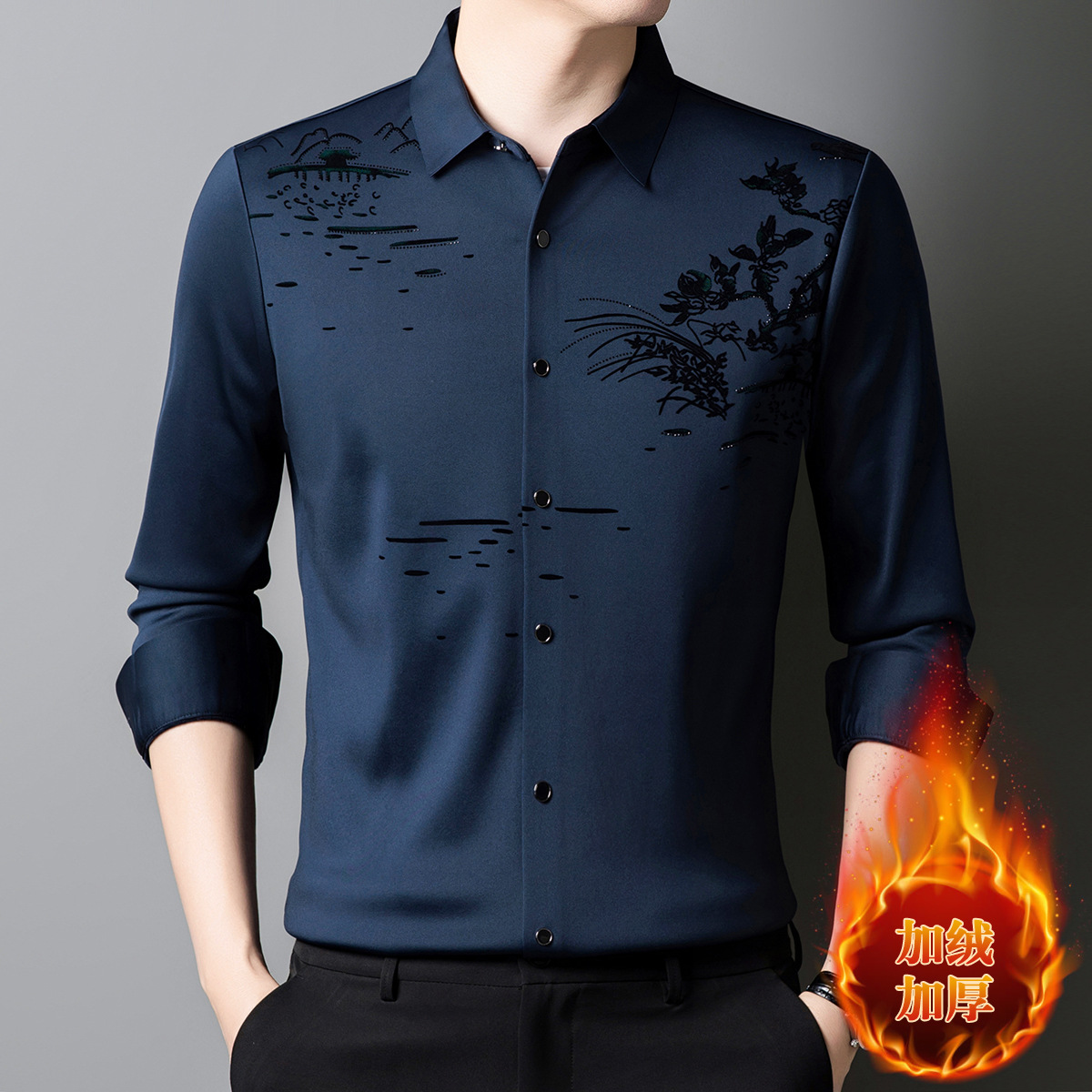 남자 하이 퀄리티 가을 겨울 풍경 차트 뜨거운 드릴링 비 추적 기모 긴팔 셔츠 청소년 사업 캐주얼 우아한 셔츠
