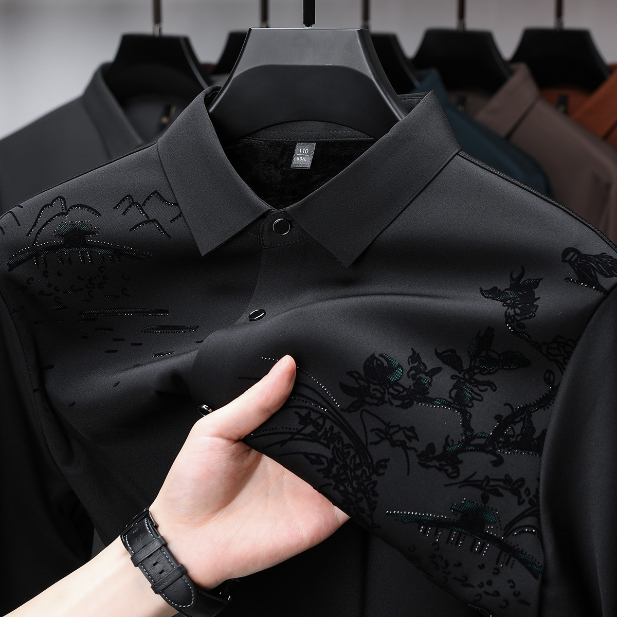 남자 하이 퀄리티 가을 겨울 풍경 차트 뜨거운 드릴링 비 추적 기모 긴팔 셔츠 청소년 사업 캐주얼 우아한 셔츠스토어 가기