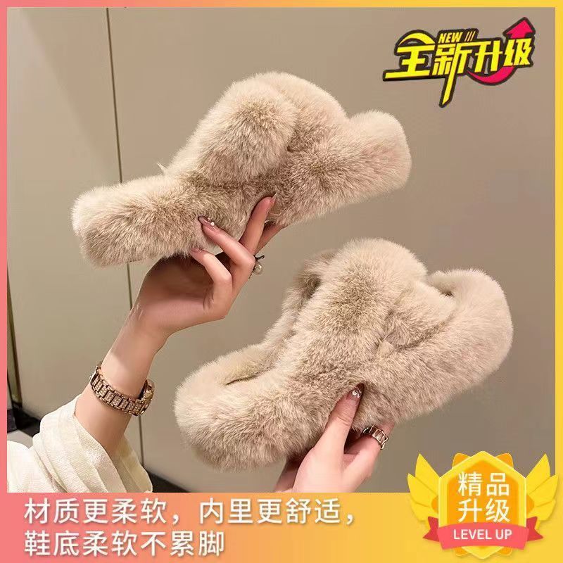 인터넷 연예인 인기 여성용 모피 슬리퍼, 2025 신상 가을 겨울 패셔너블한 외출용 두꺼운 밑창의 플러시 천 슬리퍼스토어 가기