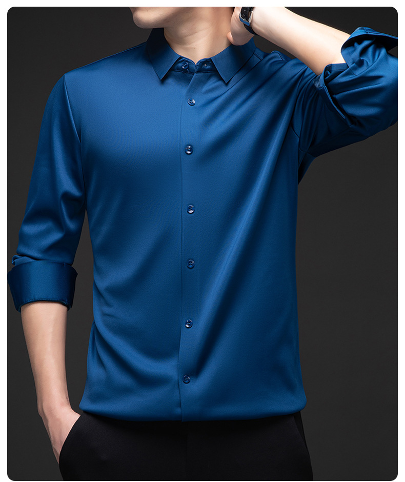 국경을 넘나 드는 가을과 겨울 남자 tracless 기모 긴팔 셔츠 청소년 따뜻한 비즈니스 캐주얼 우아한 고급 인테리어 원피스