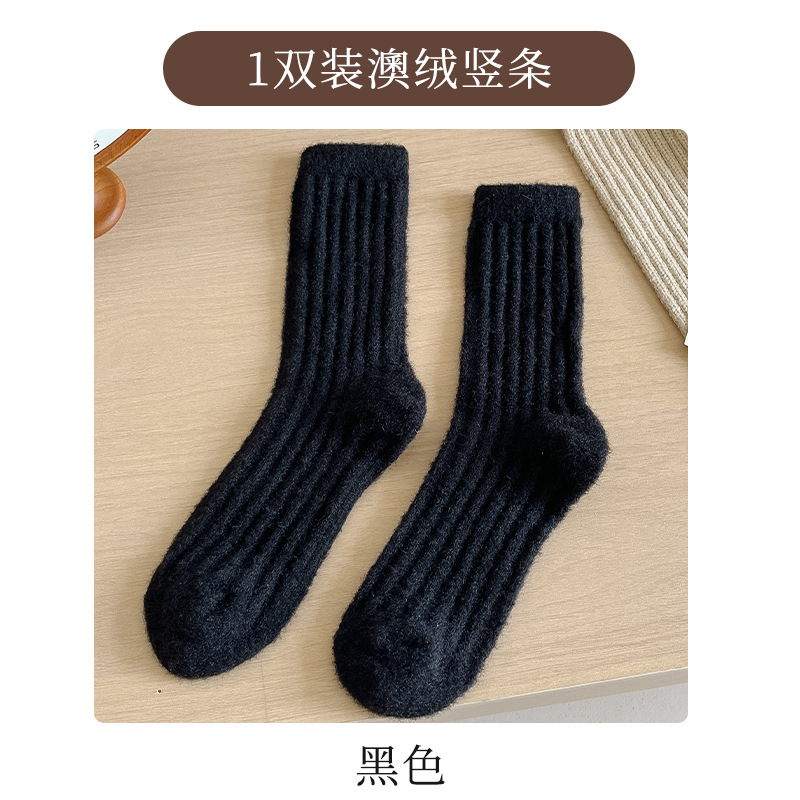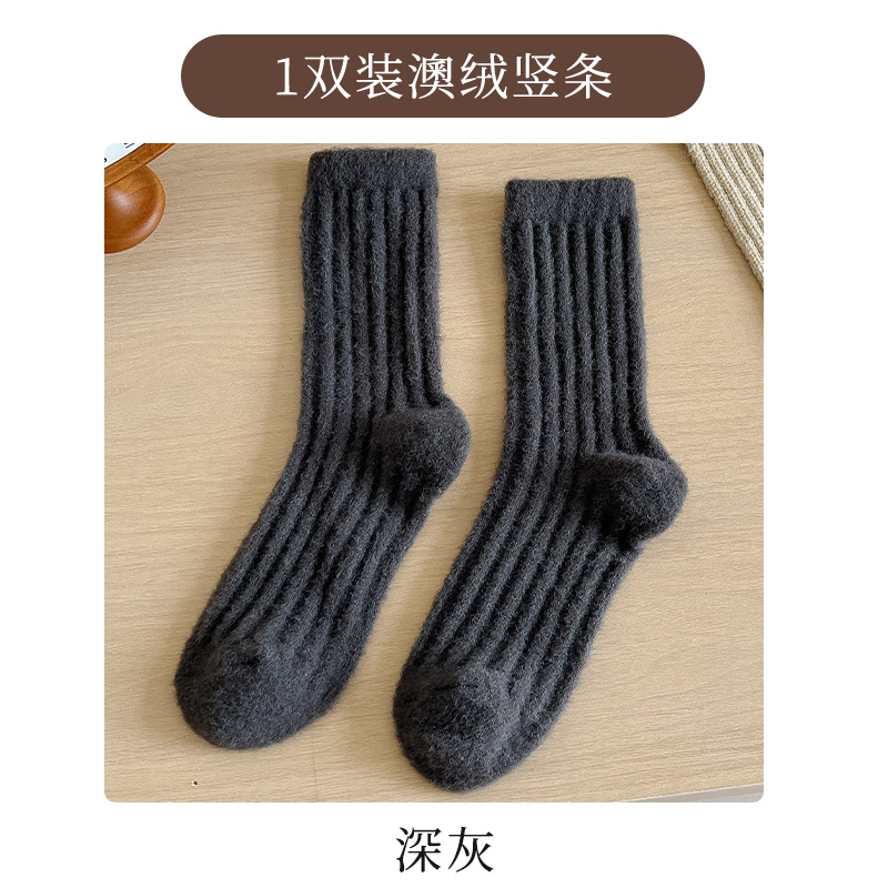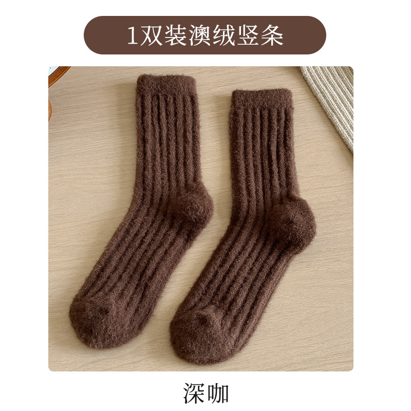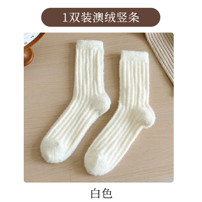 2024 호주 벨벳 단색 수직 양말 가을과 겨울 두꺼운 기모 따뜻한 홈 바닥 양말 수면 양말