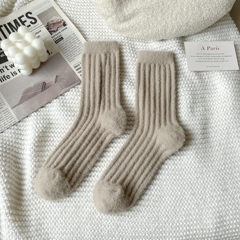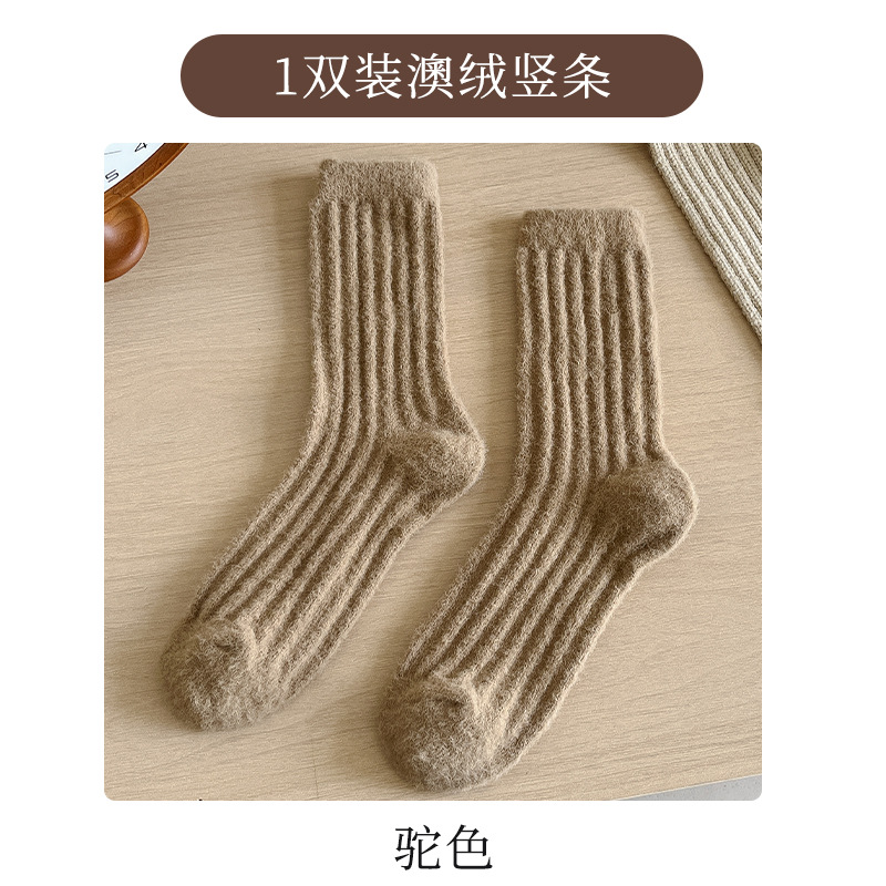 2024 호주 벨벳 단색 수직 양말 가을과 겨울 두꺼운 기모 따뜻한 홈 바닥 양말 수면 양말스토어 가기
