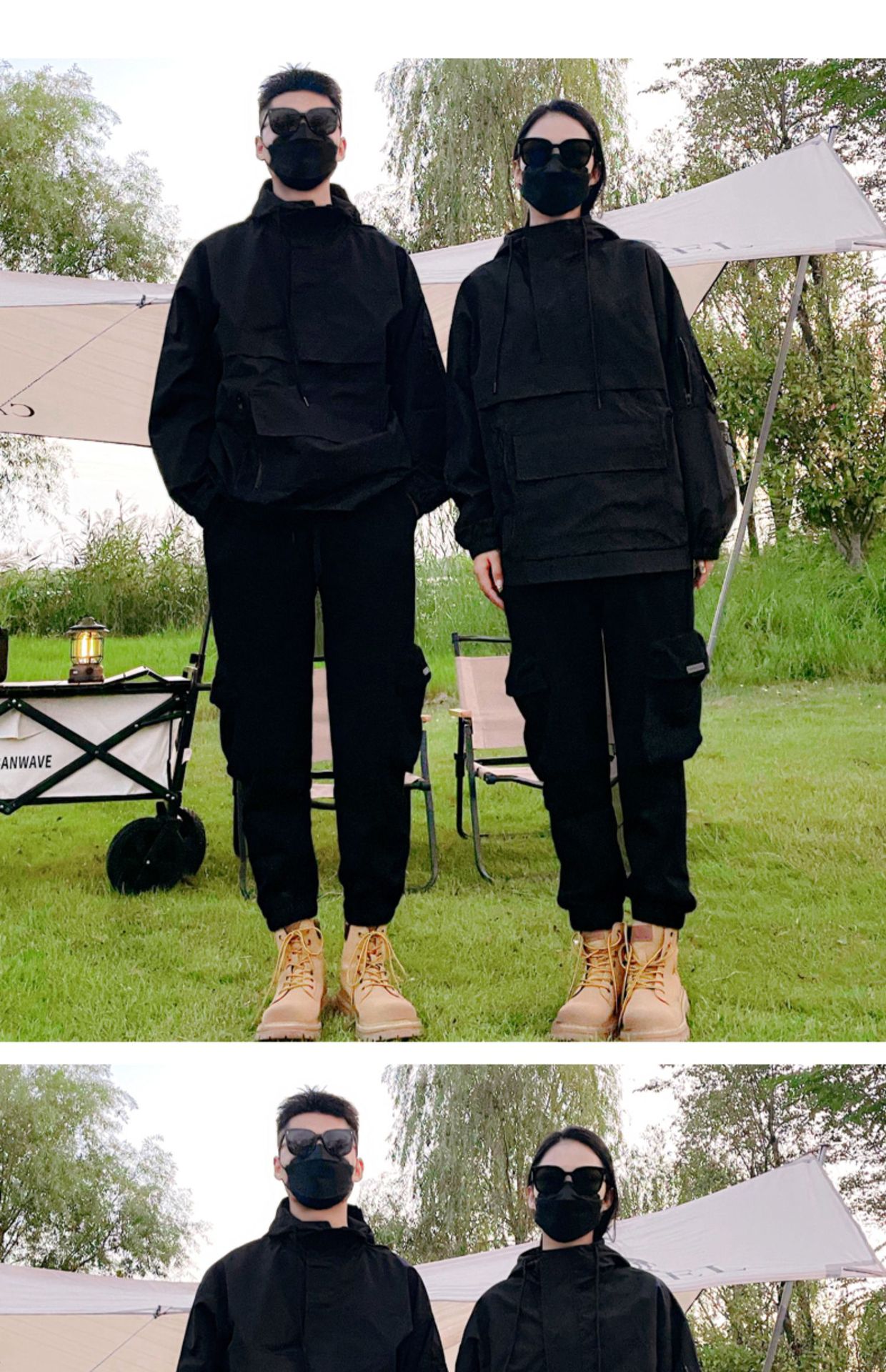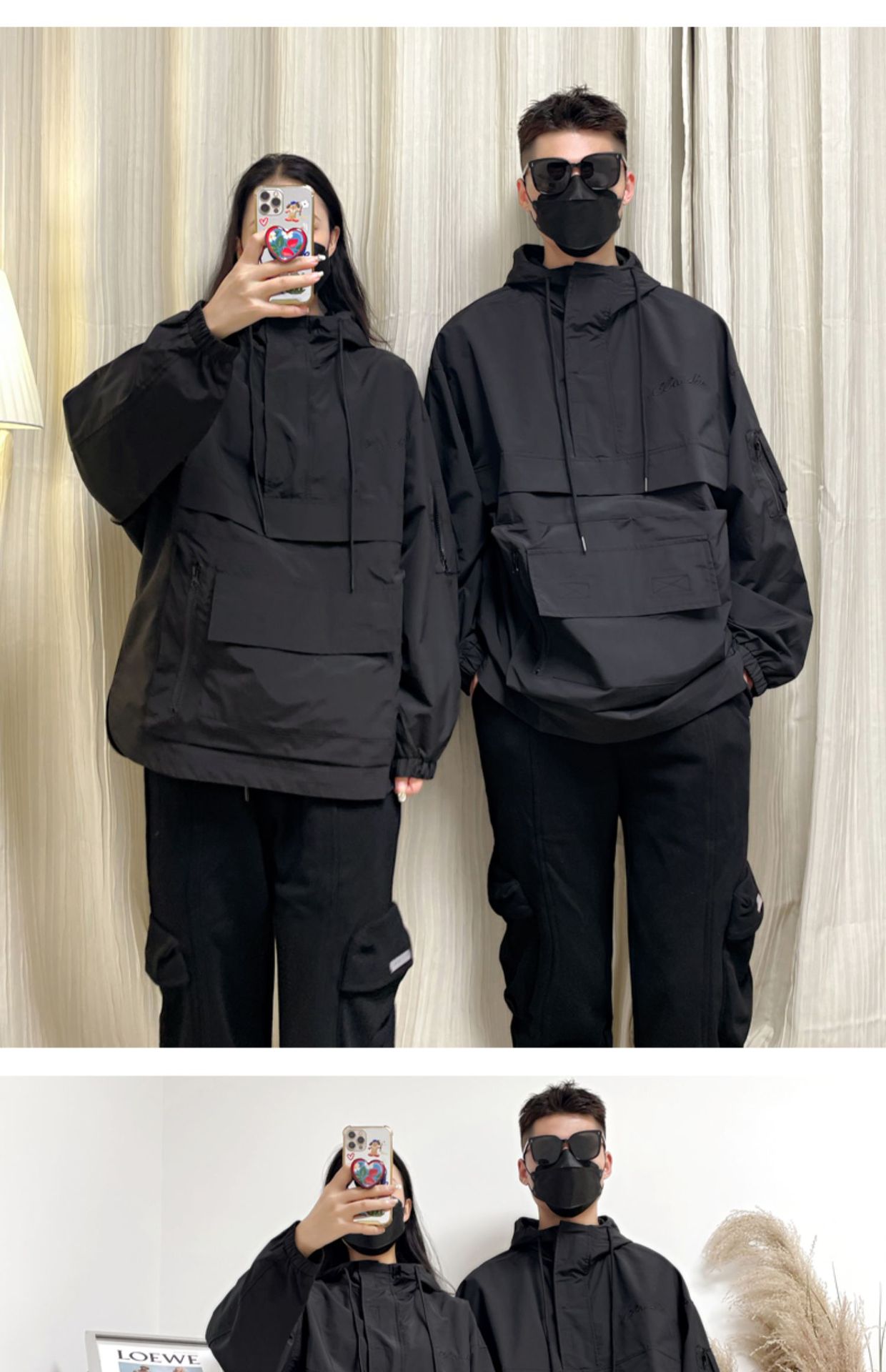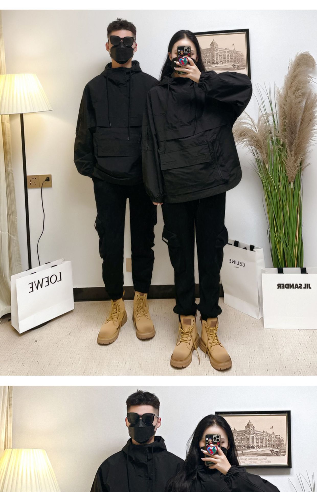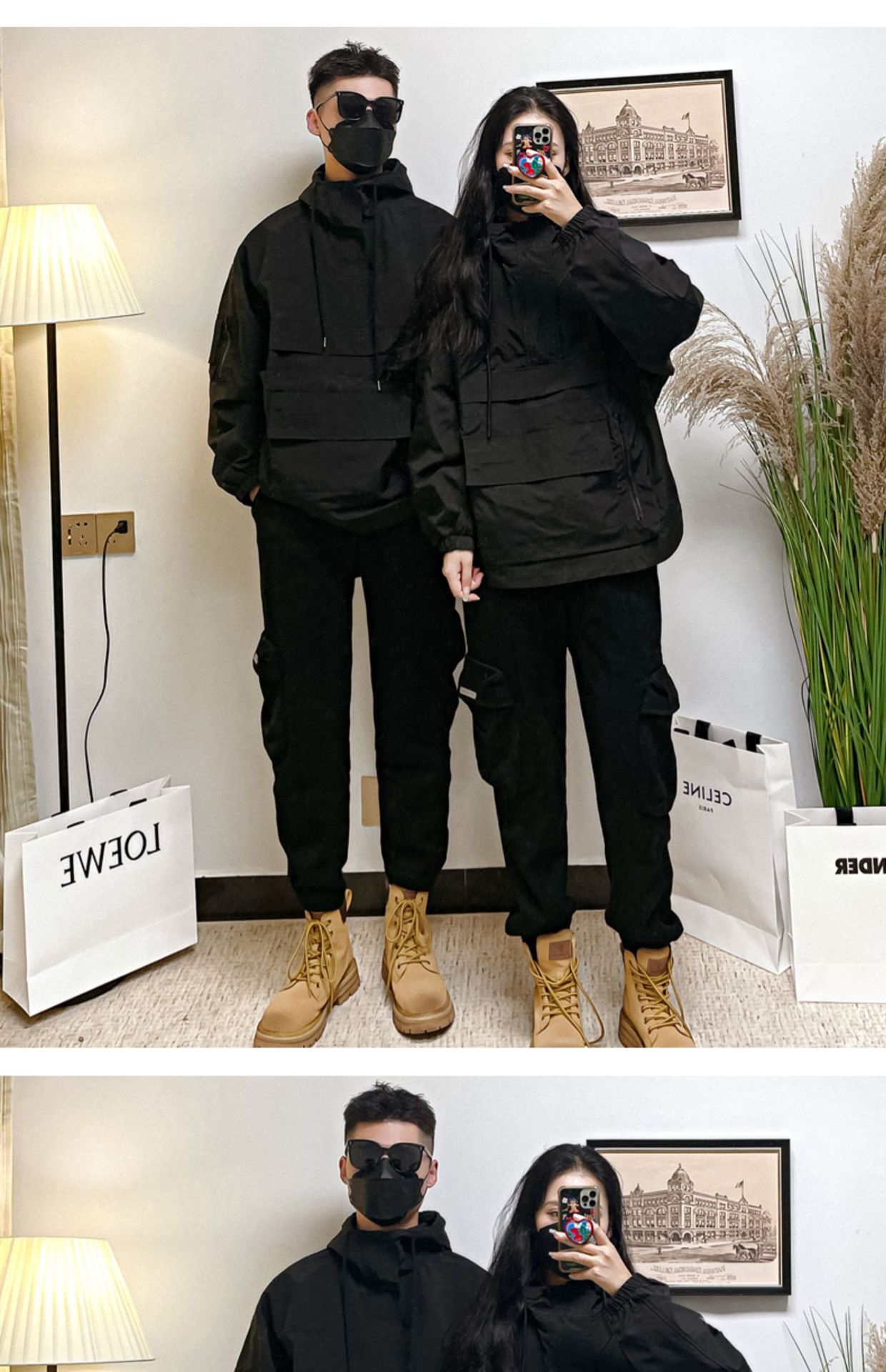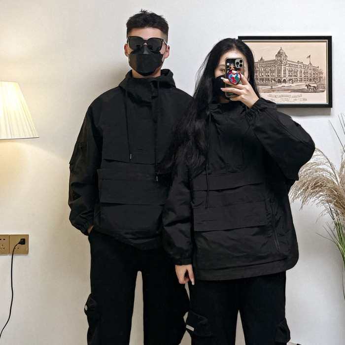 커플 풀오버 재킷 여성의 봄과 가을 빈티지 아메리칸 스타일 블랙 사무라이 기능성 후드 루즈 재킷