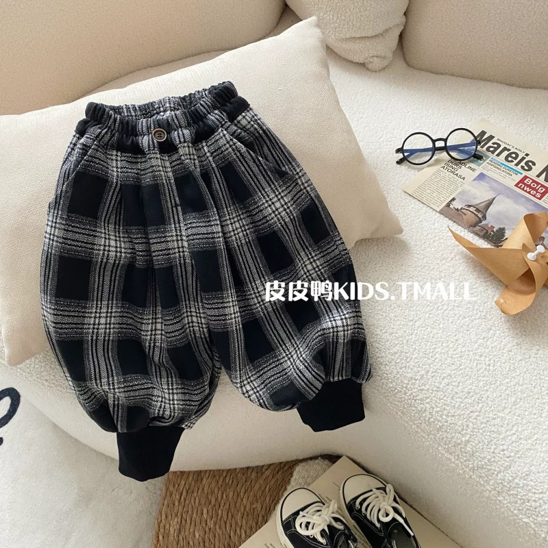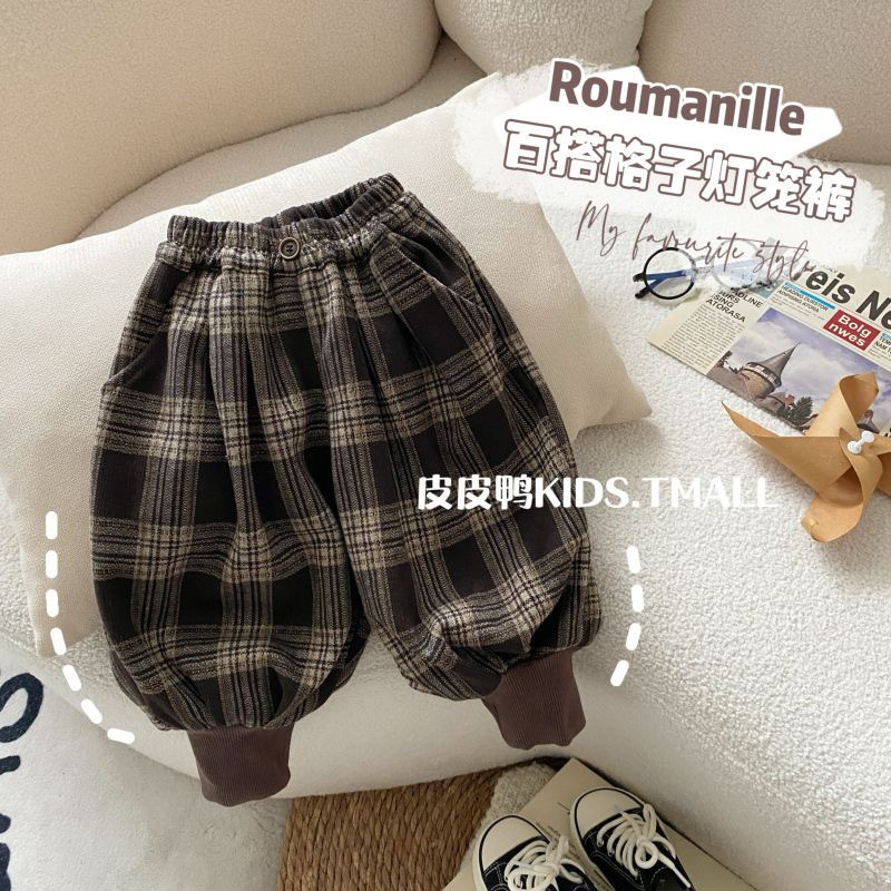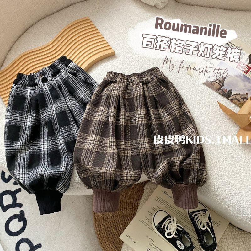 男童秋装裤子2024新款儿童春秋百搭灯笼裤宝宝休闲格子束脚长裤潮