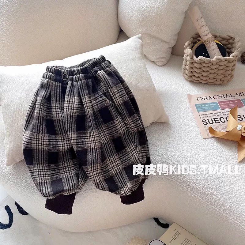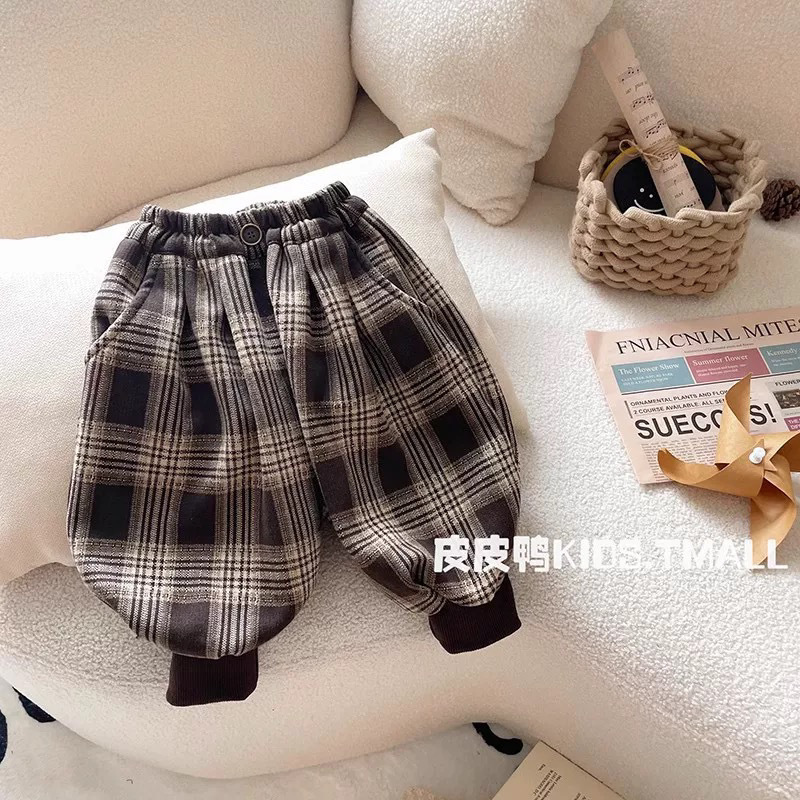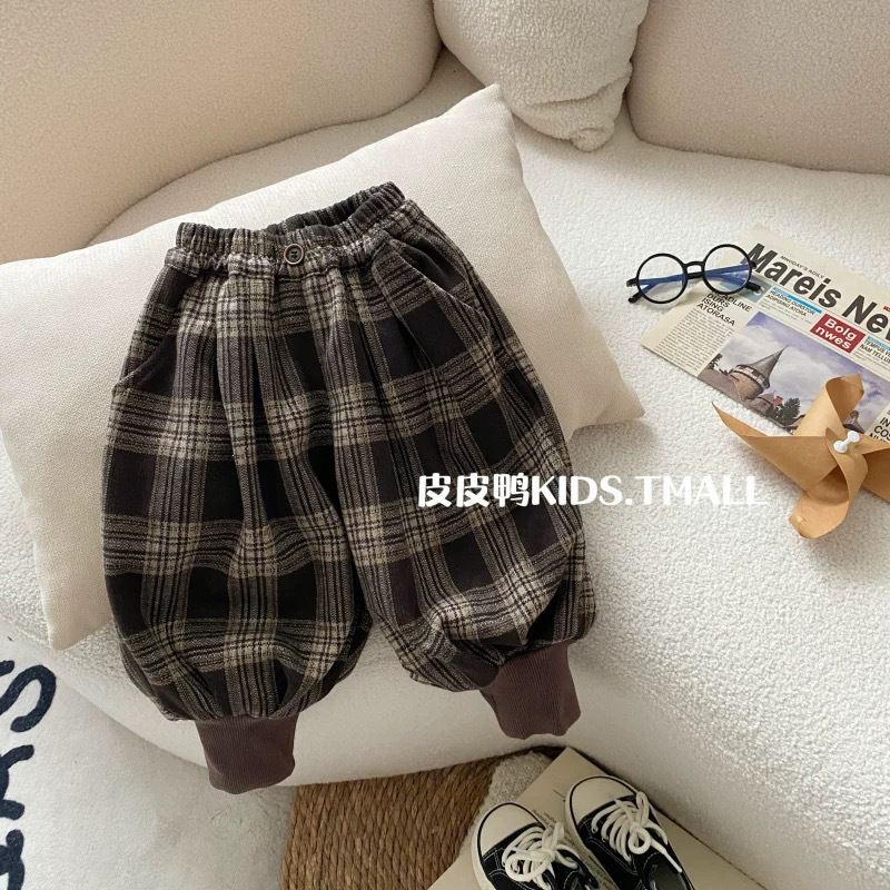 소년의 가을 바지 2024 새로운 어린이 봄과 가을 잘 맞는 블루머스 아기의 캐주얼 격자 무늬 바지 트렌디스토어 가기
