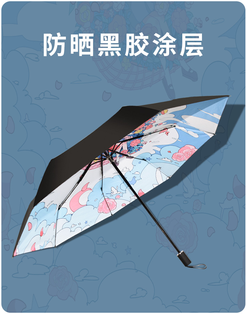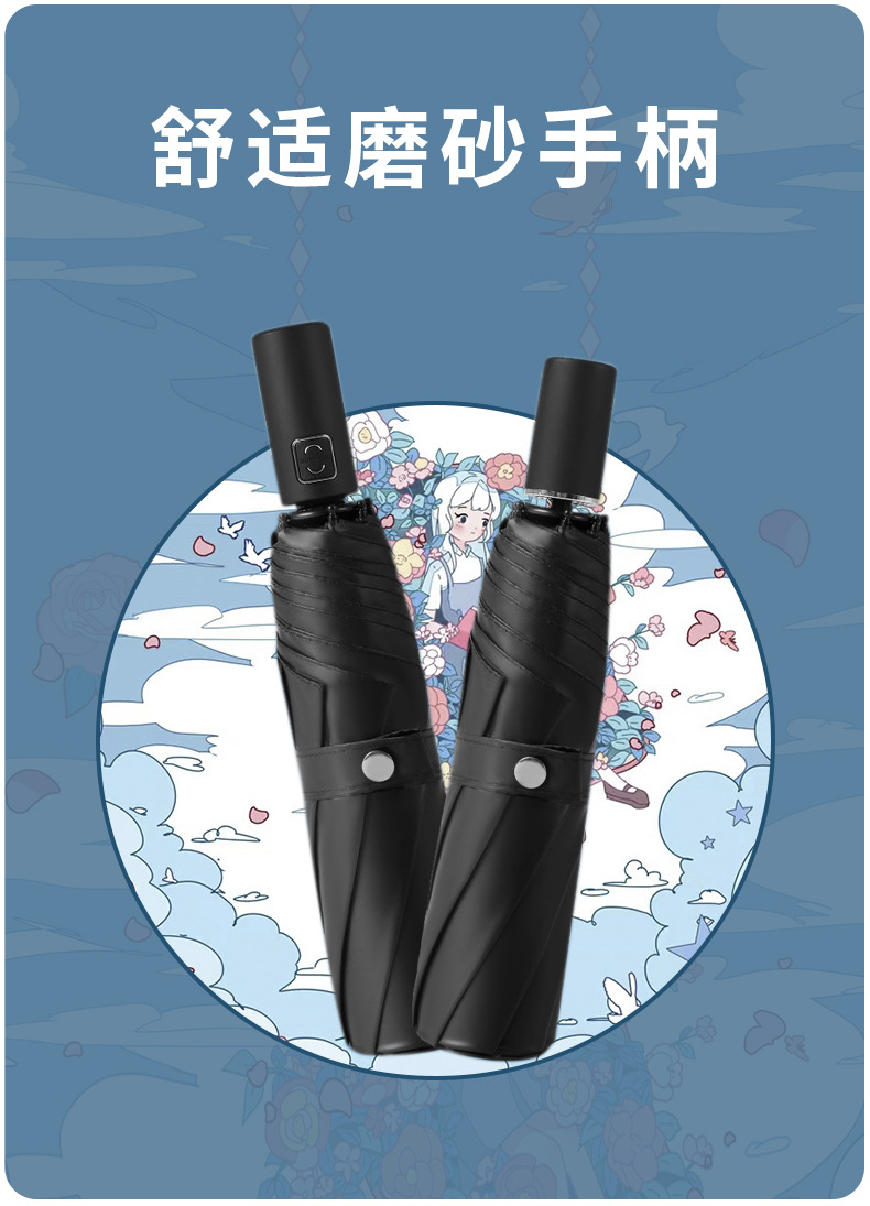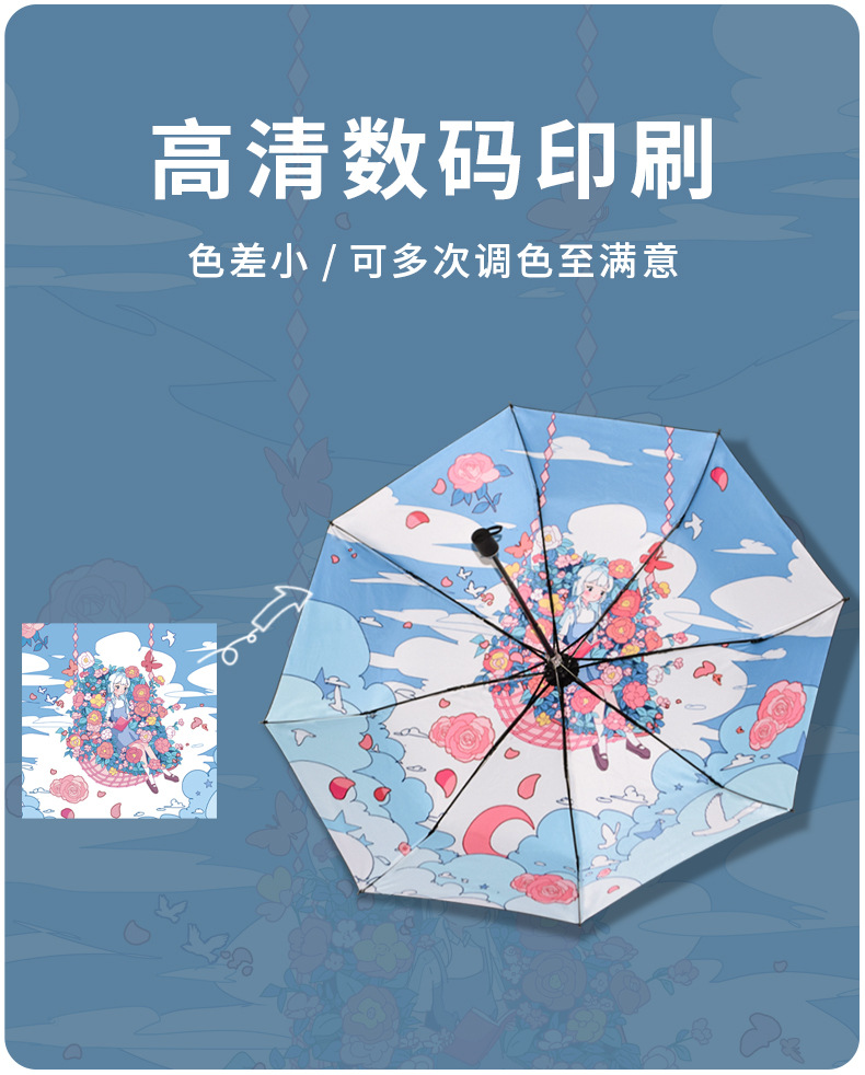 우산 맞춤형 디자인, 그림 로고 인쇄, 비가 오나 눈이 오나 사용 가능한 접이식 애니메이션 양산, 블랙 글로스 우산, 자외선 차단, 야외용스토어 가기