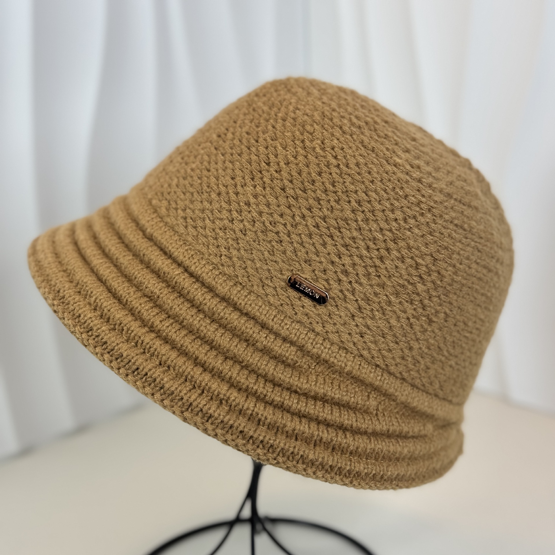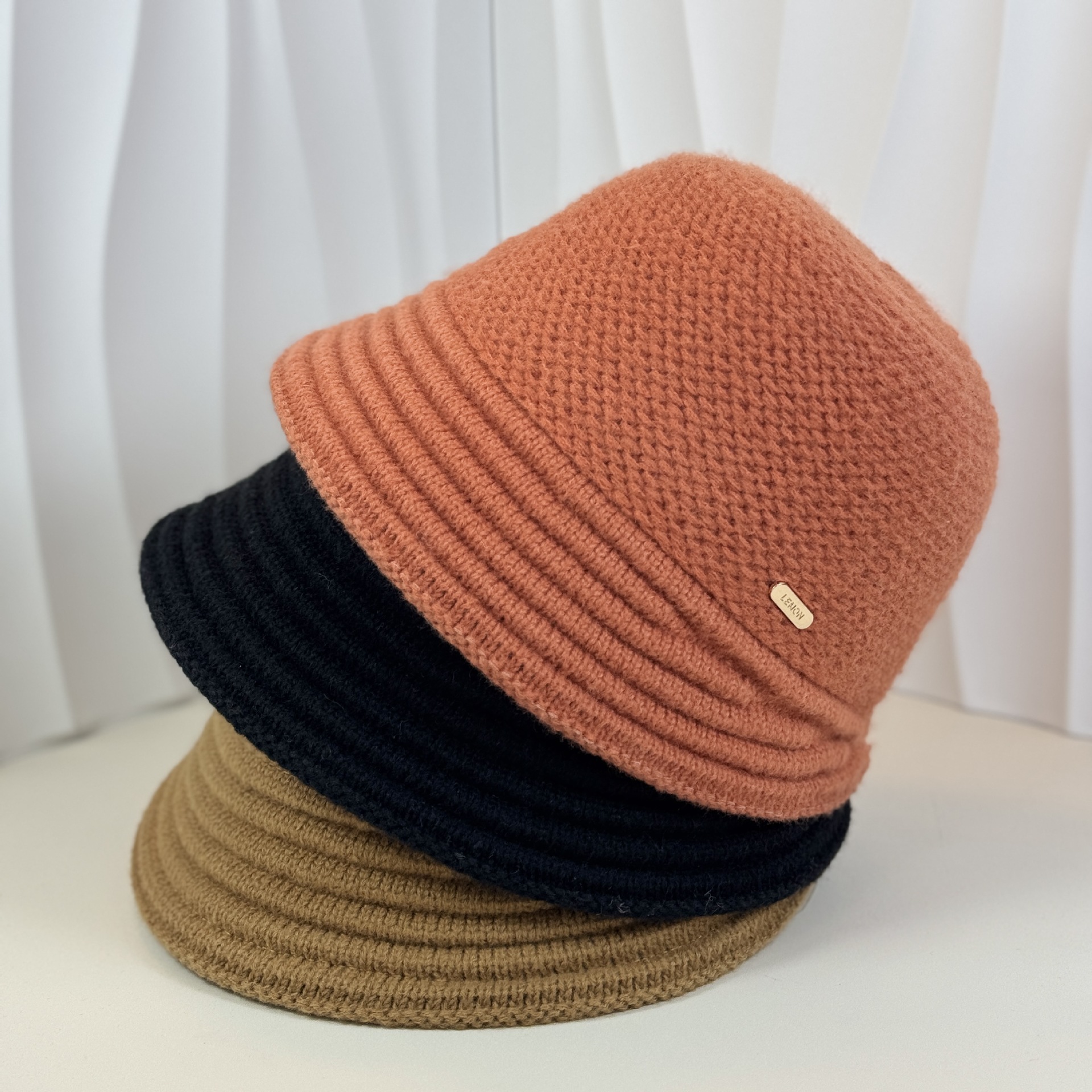새로운 여성의 가을과 겨울 따뜻한 앞면과 뒷 짧은 줄무늬 금속 라벨 넓은 챙이 분지 모자 간단한 올 매치 어부의 모자스토어 가기