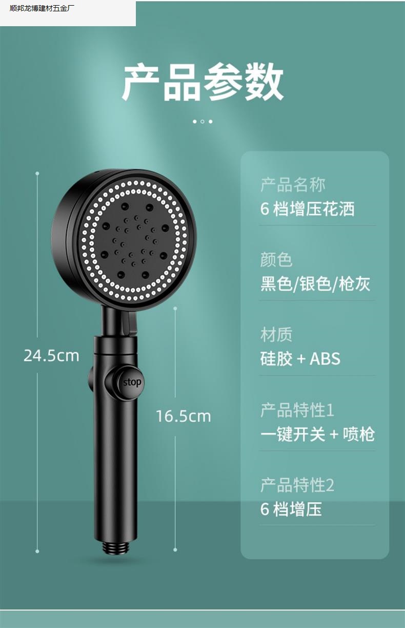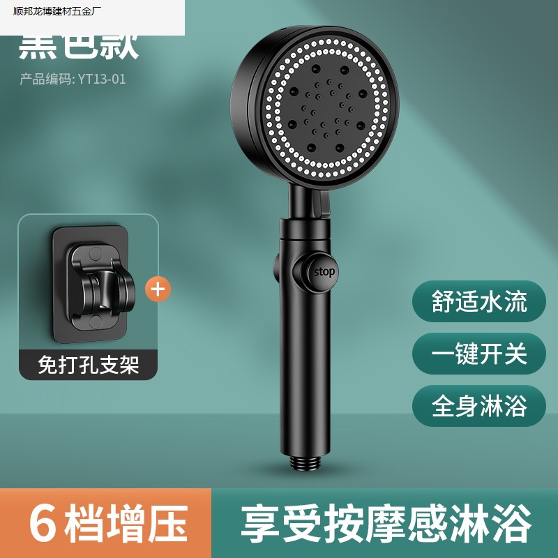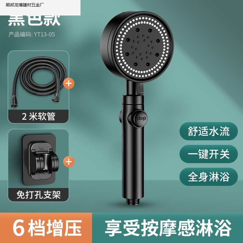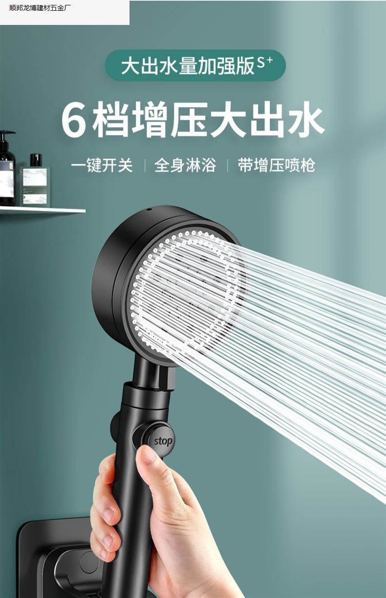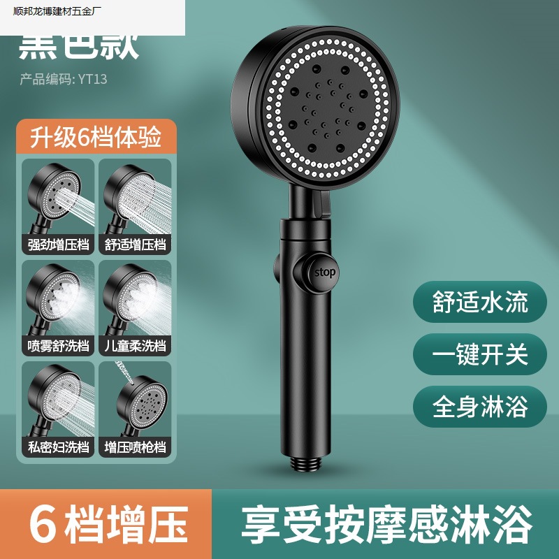 • 블랙 럭셔리 6단 슈퍼차지 대용량 샤워 헤드, 슈퍼차지 및 환불 보장