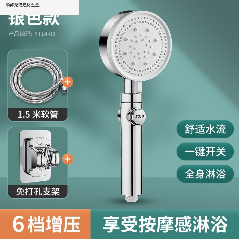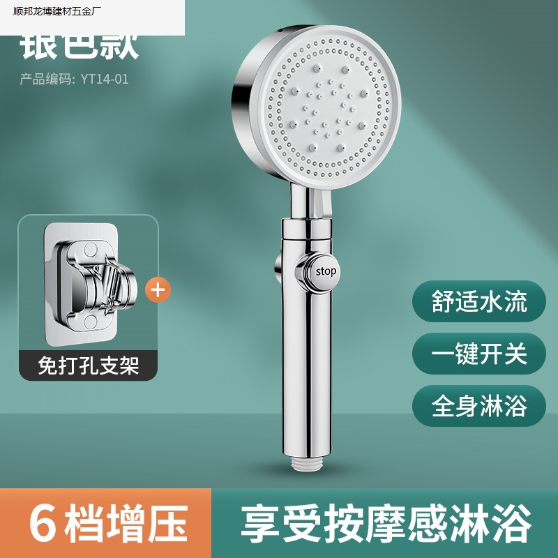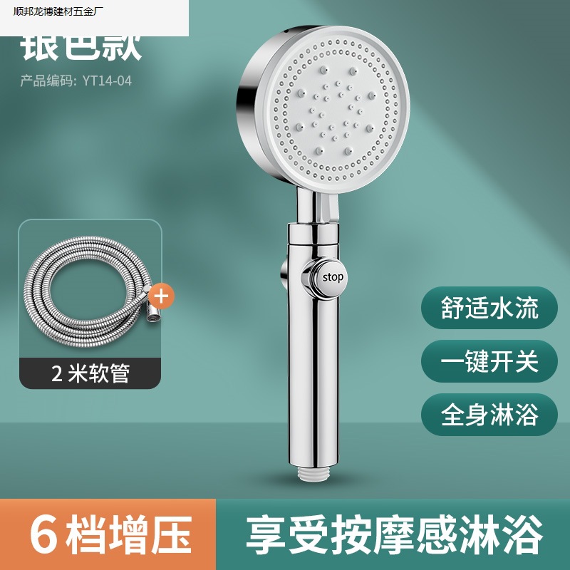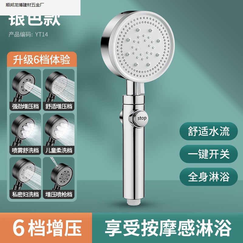 • 실버 럭셔리 6단 슈퍼차지 대용량 샤워 헤드, 슈퍼차지 및 환불 보장