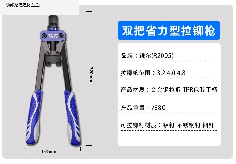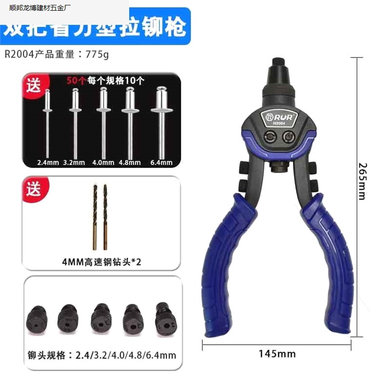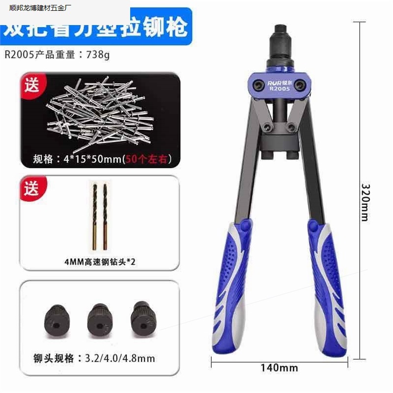 • 더블 핸들 노동 절약형 리벳 건에는 리벳이 함께 제공됩니다.