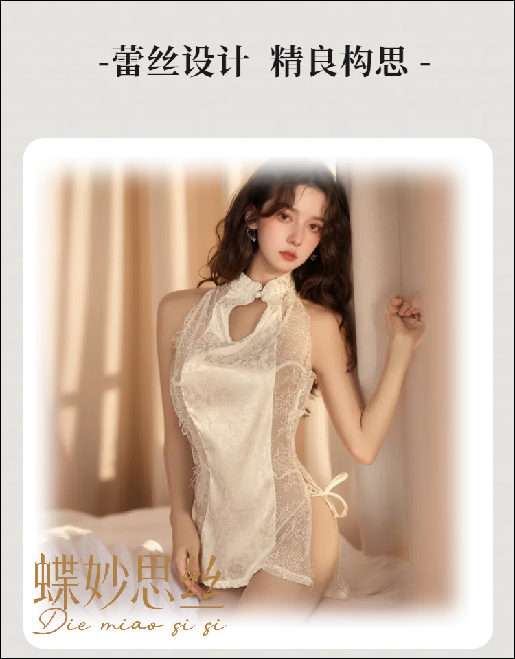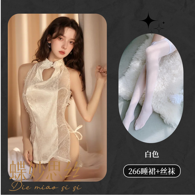 • 흰색 치파오 + T바지 + 흰색 스타킹
