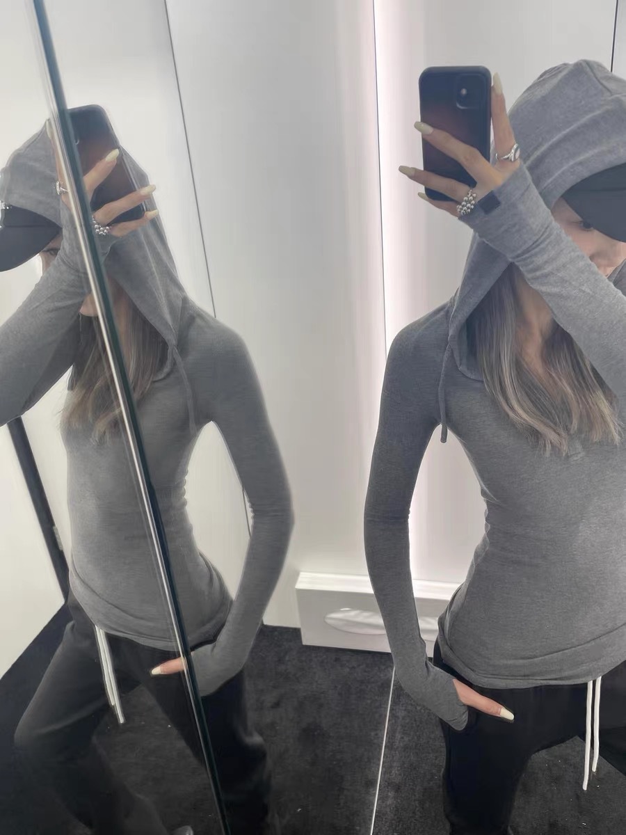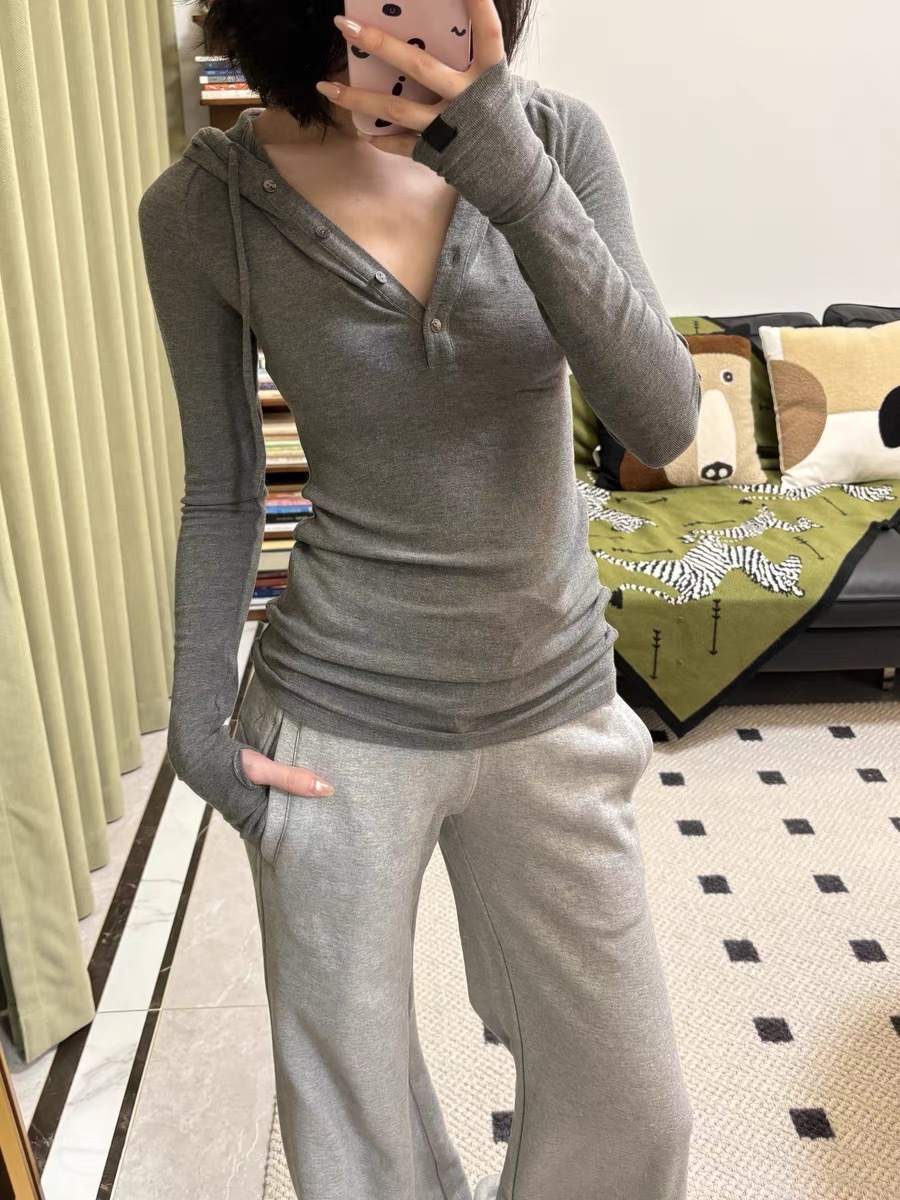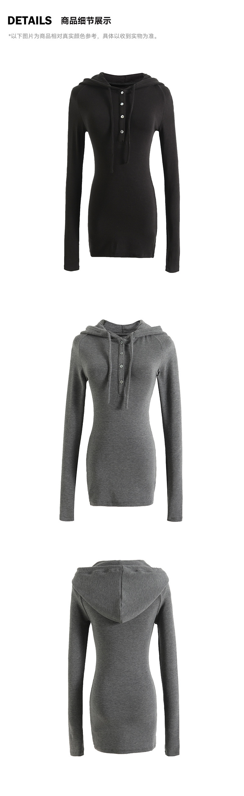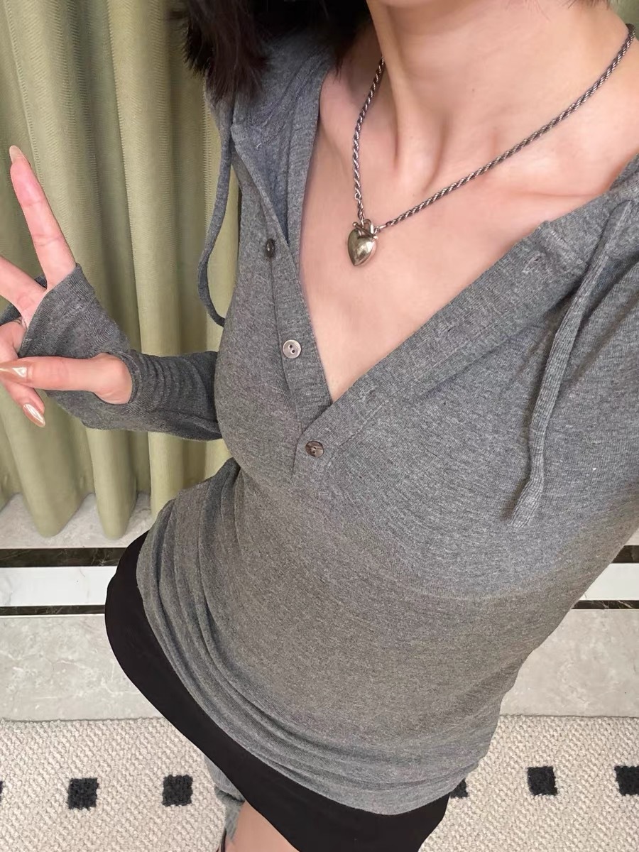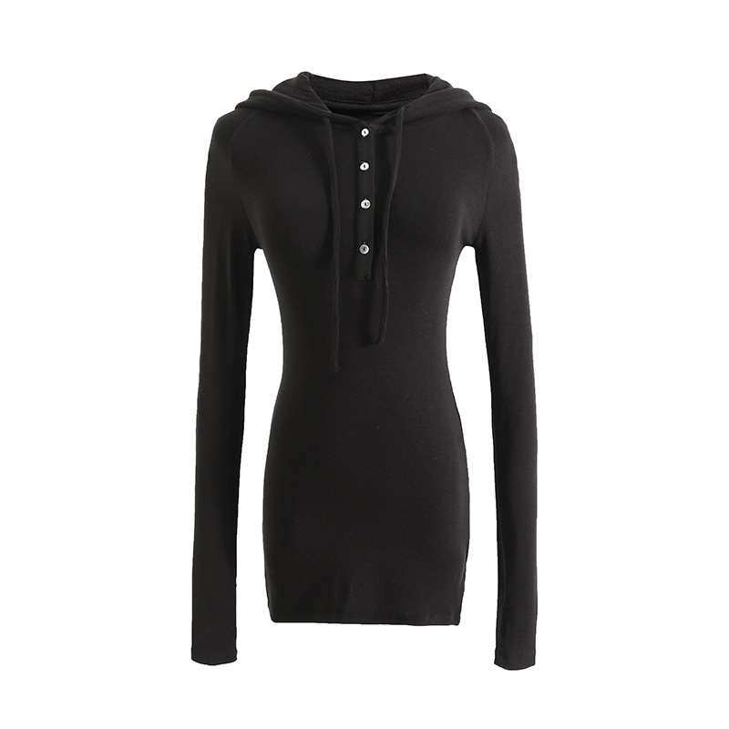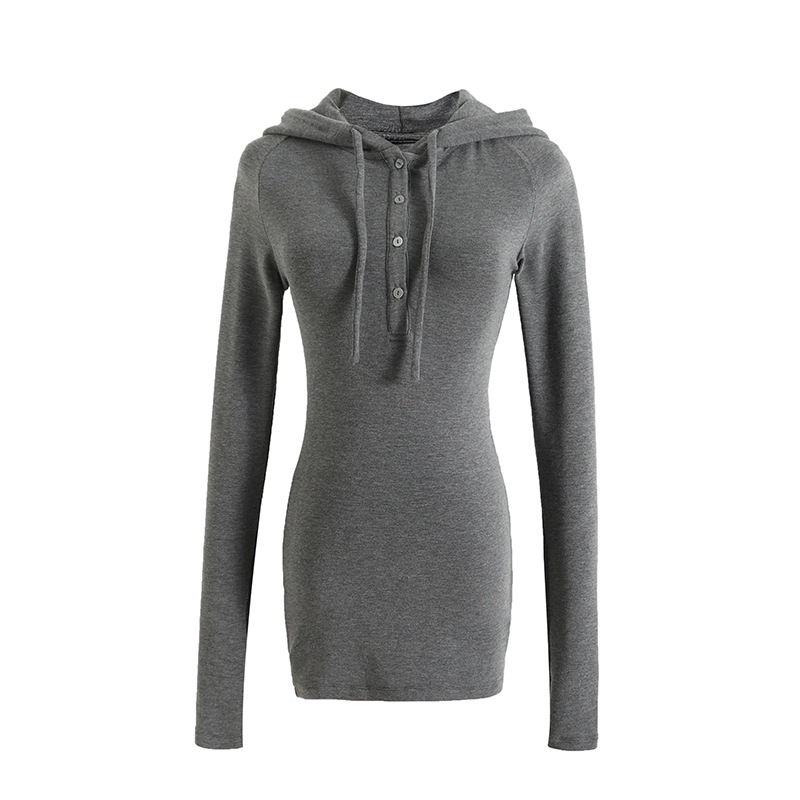 새로운 캐주얼 슬림 핏 슬리밍 스트레치 후드 헨리 칼라 긴팔 니트 톱 여성 4508스토어 가기