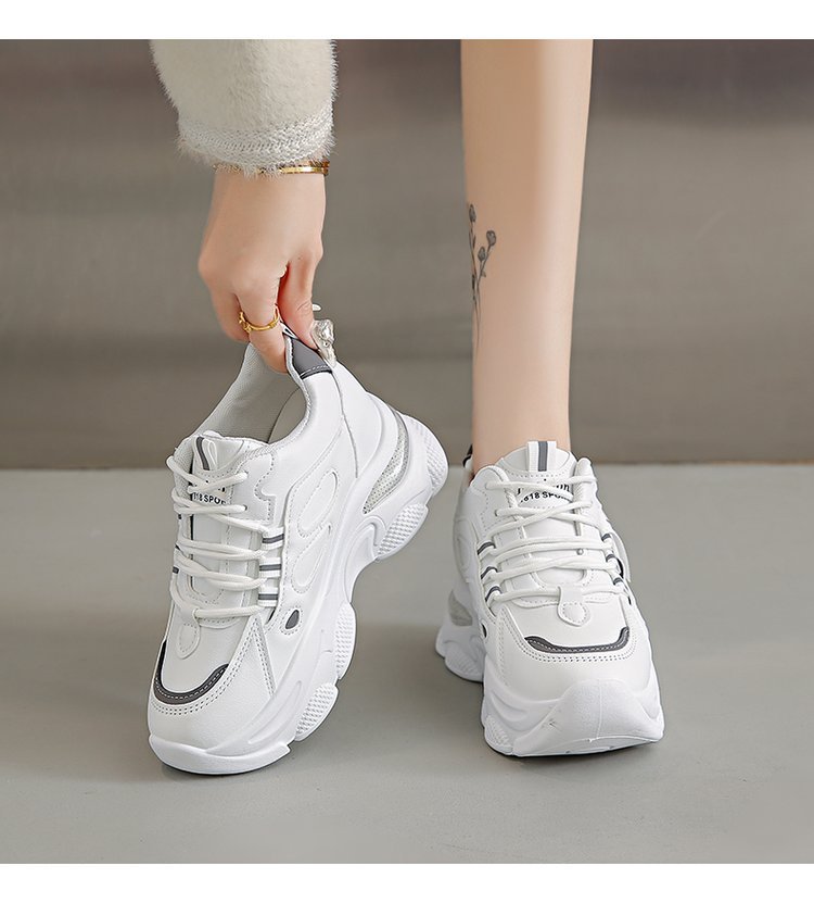 작은 두꺼운 밑창 운동화 여성의 2024 가을과 겨울 증가 통기성 아빠 신발 새로운 다목적 캐주얼 흰색 신발스토어 가기