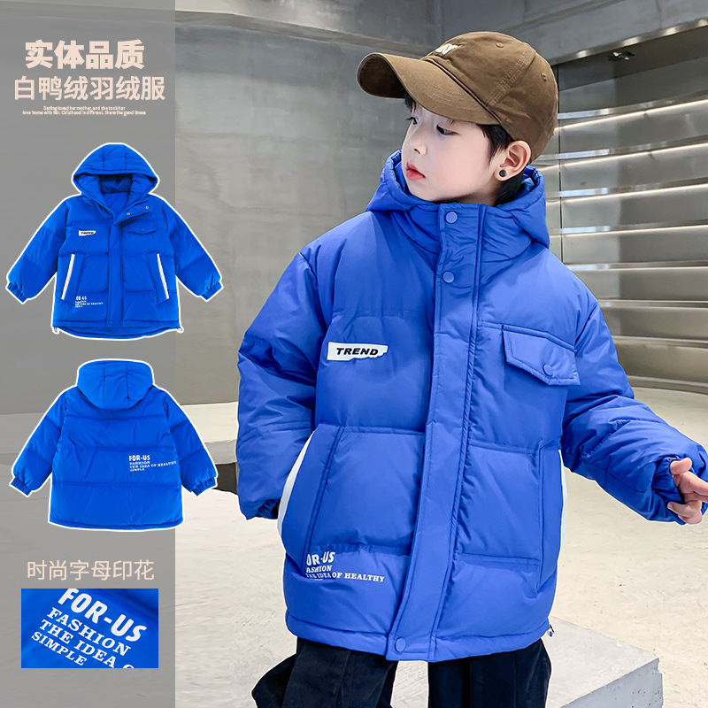 소년 다운 재킷 화이트 덕 다운 90 벨벳 2024 겨울 새로운 중대형 어린이 두꺼운 따뜻한 다운 재킷 하이 엔드 중간 길이스토어 가기