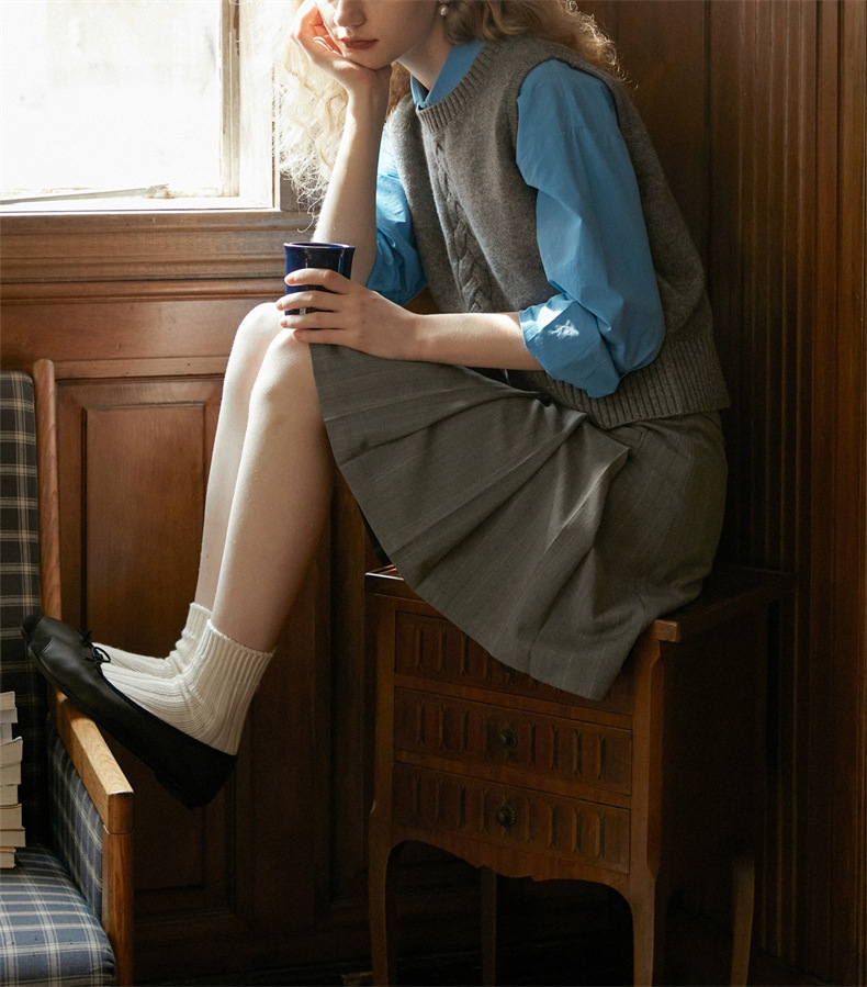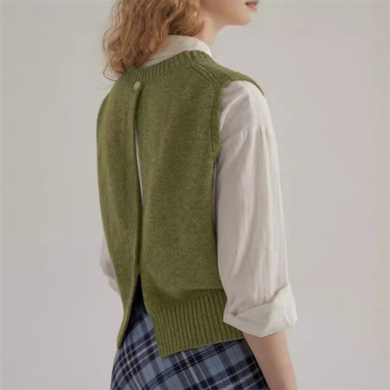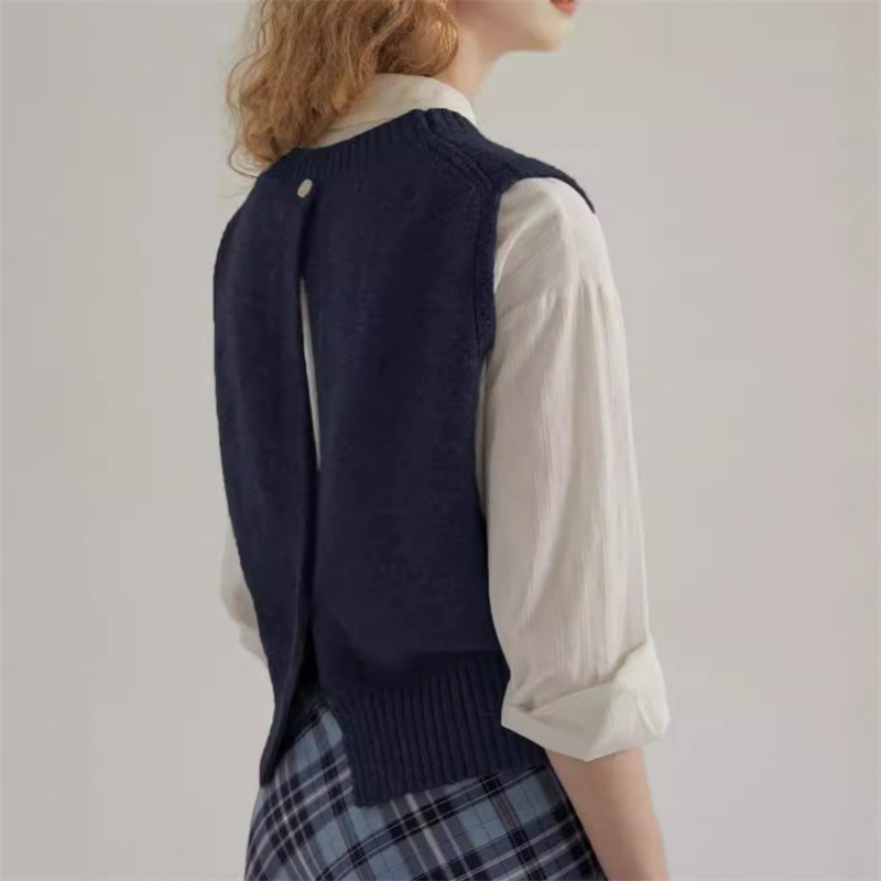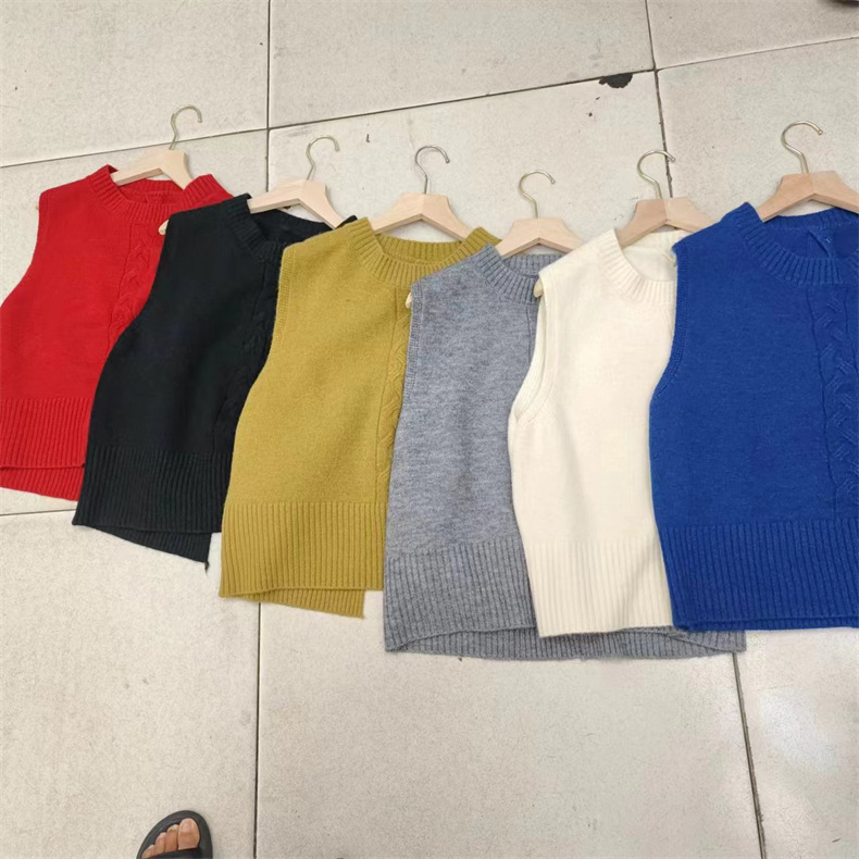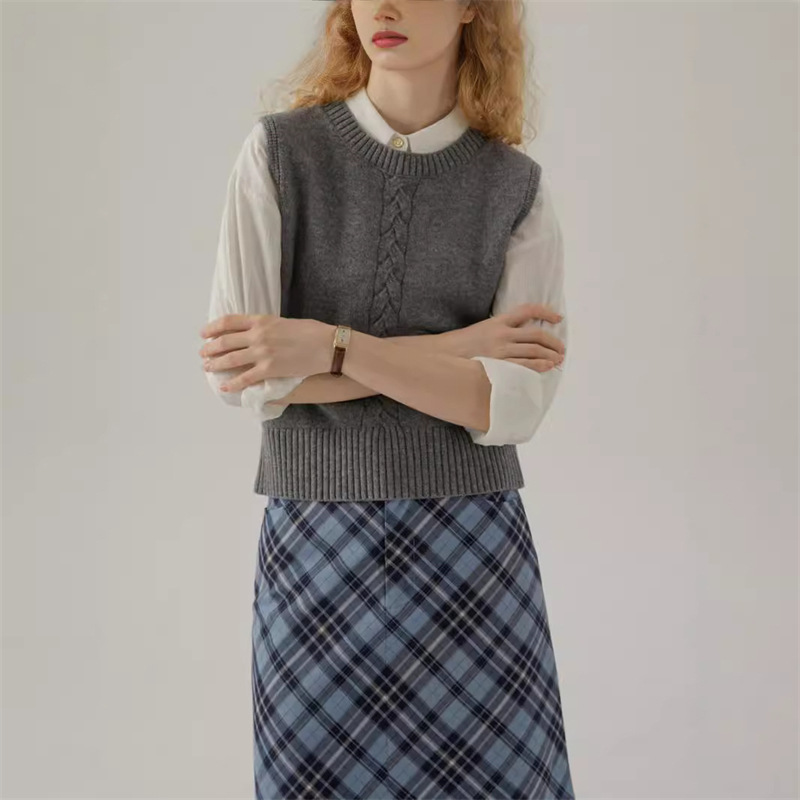 프랑스 레트로 그레이 라운드 넥 트위스트 니트 조끼 봄과 가을 스택 짧은 민소매 조끼 스웨터 여성 탑스토어 가기