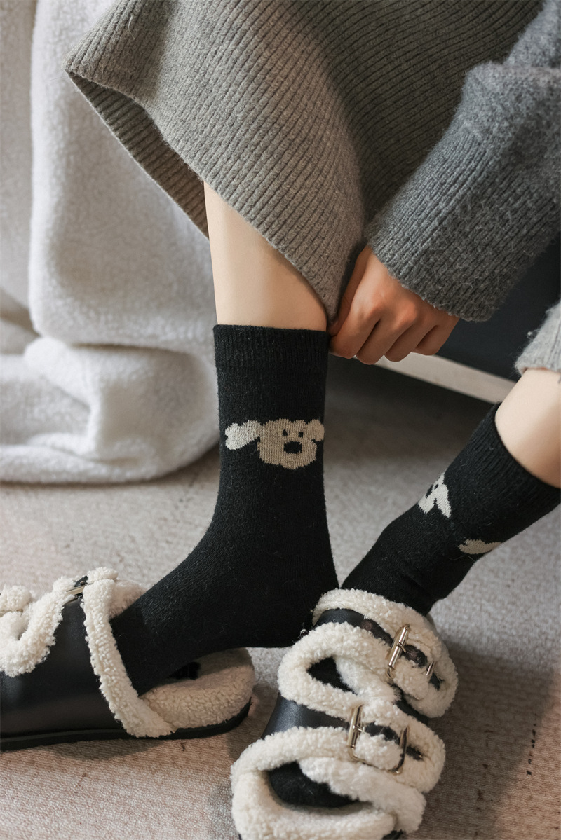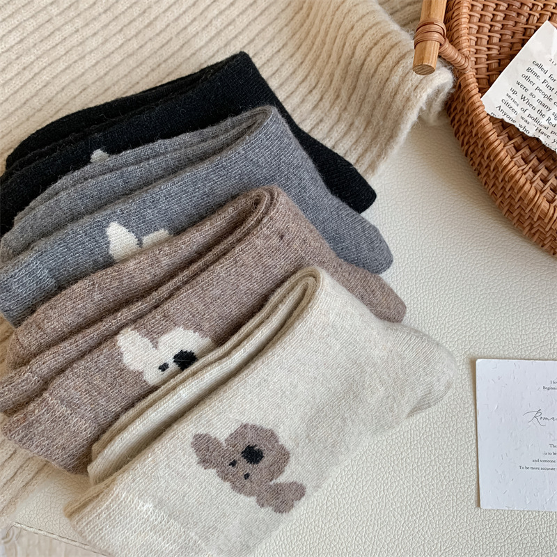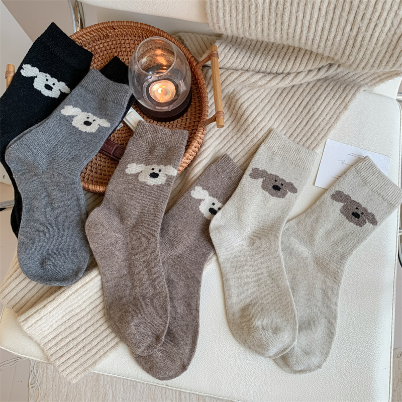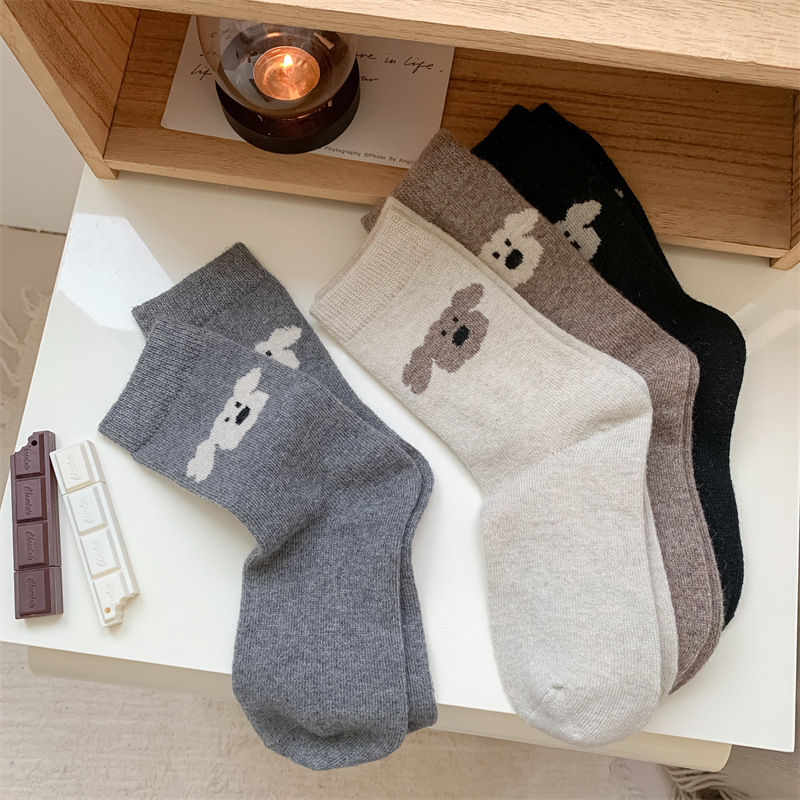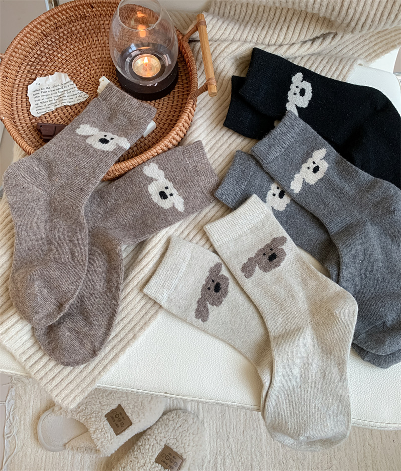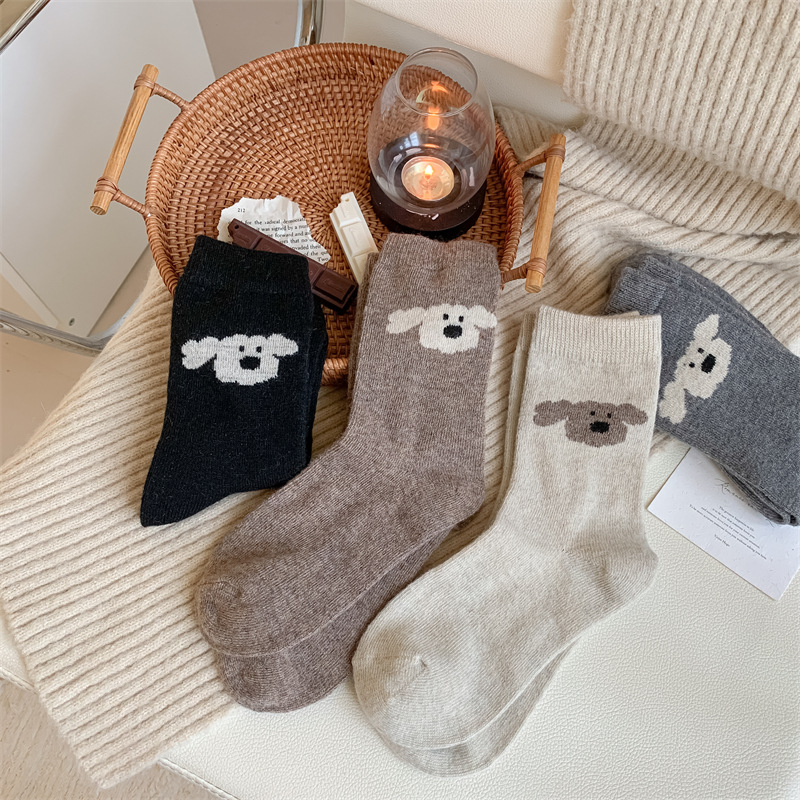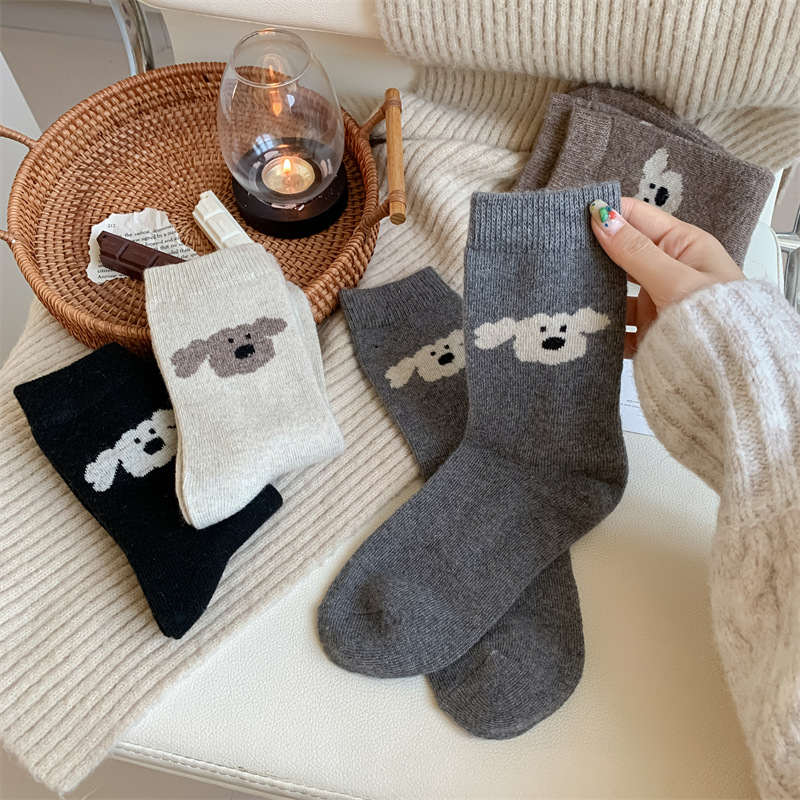 한국식 여성 겨울 양모 양말 인즈 만화 개 자카드 따뜻한 양말 대학식 힙 중간 길이 양말