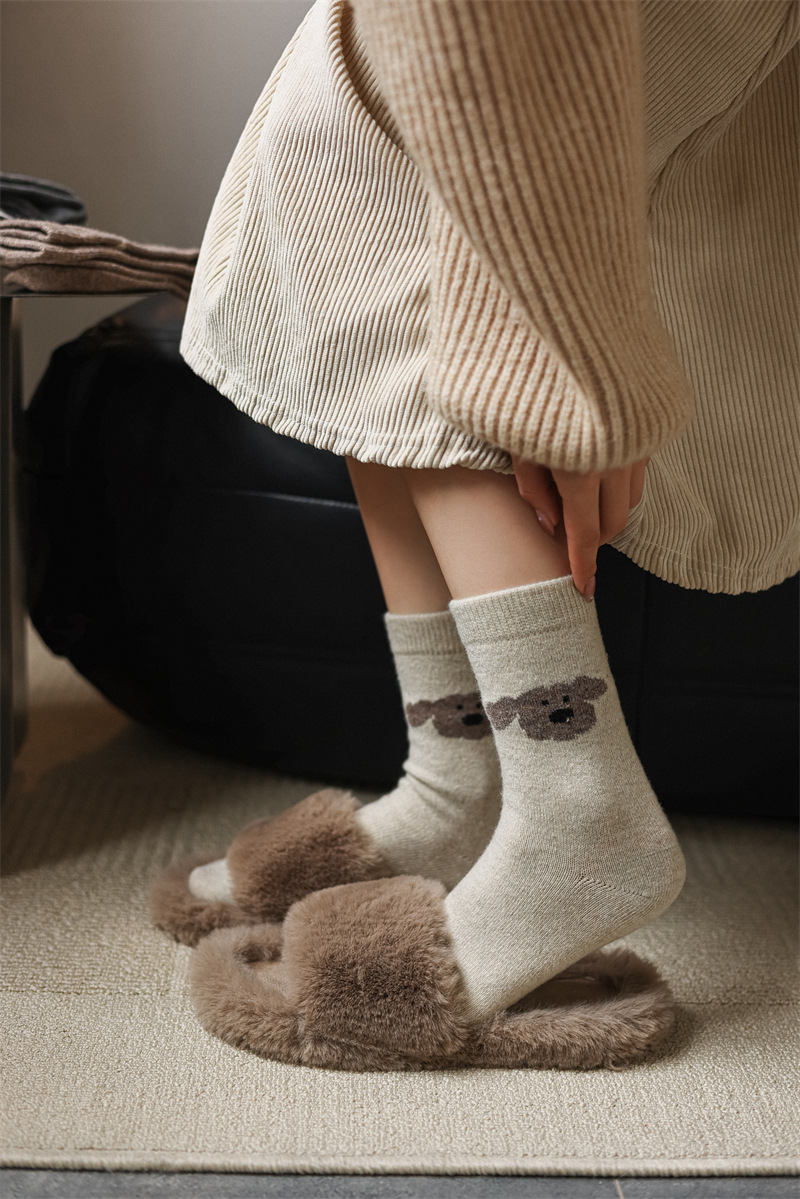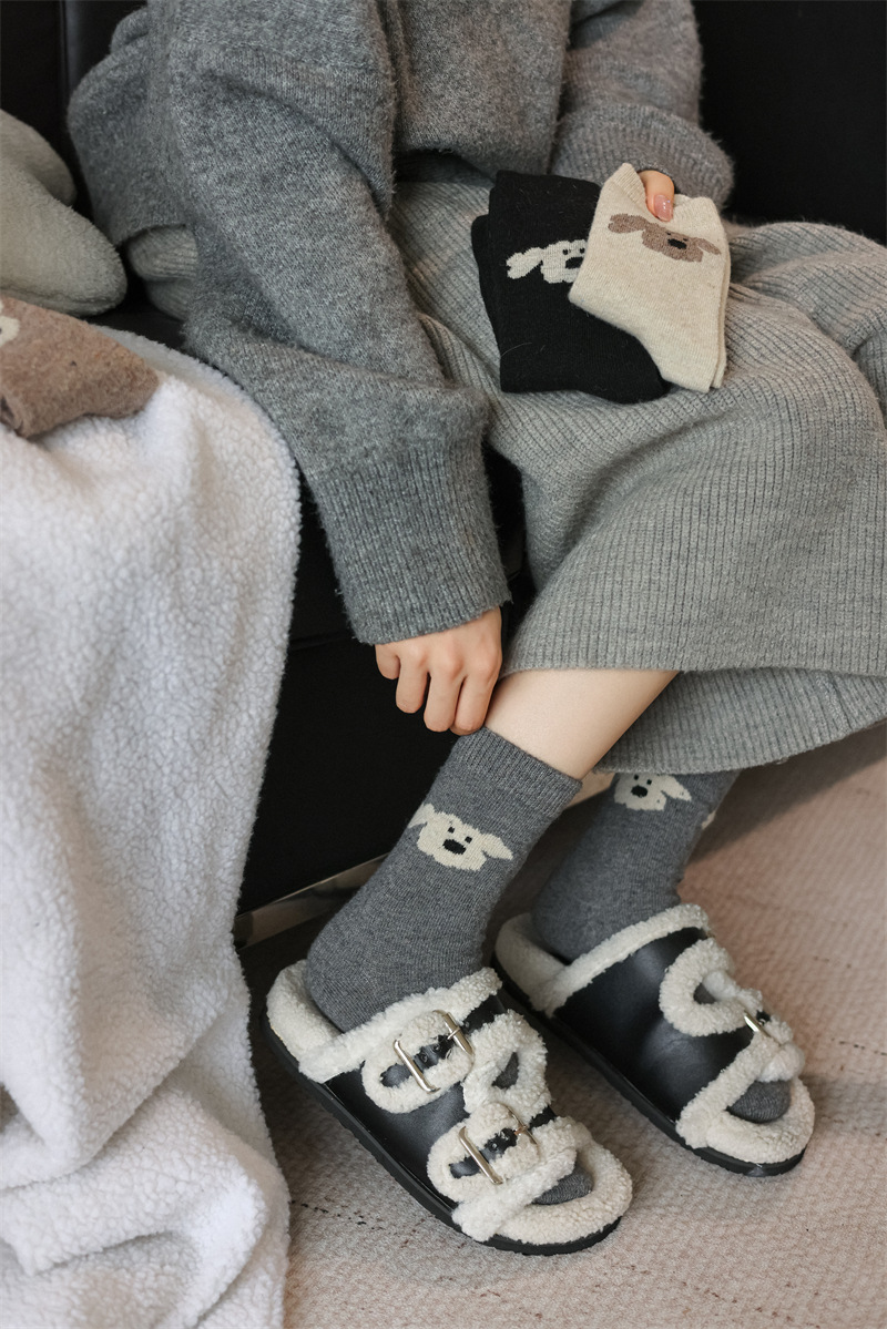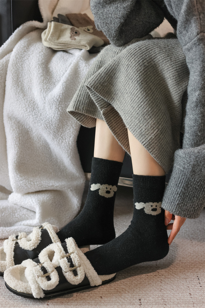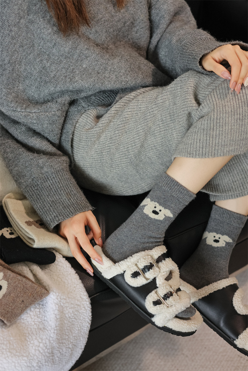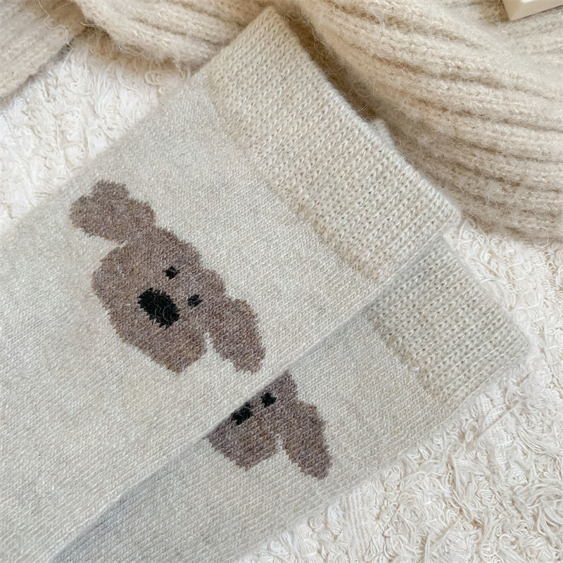 한국식 여성 겨울 양모 양말 인즈 만화 개 자카드 따뜻한 양말 대학식 힙 중간 길이 양말