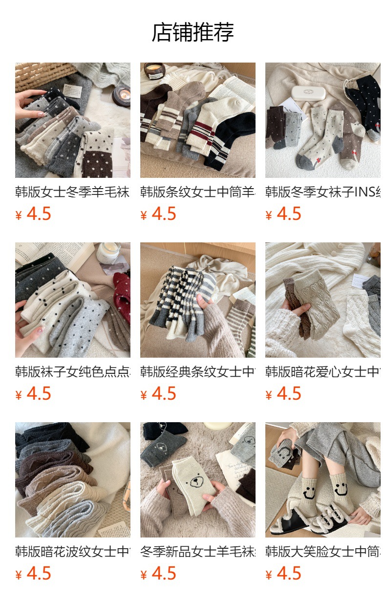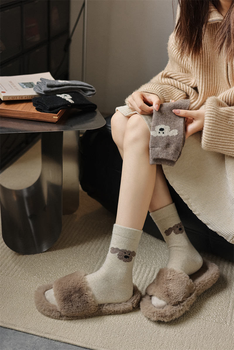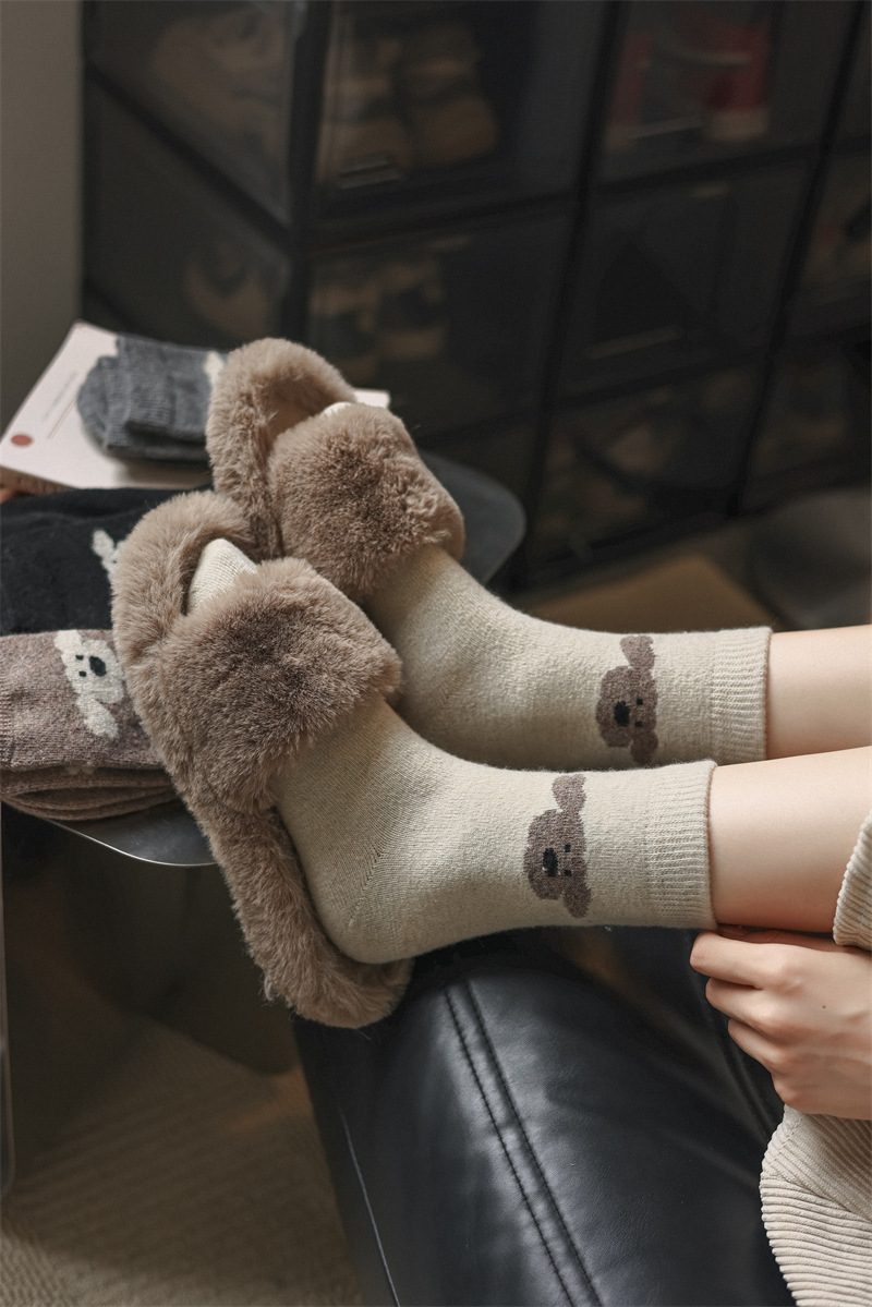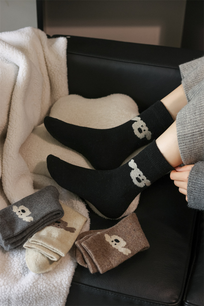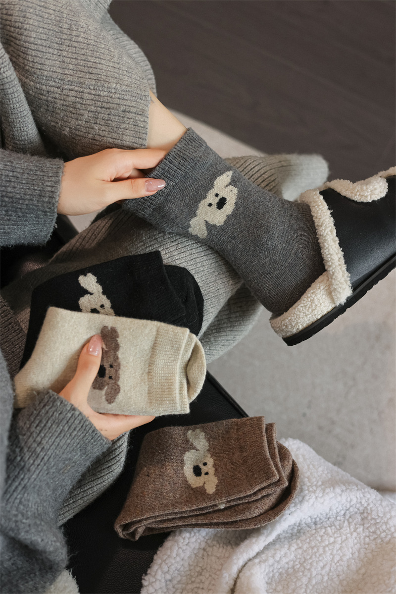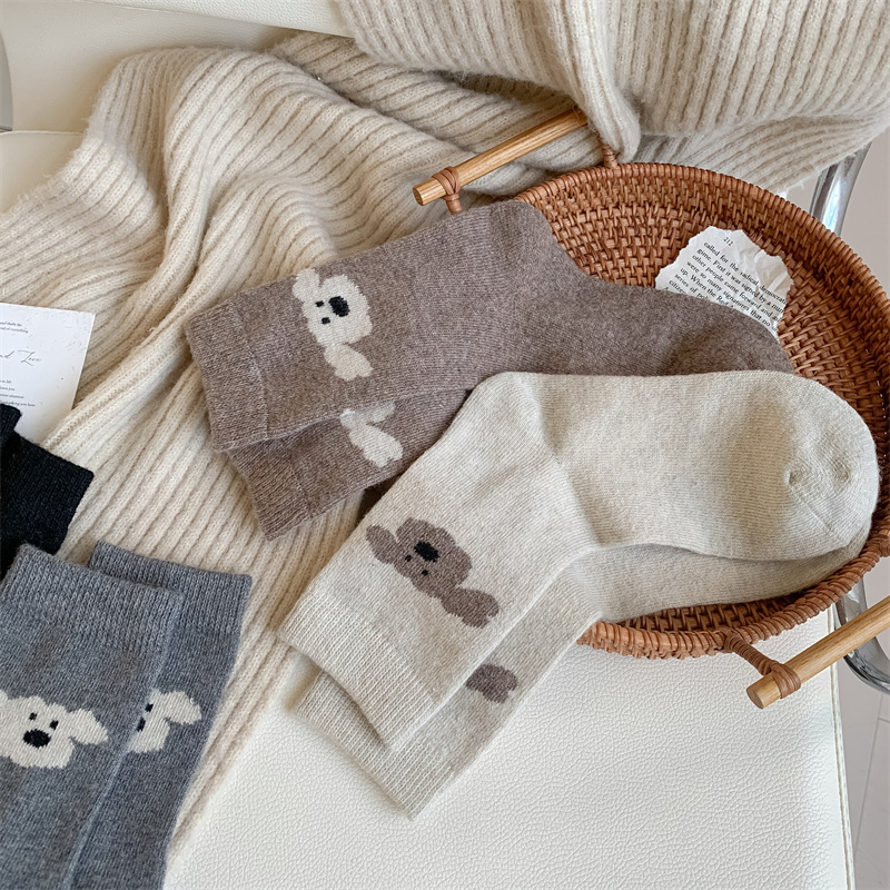 한국식 여성 겨울 양모 양말 인즈 만화 개 자카드 따뜻한 양말 대학식 힙 중간 길이 양말스토어 가기